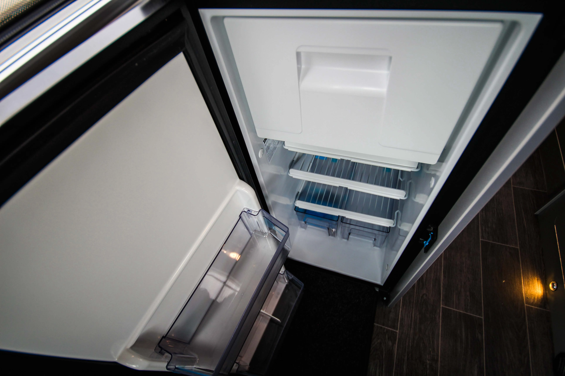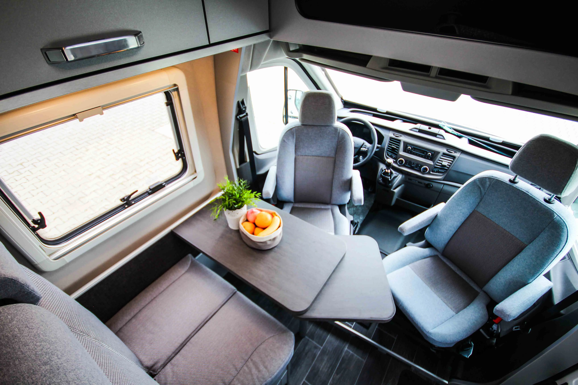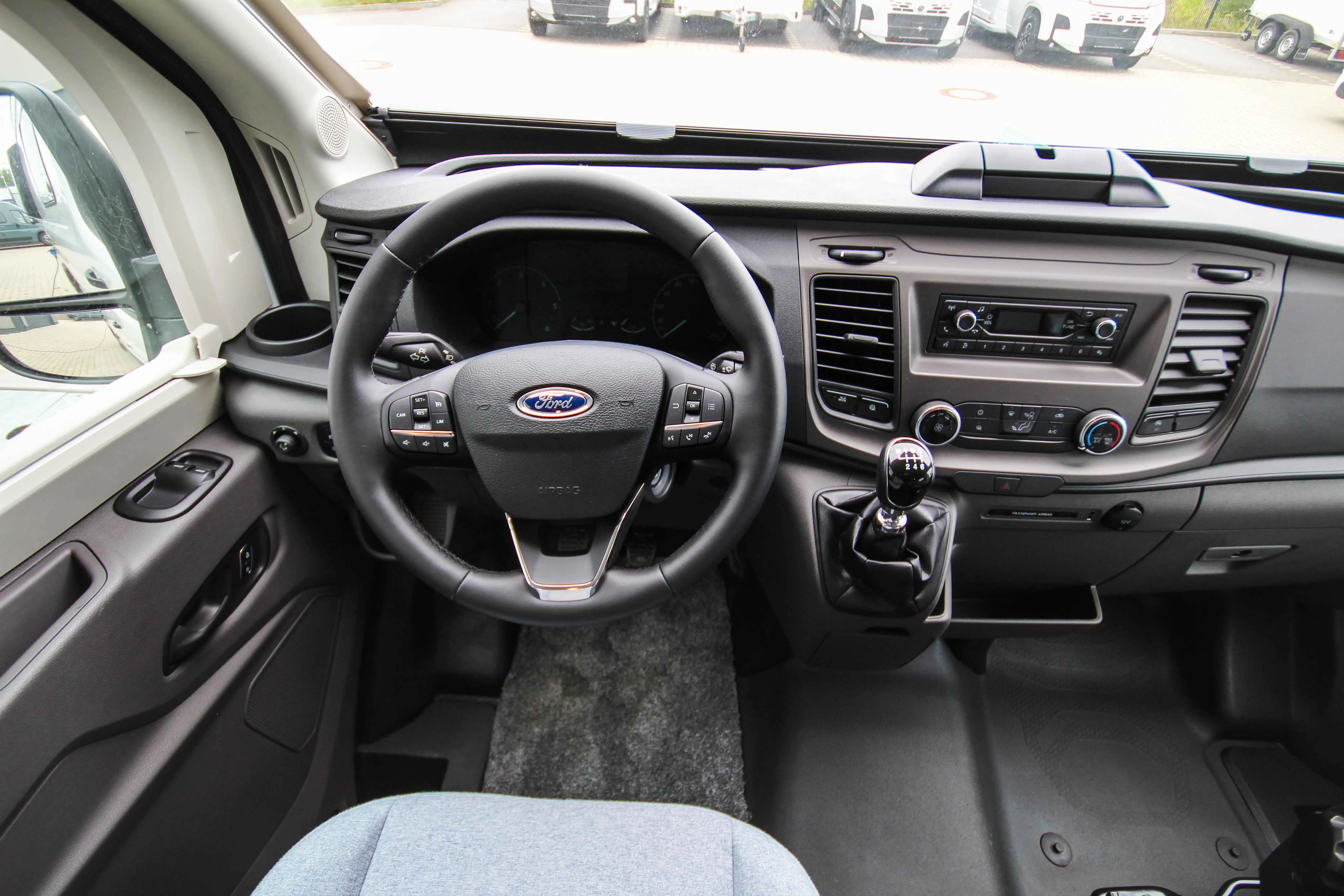 - Camper Premium - Paket (Frontstoßfänger in Wagenfarbe teillackiert, Lederlenkrad mit Radio-Fernbedienung, Handschuhfach, zusätzlich abschließbar, Scheinwerfer mit statischem Abbiegelicht, Nebelscheinwerfer, Cupholder im Dashboard links / rechts, Seitenschutzleisten, 2. Schlüssel, klappbar mit Fernbedienung, Fahrerhaus-Innenraumbeleuchtung)