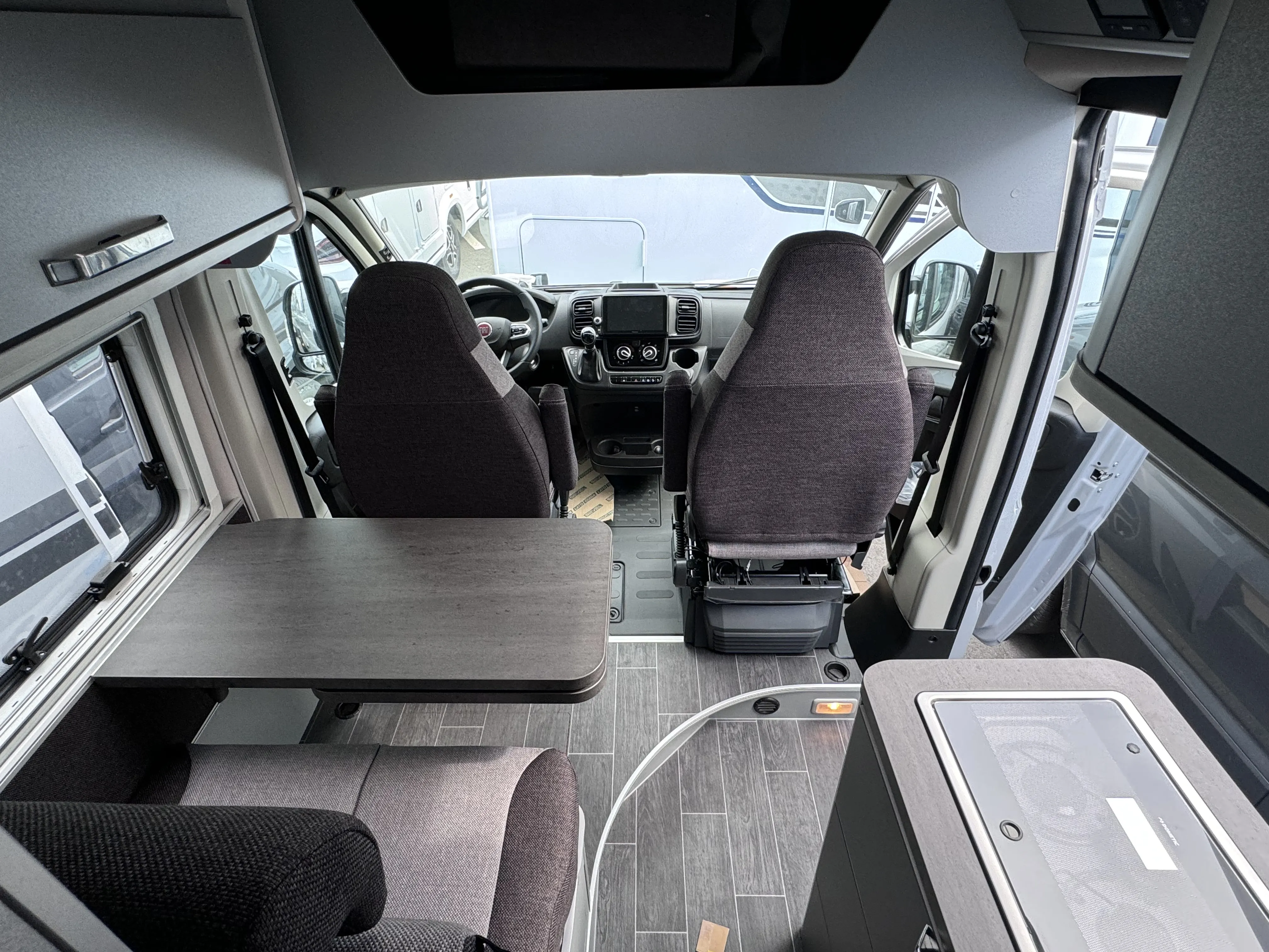 - Fiat-Paket (Außenspiegel elektrisch einstell- und beheizbar, Fahrerhaussitze drehbar, Original FIAT Captainchair-Sitze mit Armlehnen, Höhenverstellung Beifahrersitz, Sitzkasten-Verkleidungen Fahrerhaussitze, Lenkrad mit Bedienelementen für Radio)