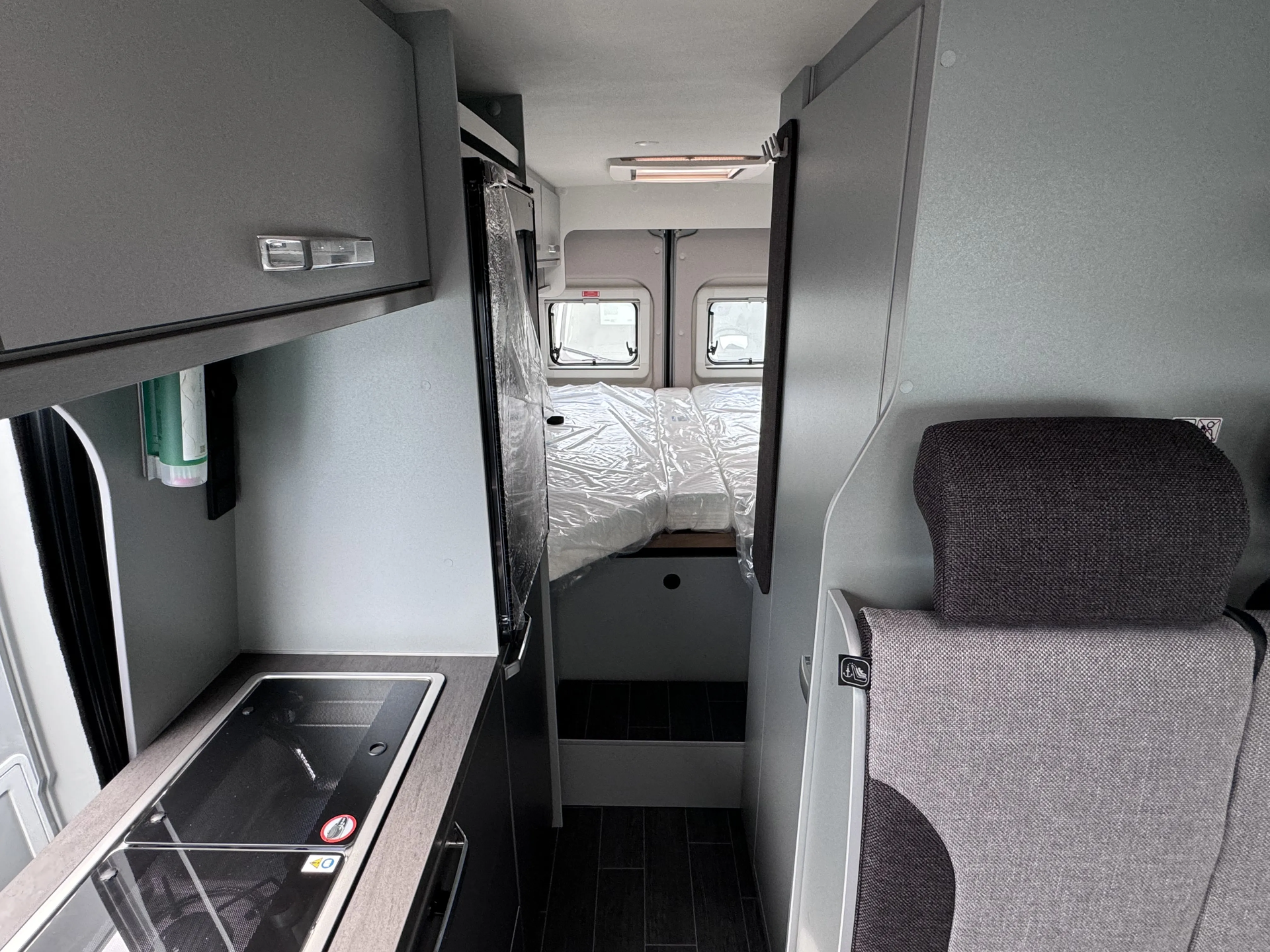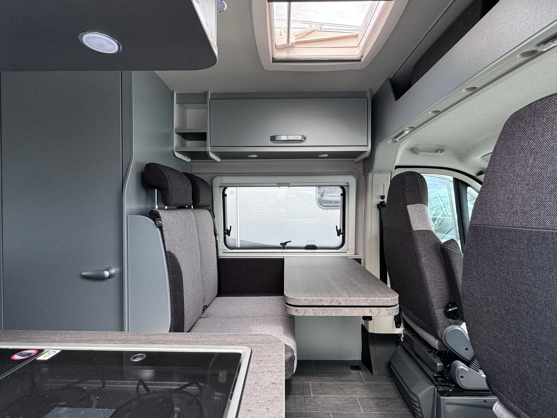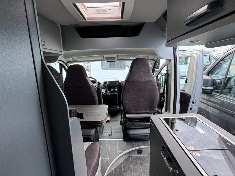 - Voltage-Paket ( Regenrinne über der Schiebetür mit LED (dimmbar), 2x 230 V SCHUKO-Steckdose zusätzlich, 2x USB-Steckdose (1 Stück), Leseleuchten im Fahrerhaus, Ambientebeleuchtung im Wohnraum/Nasszelle)