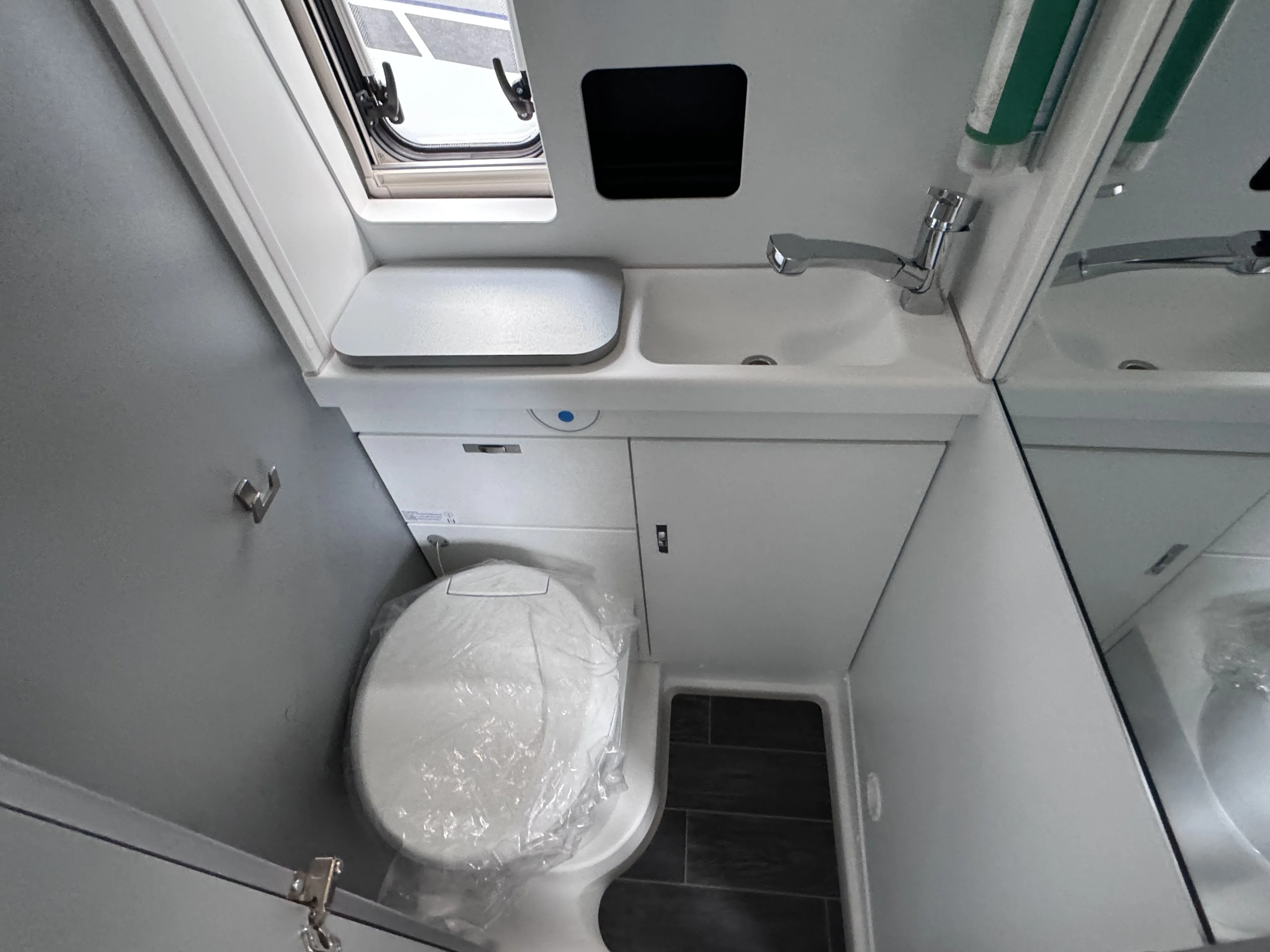 - Ausstellfenster (Heck) links, rechts & Toilettenraum