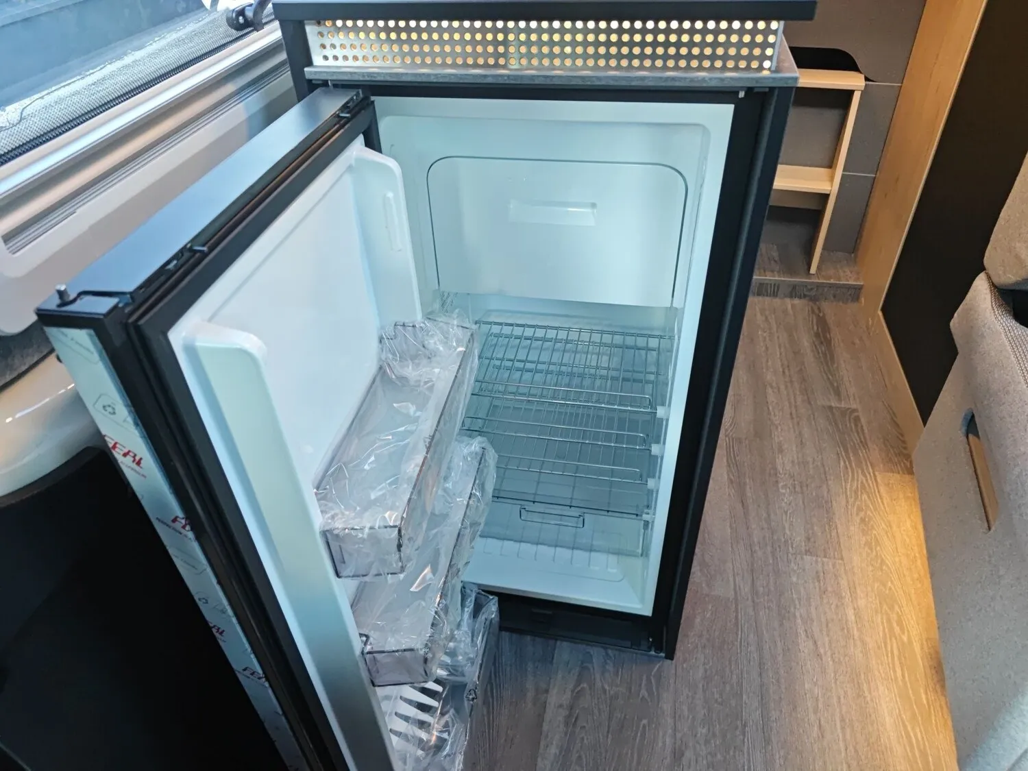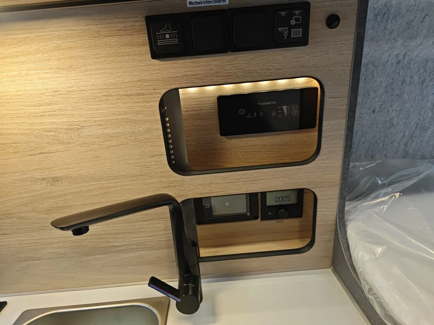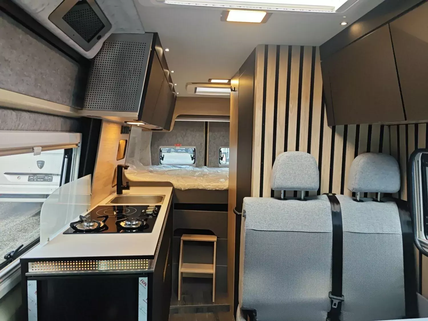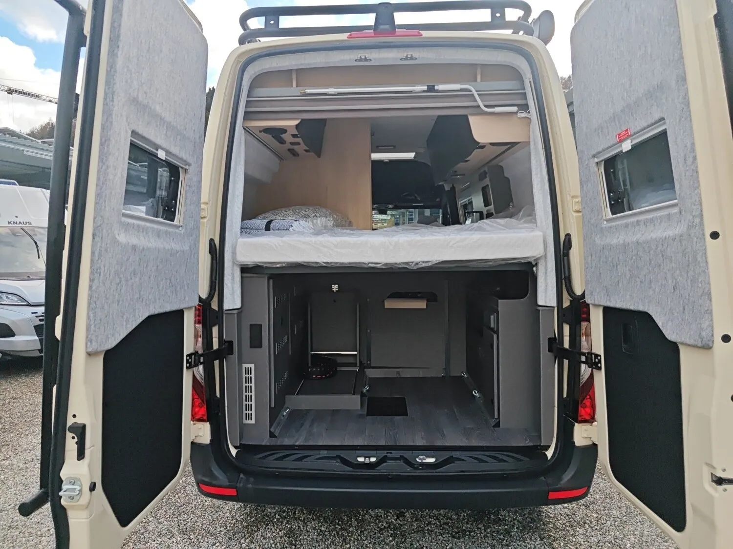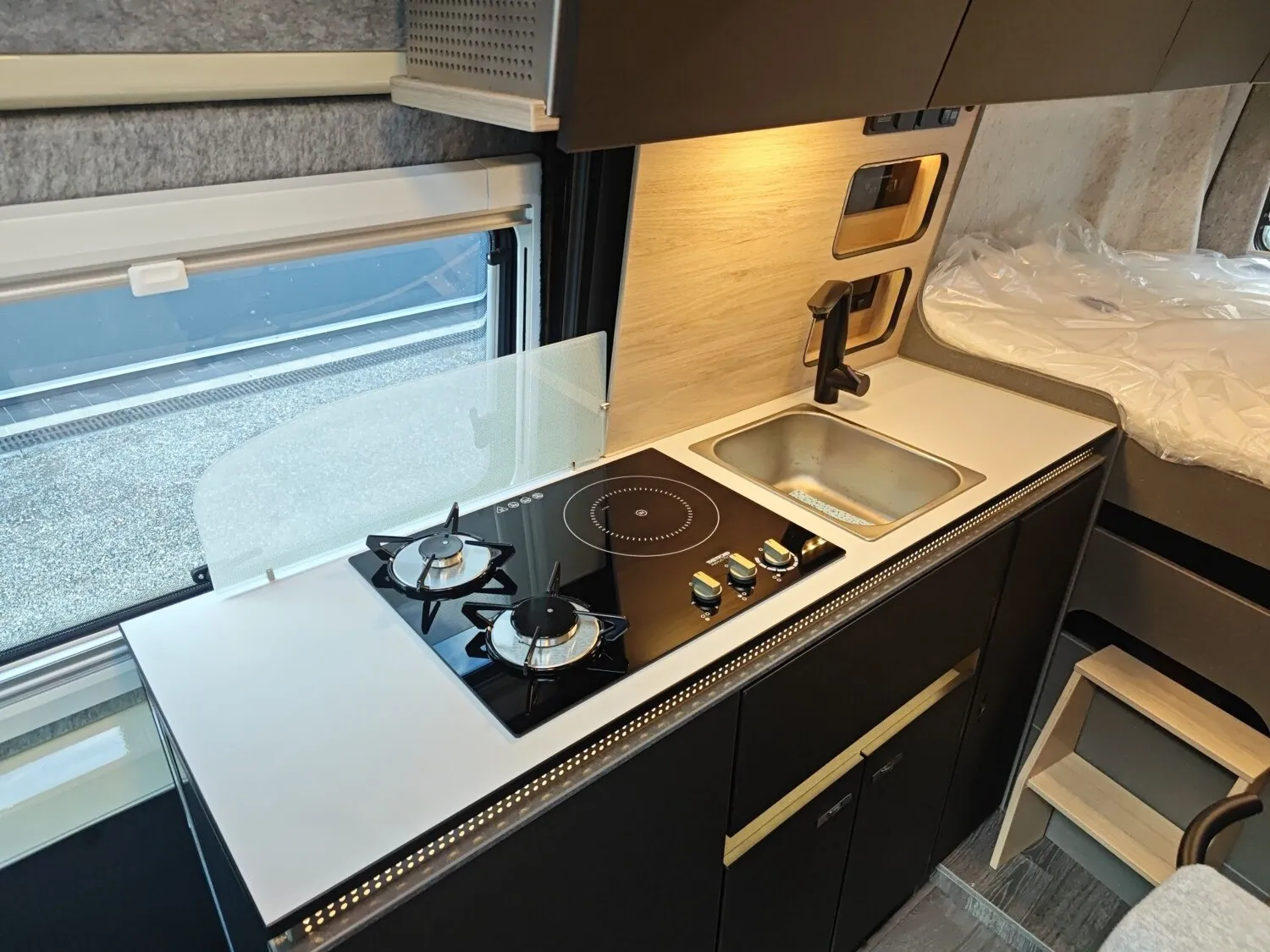 - Function-Paket X-PEDITION (Regenrinne über der Schiebetür mit LED (dimmbar), Schiebefunktion für Bettrahmen, Funktionserweiterung Esstisch - zusätzliches Tischbein für Außennutzung, Adaptierbare Arbeitsflächenerweiterung flexibel im Fahrzeug positionierbar)