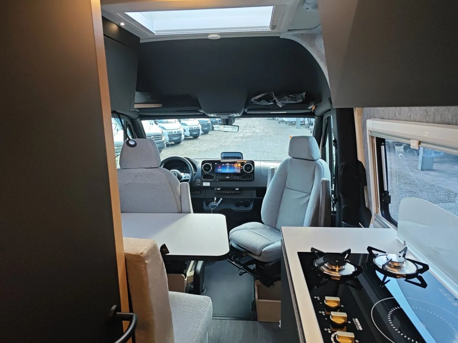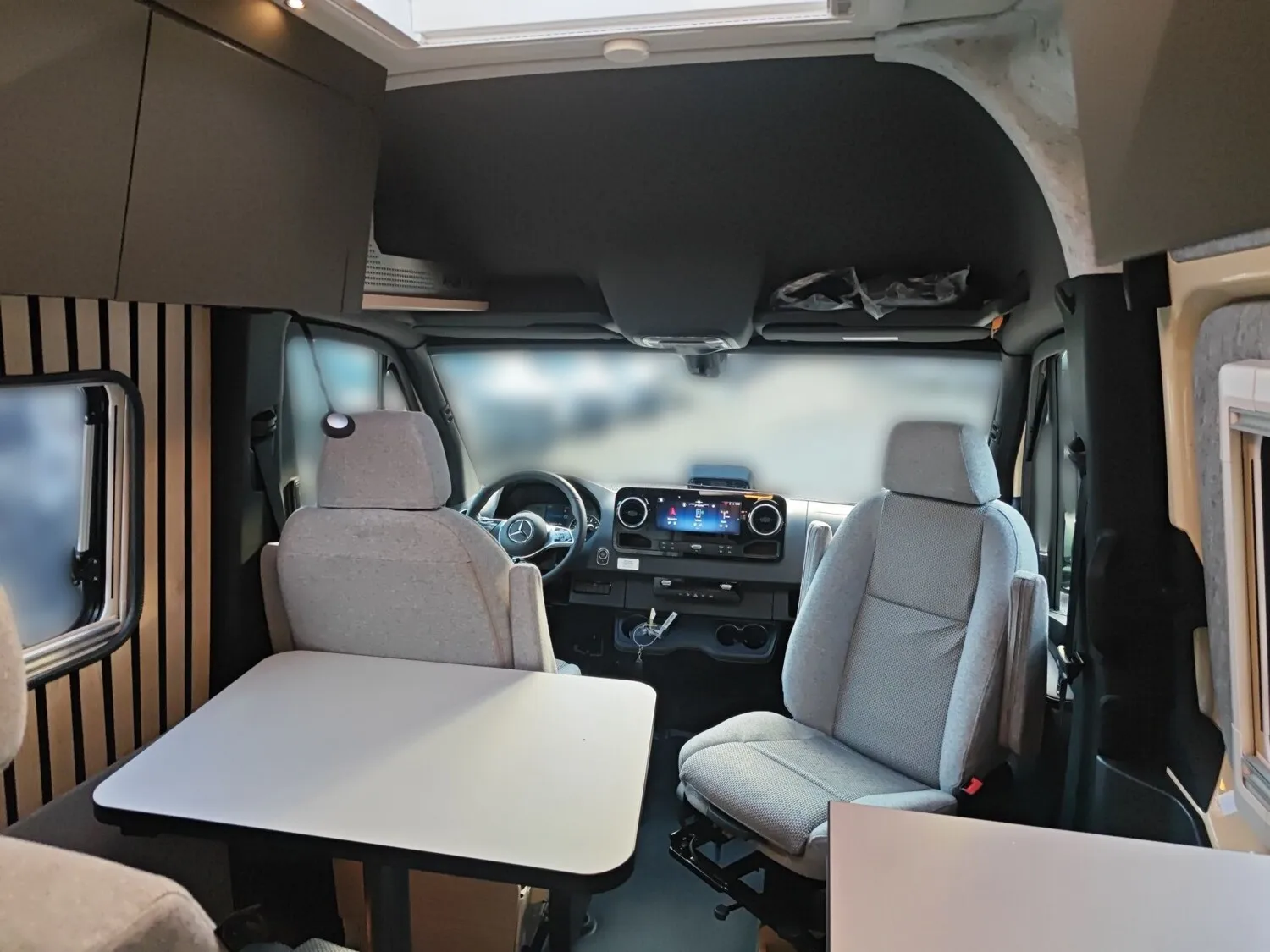 - MERCEDES Paket (Abklappbare Handbremse, Komfort Fahrerhaussitze MERCEDES, Heckleuchten in Teil-LED-Technik, Dachbedieneinheit, Ladepaket Instrumententafel, Haltegriffe für Einstieg Fahrer- und Beifahrer, Kommunikationsmodul (LTE) für digitale Dienste)