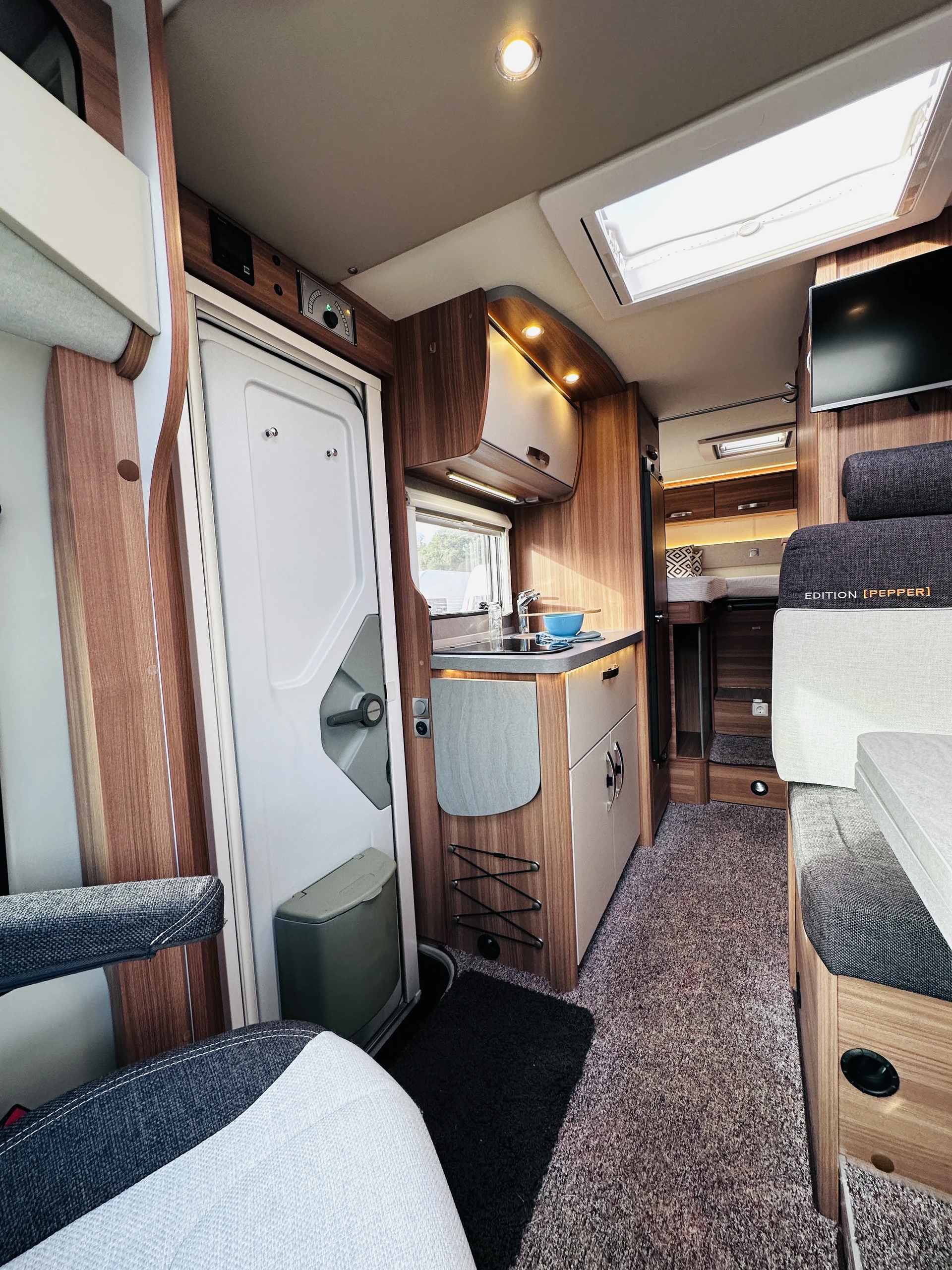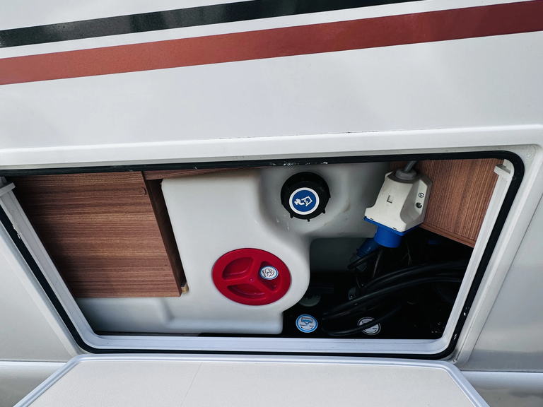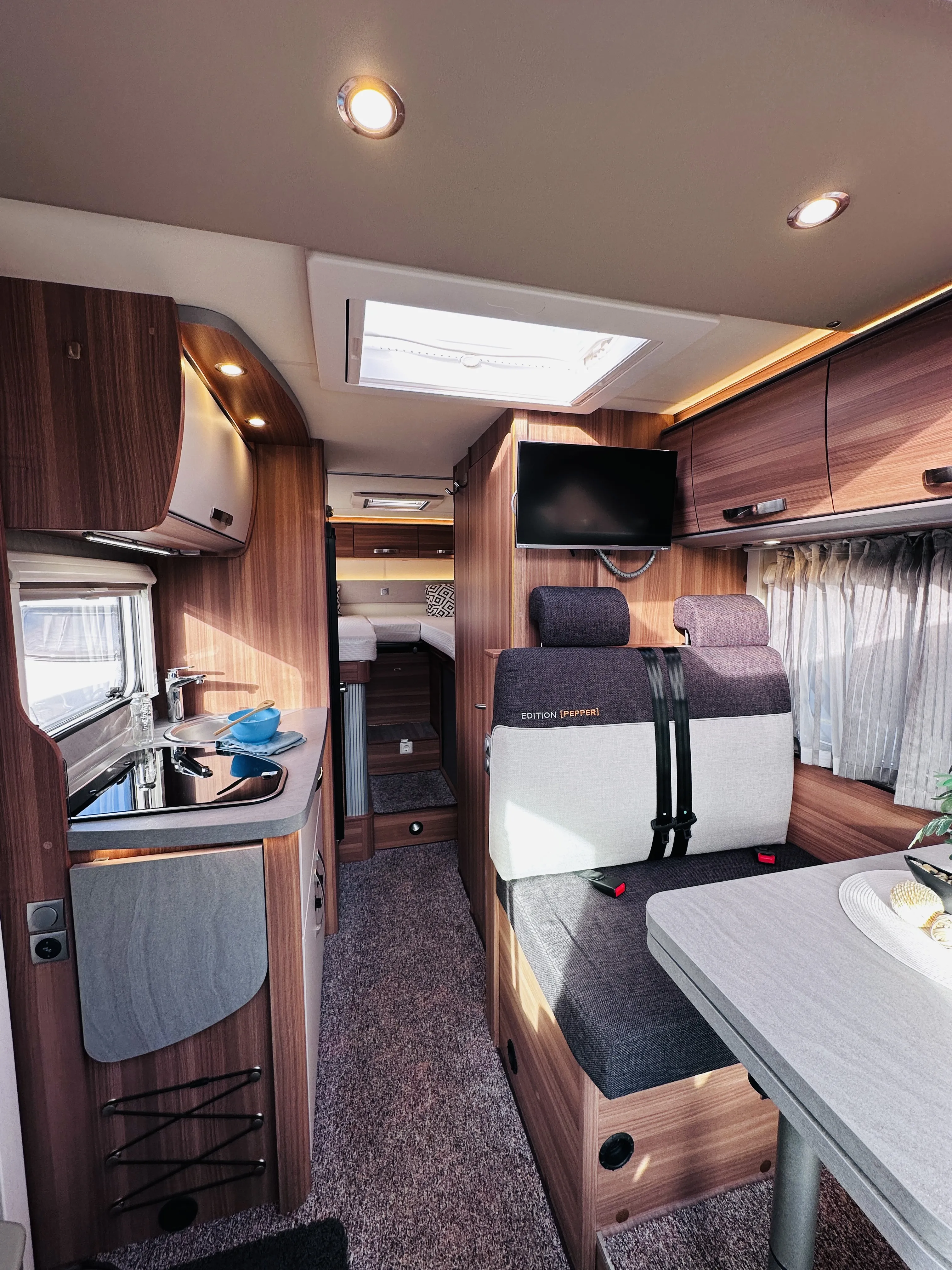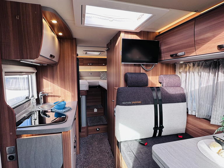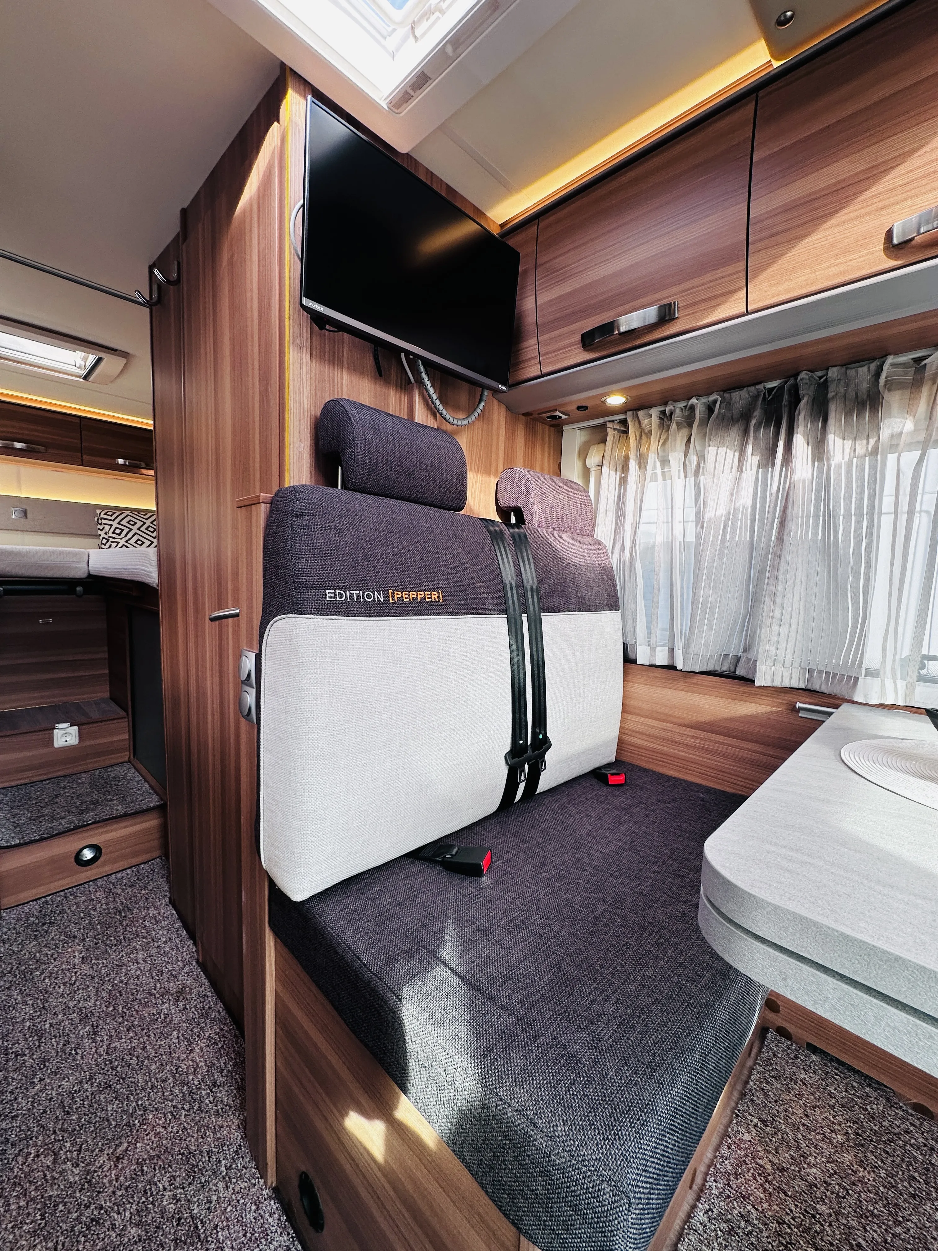 2 x USB - Steckdose (Sitzgruppe und Schlafbereich), TV - Halter,