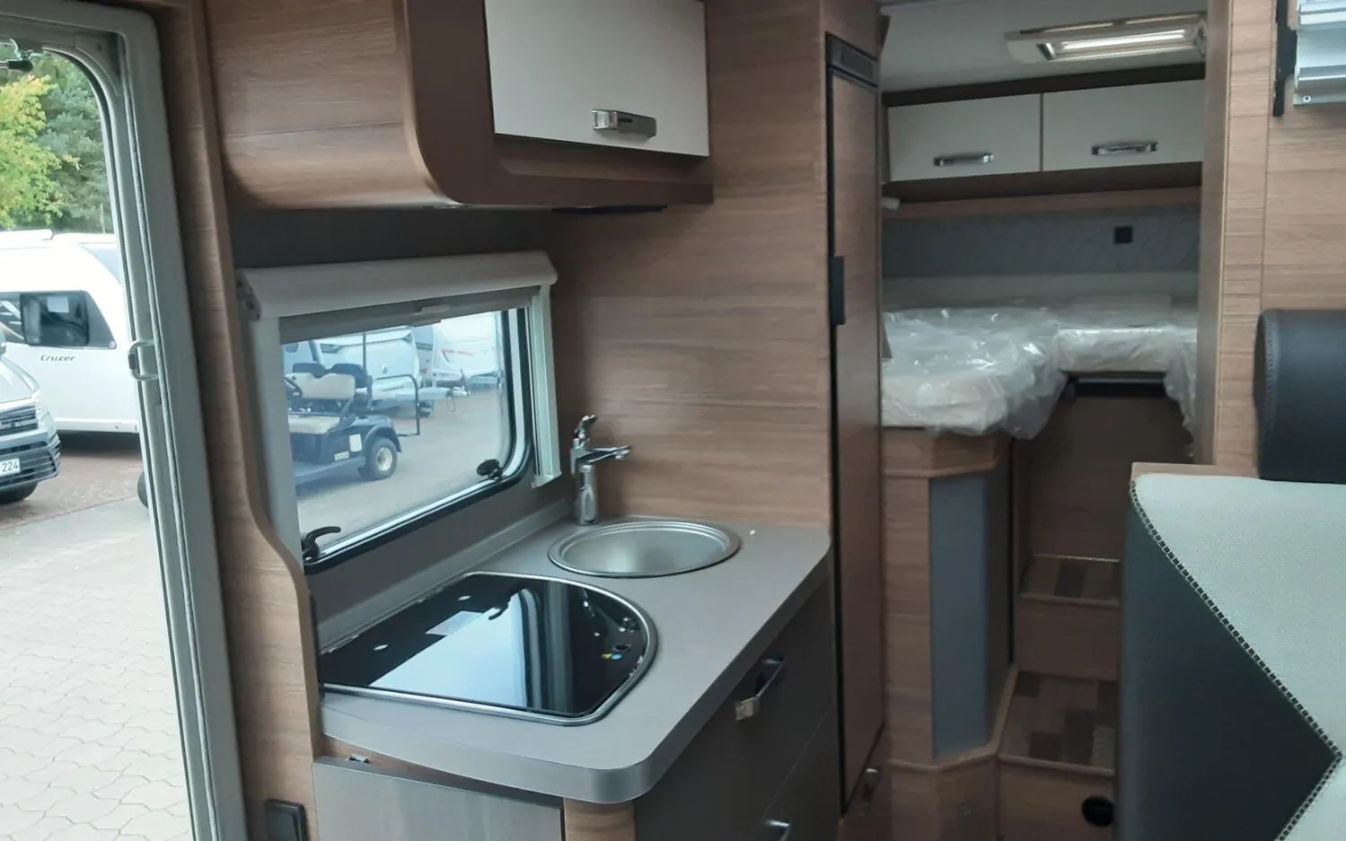 - Hochwertige Passform-Sitzbezüge für Fahrerhaussitze im WEINSBERG Wohnwelt-Design, Betterweiterung zur Liegewiese, Garagentür 80 x 110 cm links, Dachhaube (Hebe-Kipp) 70 x 50 cm, mit Insektenschutz und Verdunklung (Bug) Insektenschutztür,