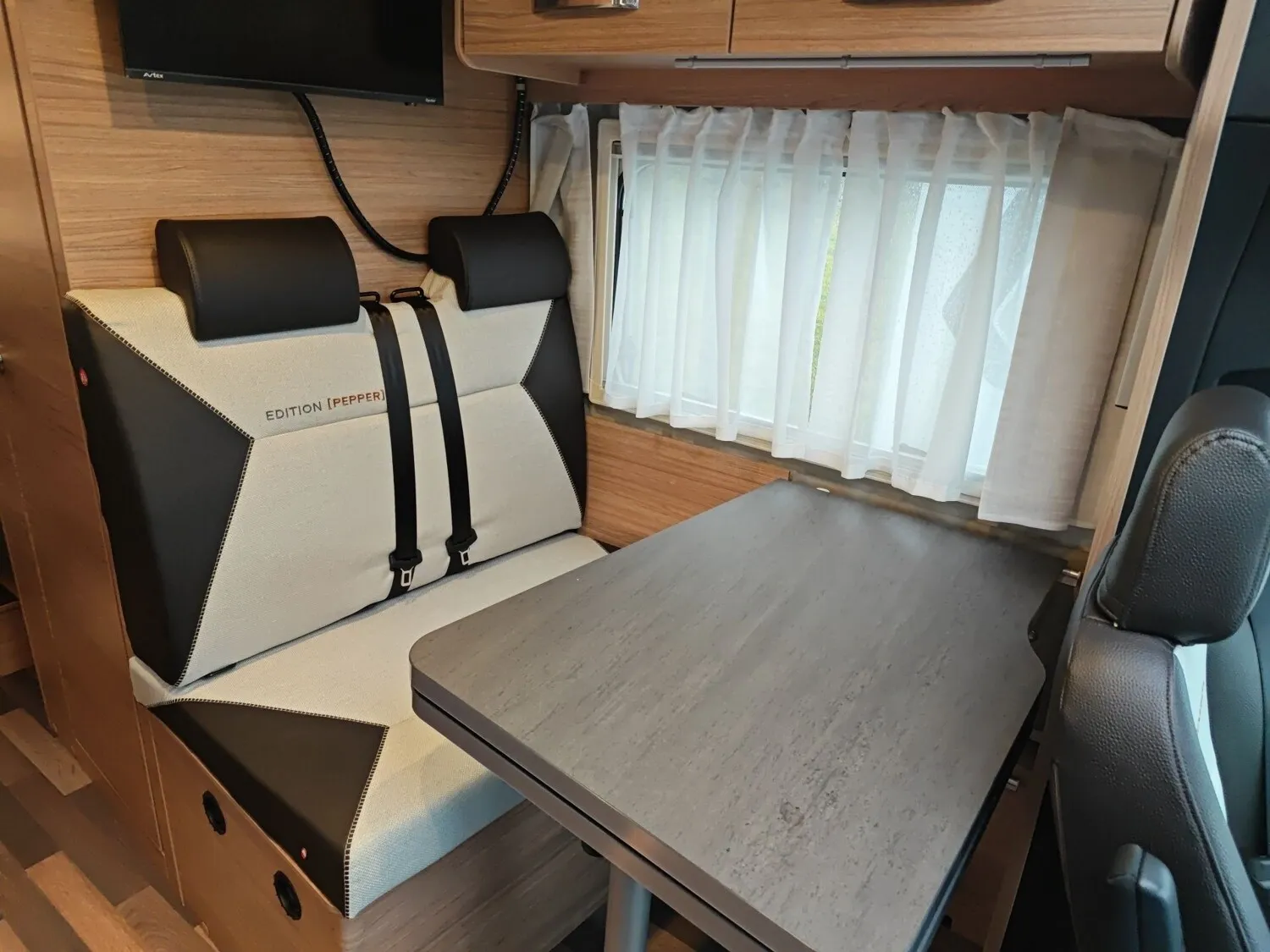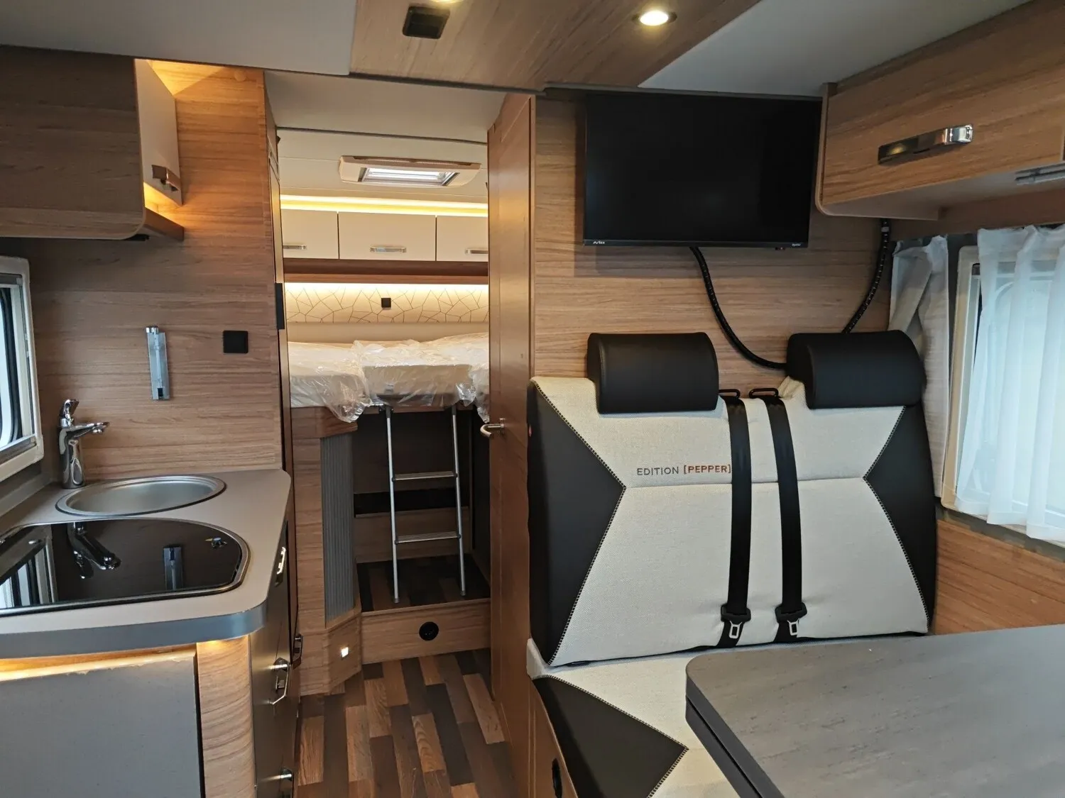 - Insektenschutztür ??TV-Halter ??Stimmungsvolle Ambientebeleuchtung ??Armlehnen beidseitig an Fahrer- und Beifahrersitz ??Isolierhaube Abwassertank, beheizbar ??Lederlenkrad und Lederschalthebel ??TÜV und Zulassungspapier ??COZY HOME EDITION [PEPPER] ??230 V SCHUKO-Steckdose, zusätzlich (Garage) ??USB-Steckdose (1 Stück), im Heck ??Ganzjahresbereifung Camper ??Höhenverstellung Beifahrersitz ??Außenspiegel beheizbar und elektrisch verstellbar ??Sonderbeklebung EDITION [PEPPER] ??Polster: MALABAR