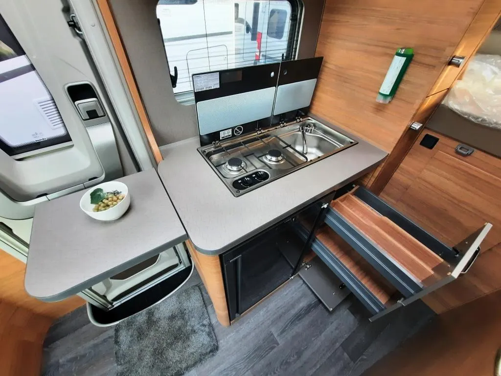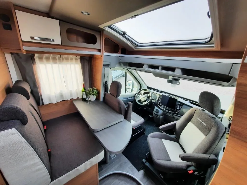 B reitspurfahrwerk, Kühlergrill - Chrom-Dekor, 16" Bereifung, Fahrer- / Beifahrerairbag, Tempomat, Fahrspurhalte-Assistent, ESP, ABS, Hill Holder (Berganfahrhilfe), Falsch-Fahrer-Warnsystem, Verkehrsschilderkennung, Scheibenwischer mit Regensensor, Elektrische Parkbremse, Halogen Serienscheinwerfer mit Tagfahrlicht, Digitales 8" Cockpit mit integriertem 5G-Modem, GFK-Dach, Vorzeltleuchte mit Bewegungsmelder, Kocher-Spülen-Kombination inkl. 2-Flammen-Kocher mit elektrischer Brennerzündung und geteilter Glasabdeckung, TRUMA Combi 6, LED-Beleuchtung im Wohnraum, Audiosystem mit 12" Multifunktionsdisplay FORD, Dichtigkeitsgarantie 10 Jahre u.v.m.*
