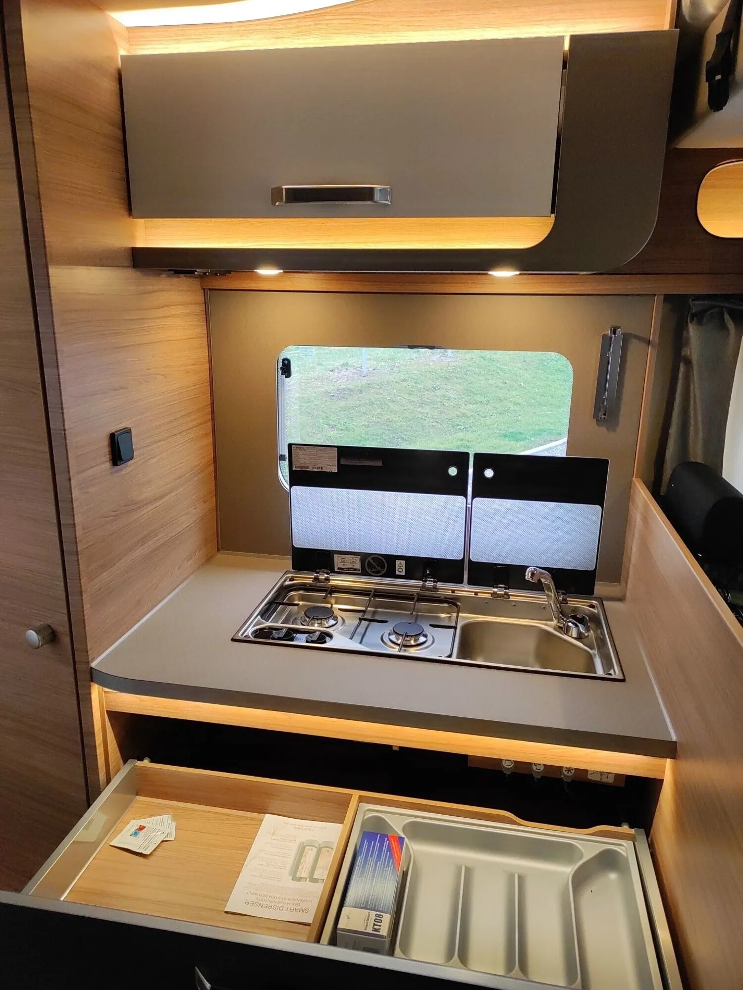 - Voltage Paket - TI FORD (Kassettenrahmen-Rollo (geschlossen), bei Küchenfenster, 230 V SCHUKO-Steckdose, zusätzlich (Garage), USB-Steckdose (1 Stück), im Heck, Ambientebeleuchtung und Küchenrückwandverkleidung)