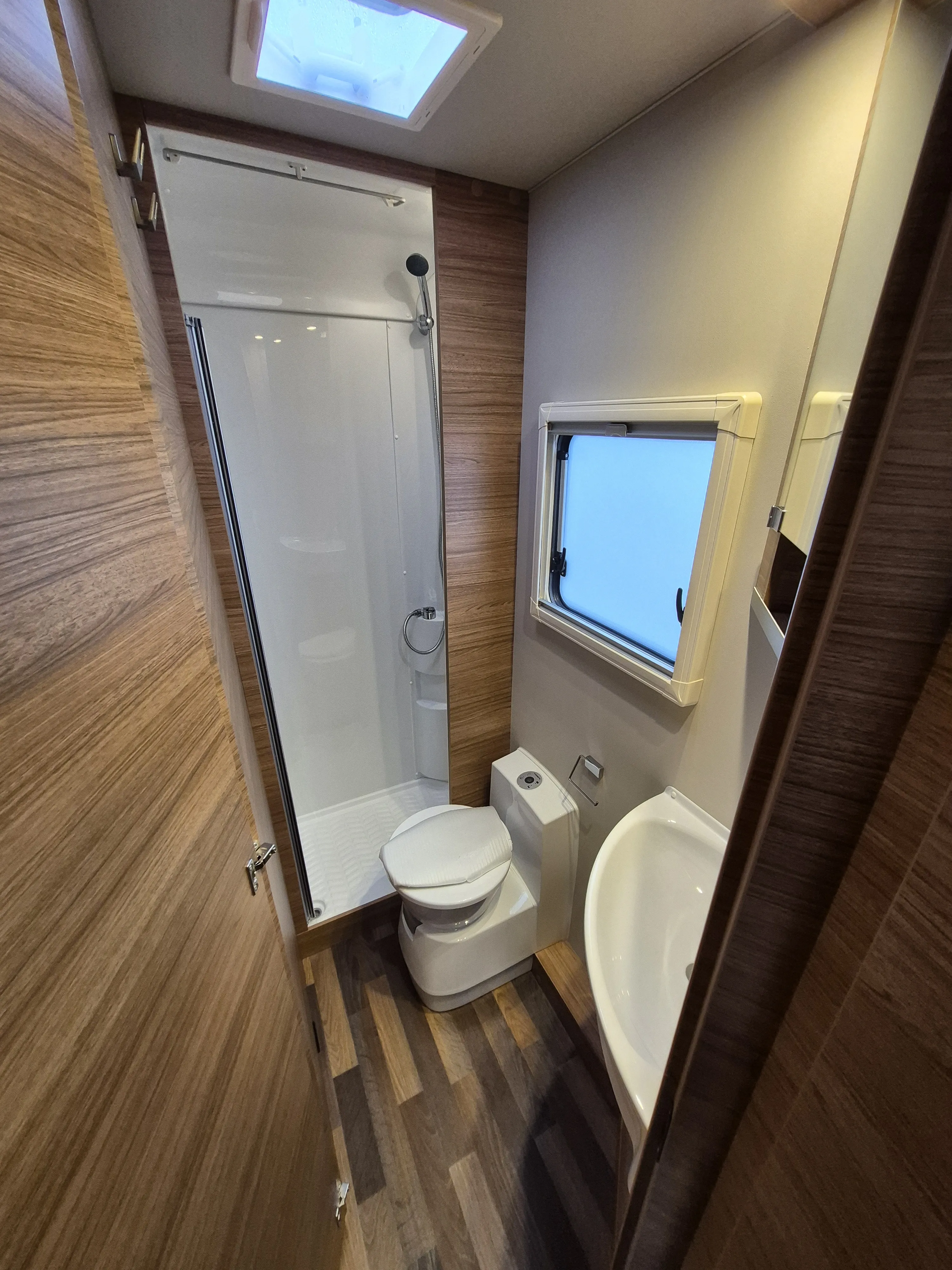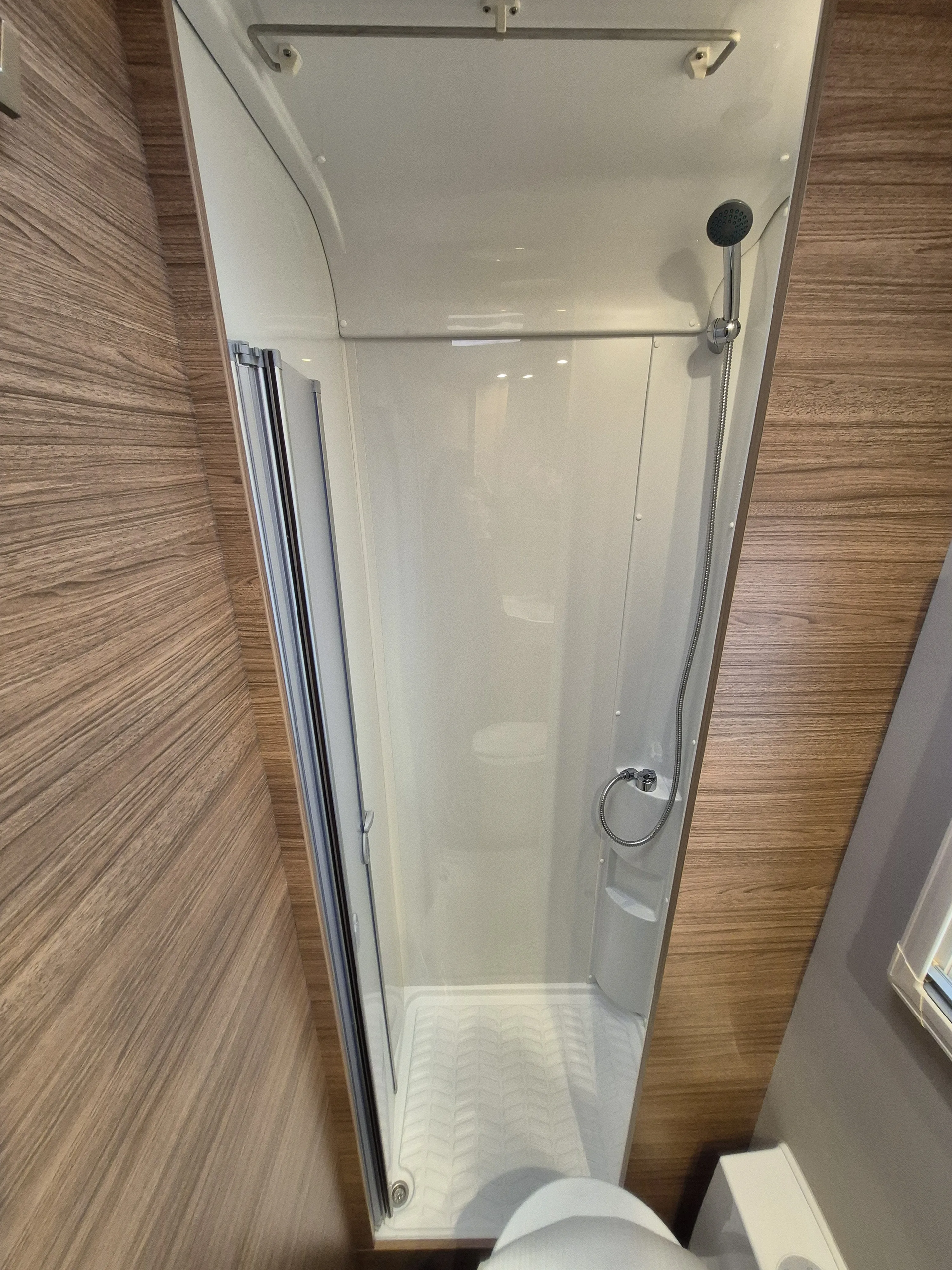 - Duschraum de Luxe mit Kunststoffverkleidung und Duschtür
