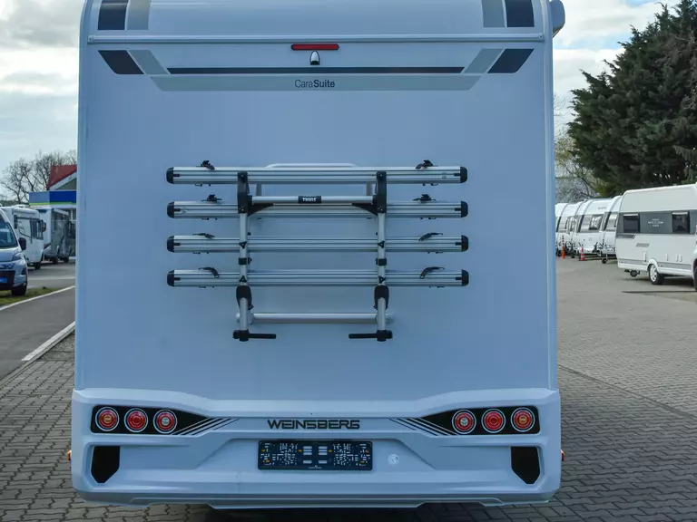 * Mit seiner großzügigen Heckgarage, ISOFIX, dem LTE-TV-System, dem Fahrradträger und der langen Markise ist der CaraSuite bestens für Urlaub, Wochenendtrips und längere Touren ausgestattet. Als Neufahrzeug steht er sofort zur Verfügung – frisch vorbereitet und startklar.