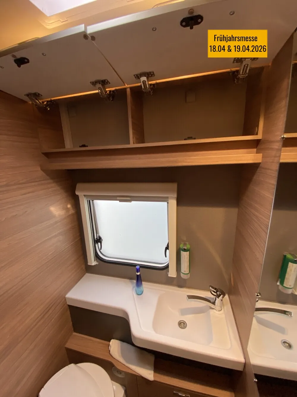 - Ausstellfenster 52 x 50 cm, mit Insektenschutz und Verdunklung (Toilettenraum)