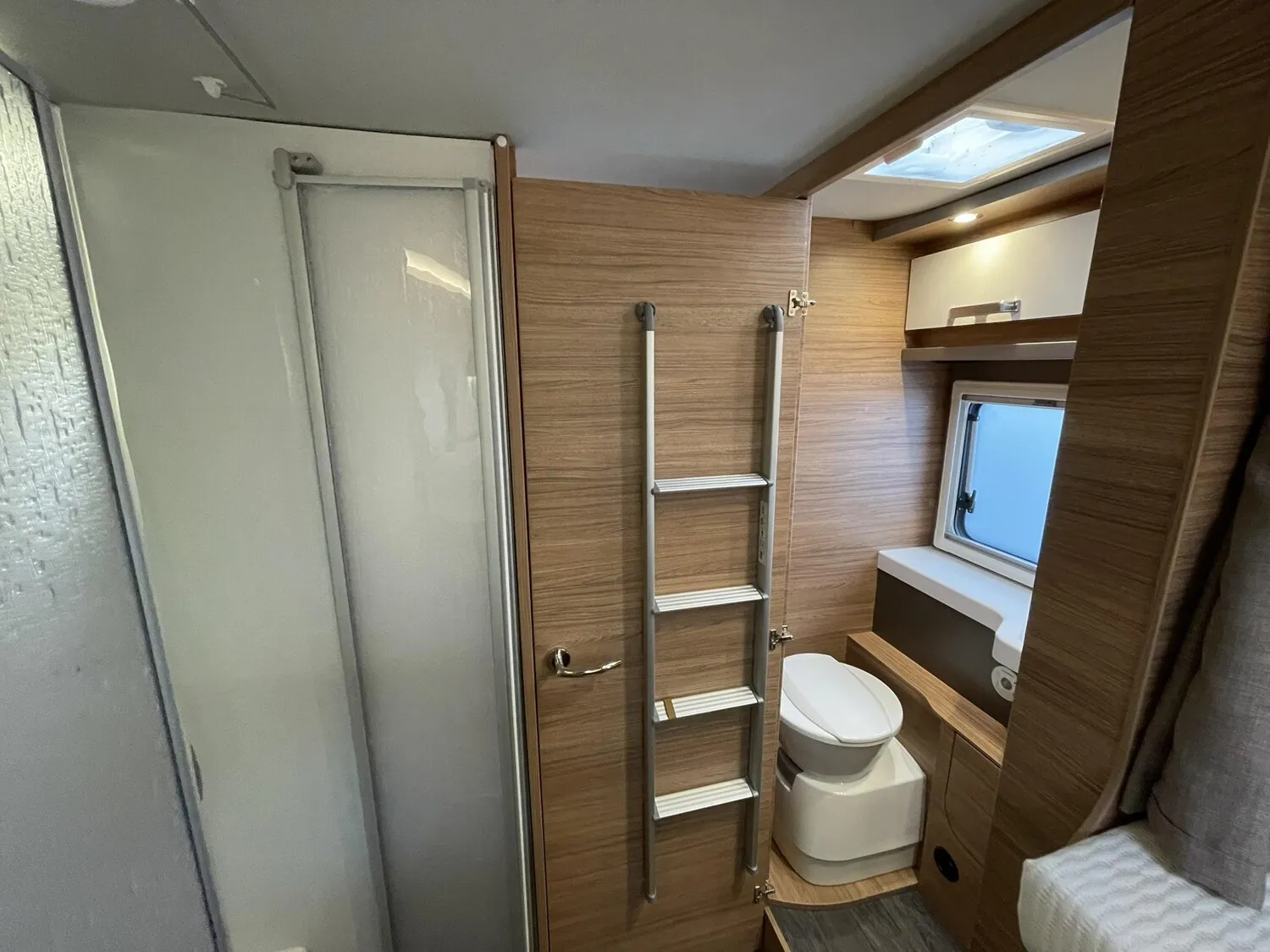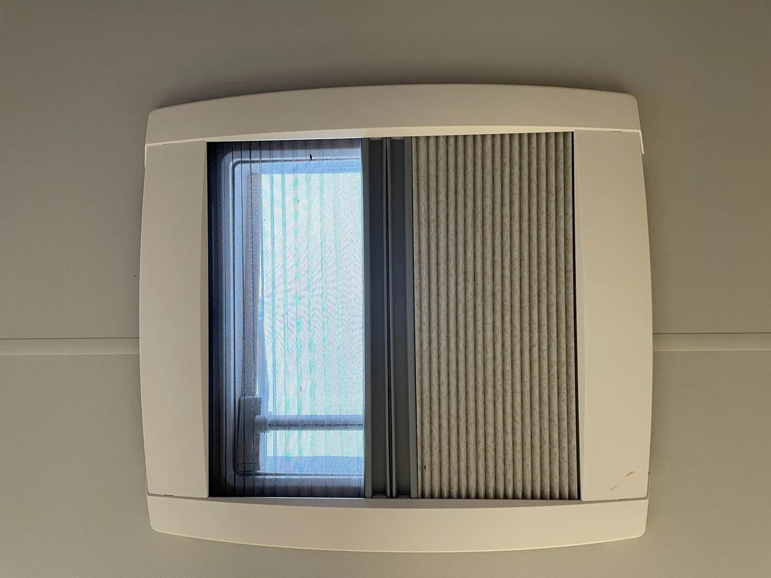 - Ausstellfenster 52 x 50 cm, mit Insektenschutz und Verdunklung (Toilettenraum)