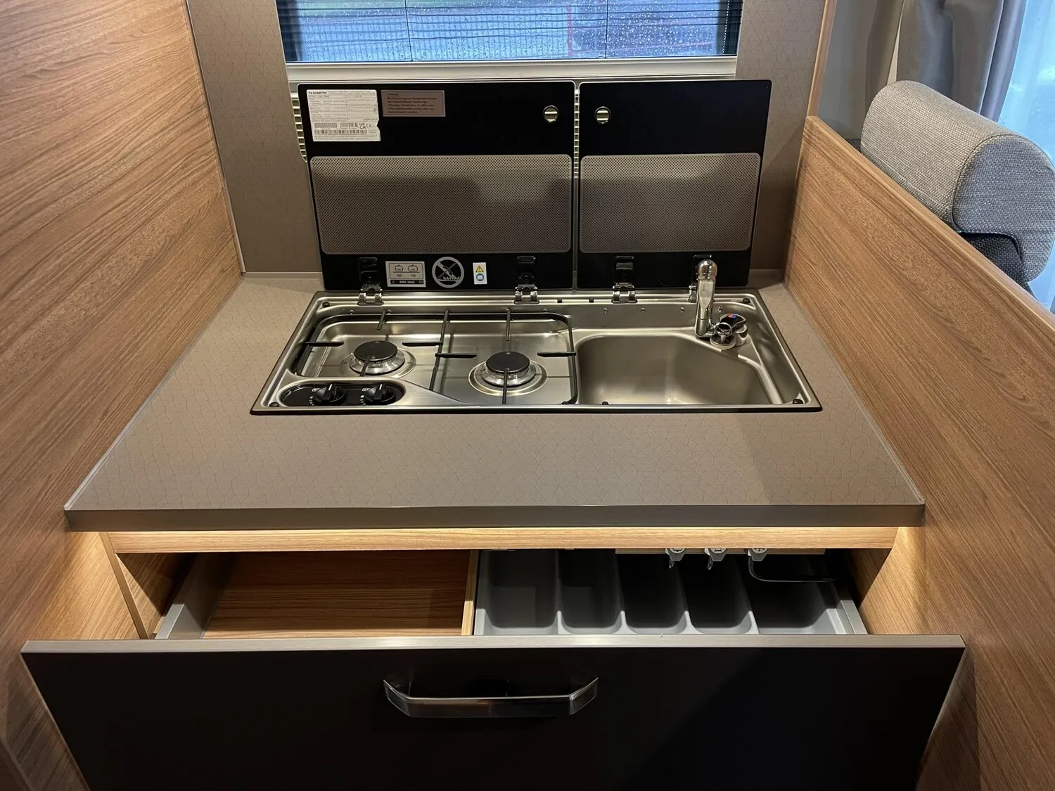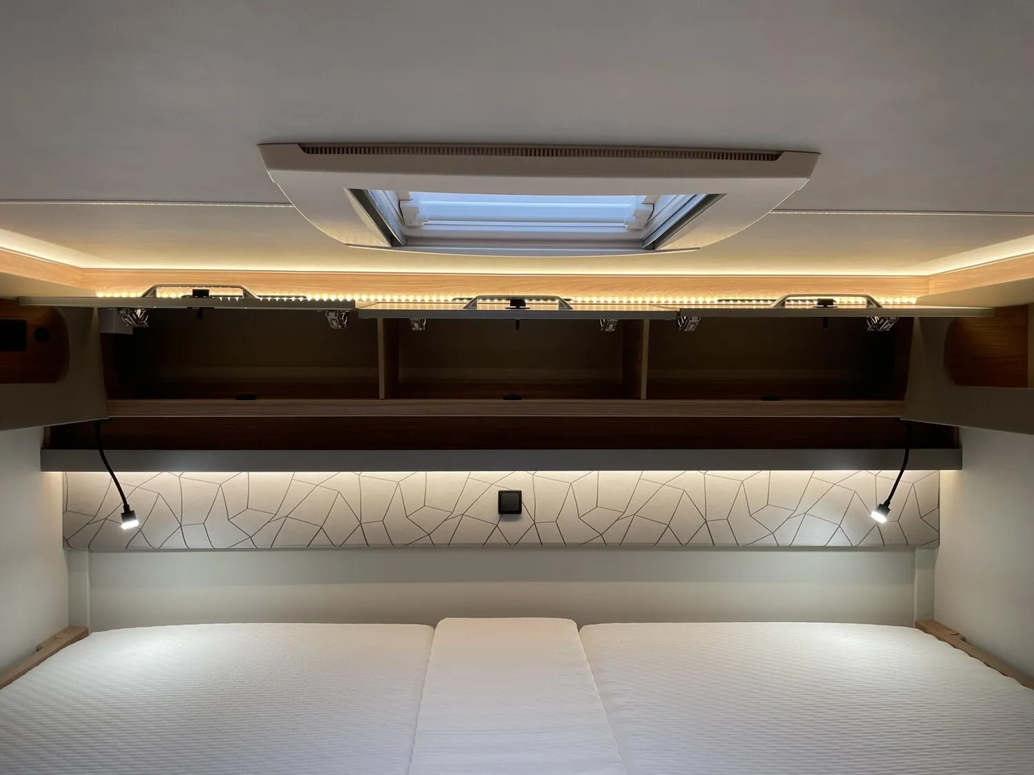 - Voltage Paket - TI FORD (Kassettenrahmen-Rollo (geschlossen), bei Küchenfenster, 230 V SCHUKO-Steckdose, zusätzlich (Garage), USB-Steckdose (1 Stück), im Heck, Ambientebeleuchtung und Küchenrückwandverkleidung)