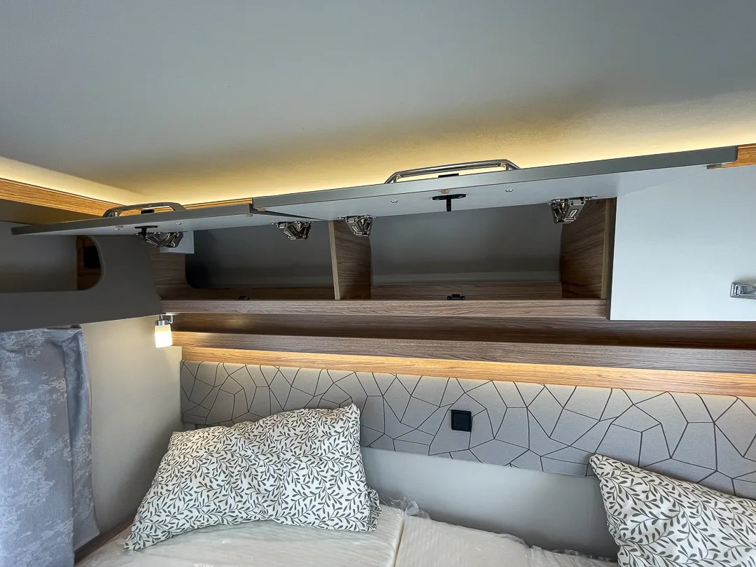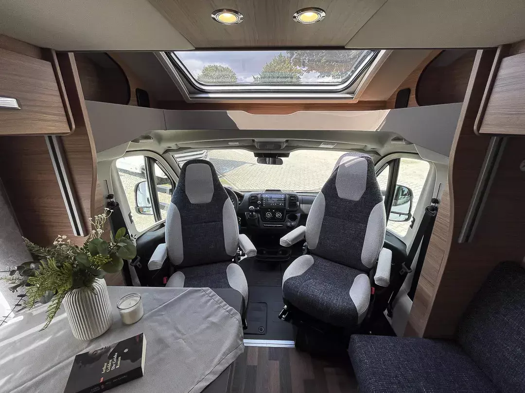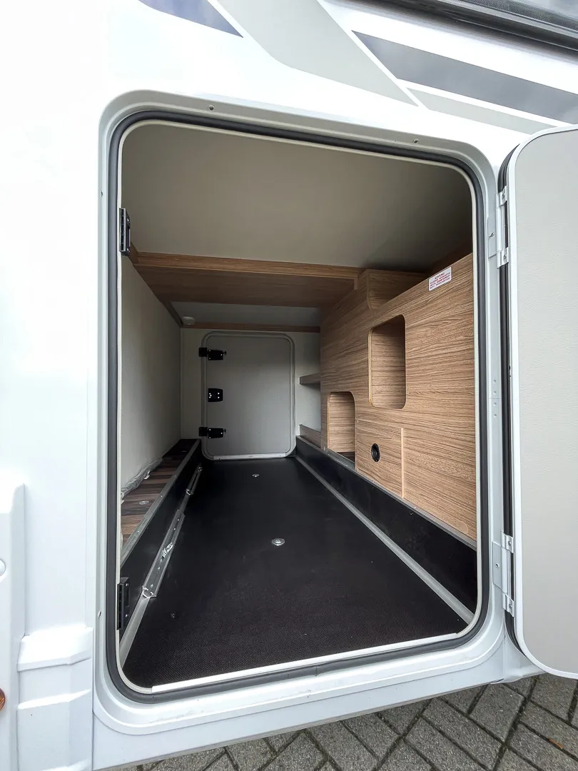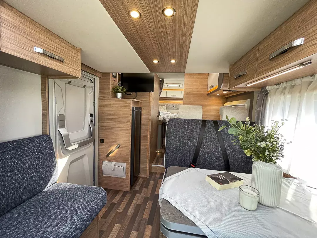 Praktische Details wie die große Garagentür, Ambientebeleuchtung, Smart-Paket mit Insektenschutztür, beheizbarem Abwassertank und Wasserfiltersystem, sowie das Styling-Paket mit Leichtmetallfelgen und LED-Frontbeleuchtung machen das Reisen besonders angenehm. Die Auflastung auf 3.650 kg sorgt für zusätzliche Zuladungsreserven.