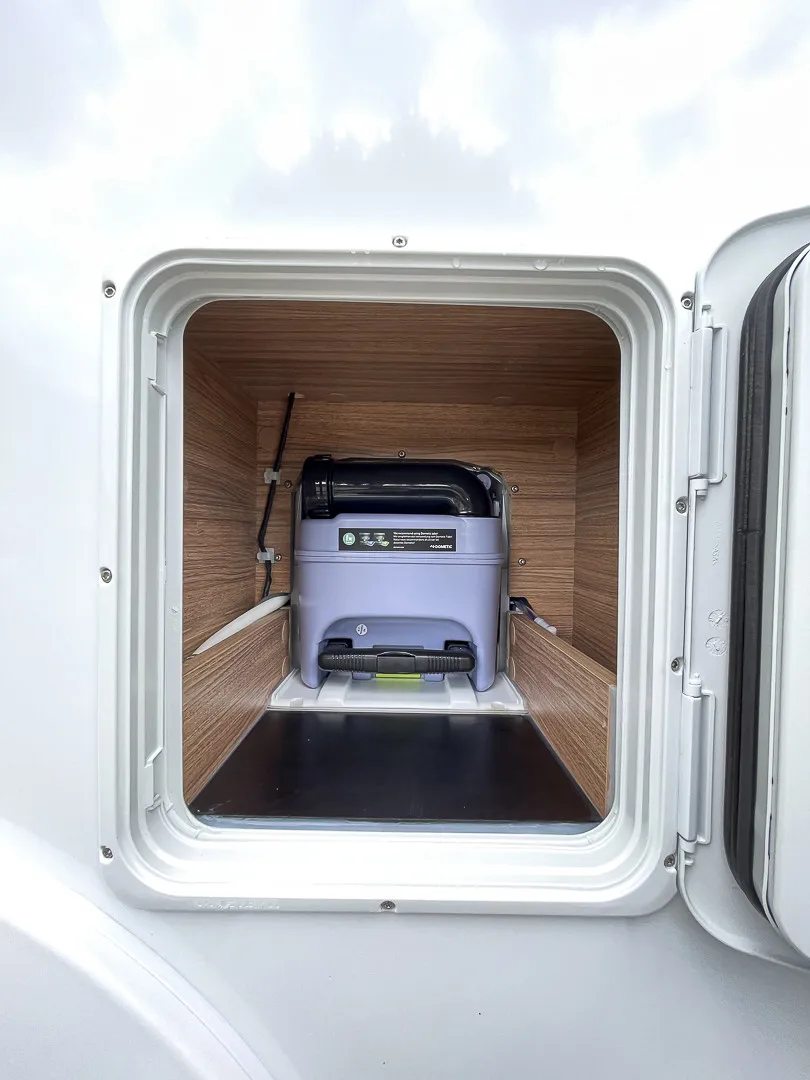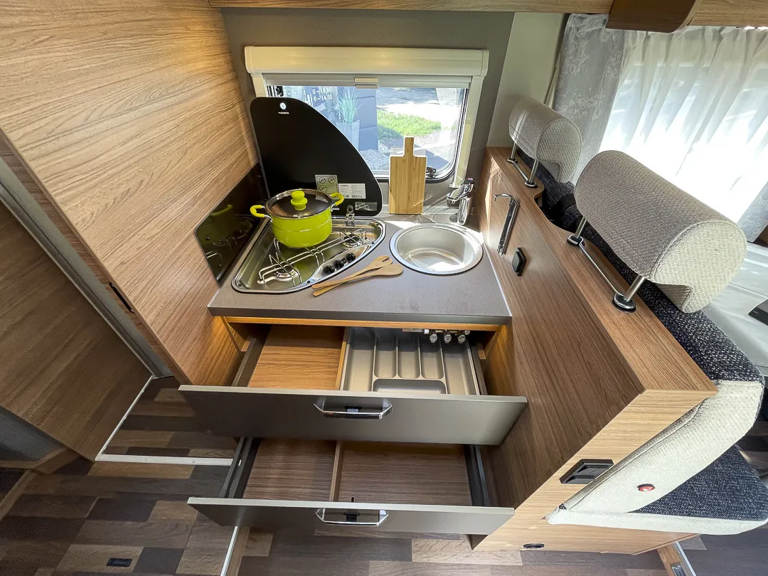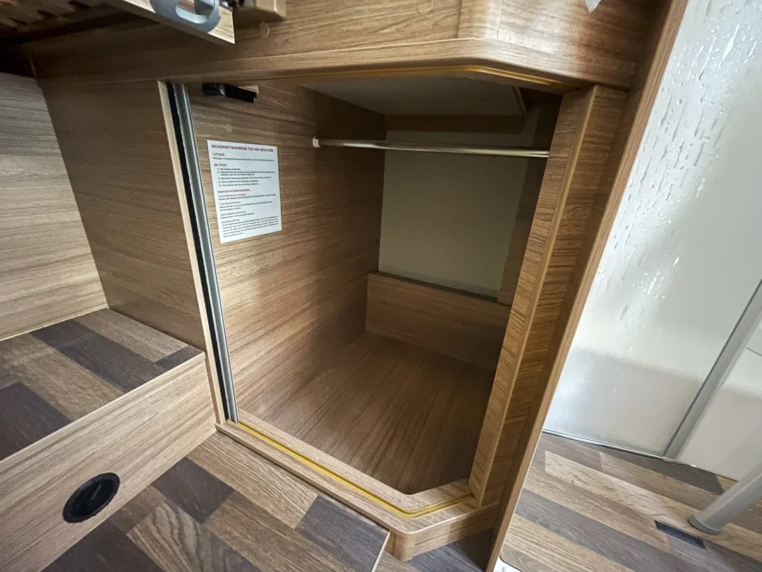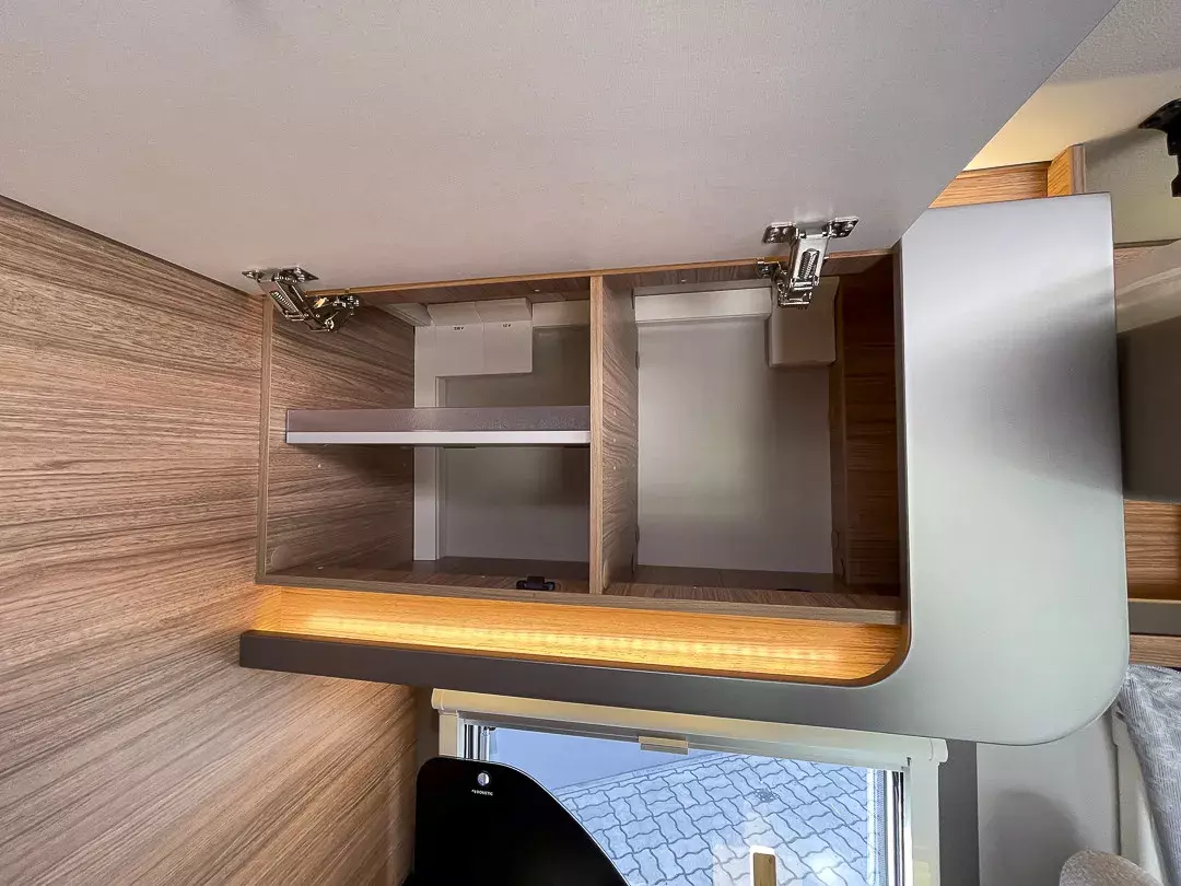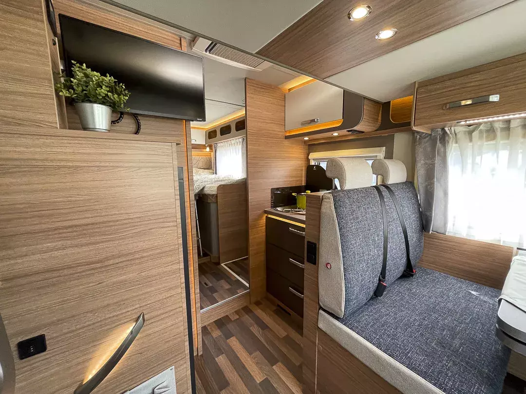 Praktische Details wie die große Garagentür, Ambientebeleuchtung, Smart-Paket mit Insektenschutztür, beheizbarem Abwassertank und Wasserfiltersystem, sowie das Styling-Paket mit Leichtmetallfelgen und LED-Frontbeleuchtung machen das Reisen besonders angenehm. Die Auflastung auf 3.650 kg sorgt für zusätzliche Zuladungsreserven.