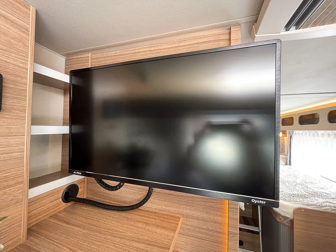 - TV-Paket Twin 27" - 60er (TV-Halter, Vorverkabelung für TV (Schlafbereich), Antennenkomplettsystem Oyster 60 Premium, Twin, 27" SMART TV-Gerät mit HD-Tuner)