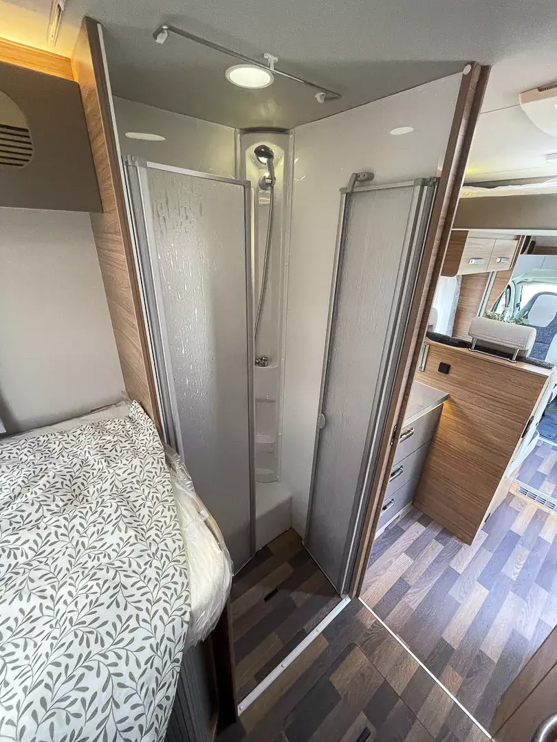 Angetrieben von einem 2,2-Liter-Multijet-Motor mit 140 PS und manuellem Getriebe, bietet das Fahrzeug ein sicheres und angenehmes Fahrgefühl. Die umfangreiche Ausstattung umfasst unter anderem Klimaanlage, Lederlenkrad, Sitzheizung, Markise, Navigationssystem, TV, DAB-Radio, Multifunktionslenkrad, separate Dusche, große Heckgarage und eine elektrische Einstiegstufe. Für Sicherheit sorgen zahlreiche Assistenzsysteme wie Notbremsassistent, Spurhalteassistent, Fernlichtassistent, Reifendruckkontrolle, Regensensor, Einparkhilfe mit Kamera und ISOFIX-System für Kindersitze.