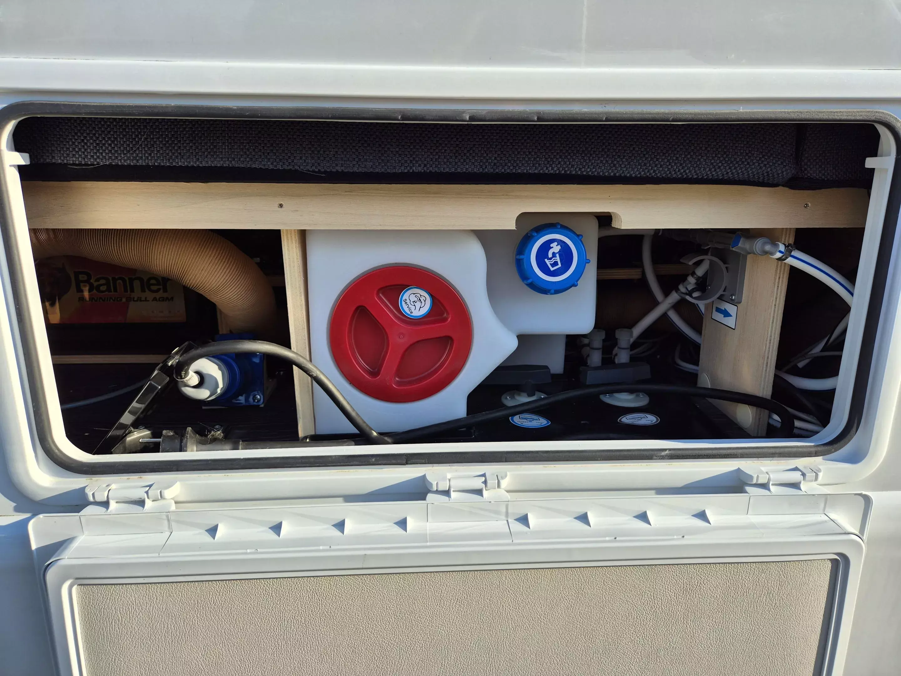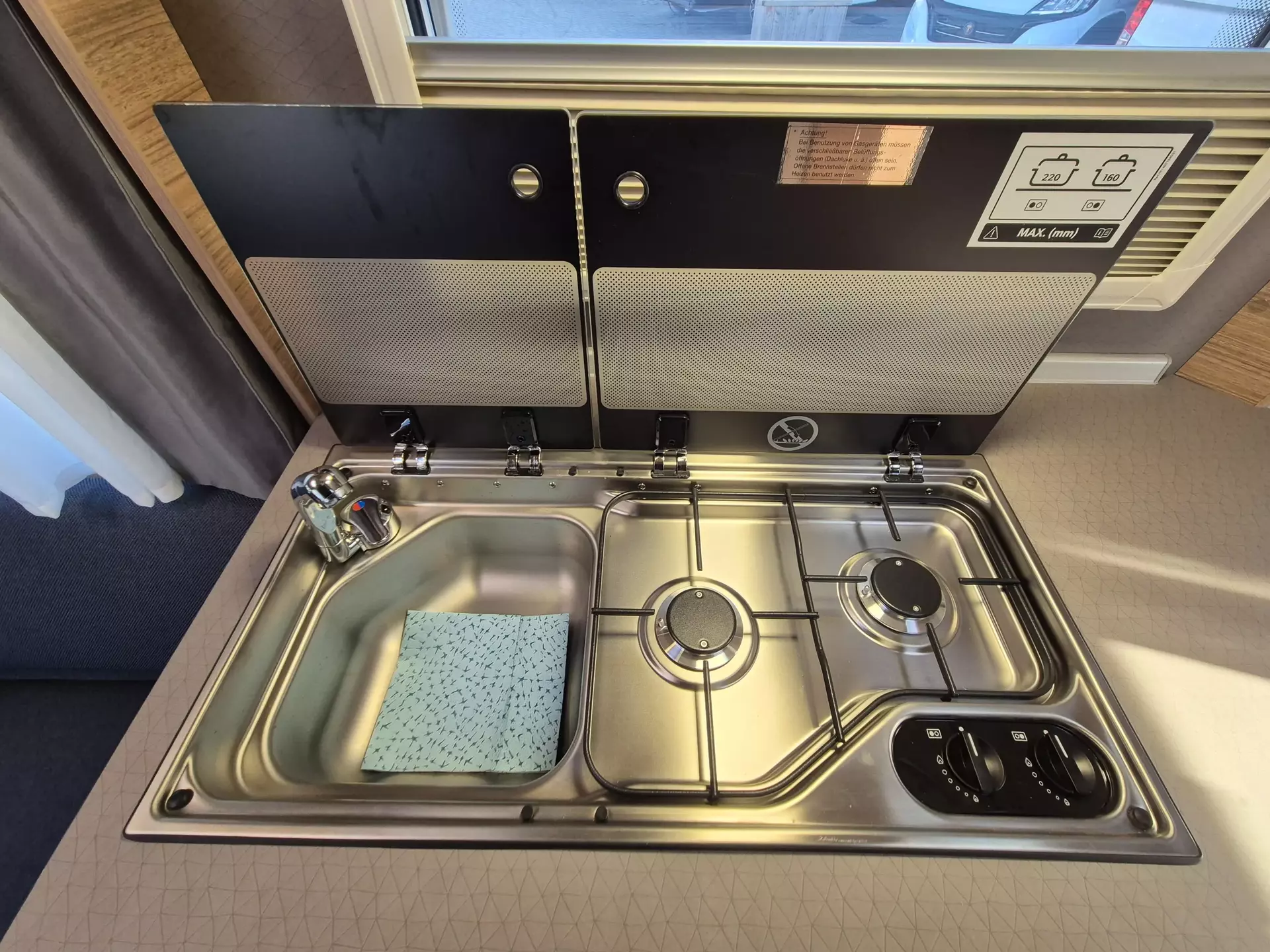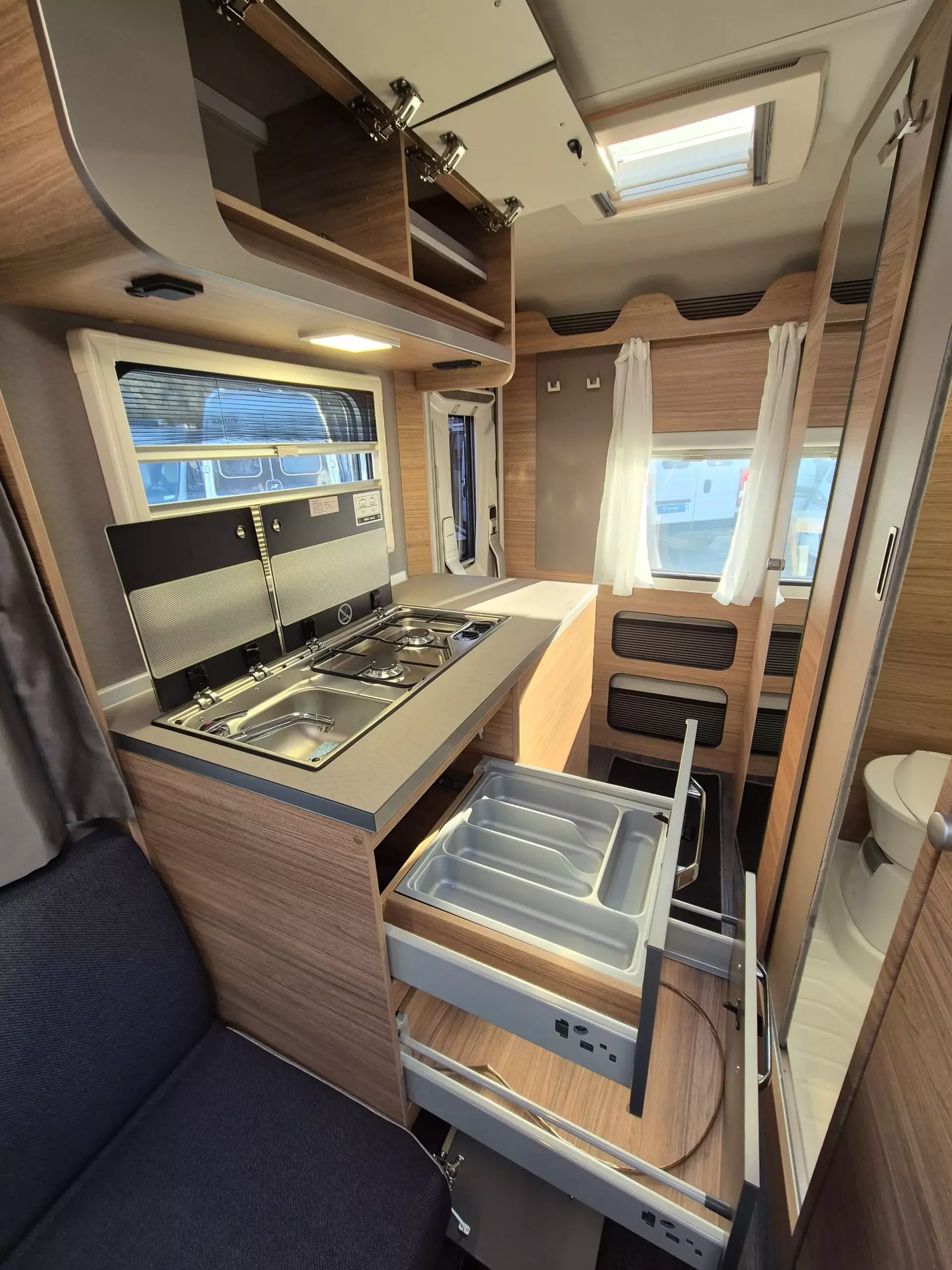 * Teil 3: Insektenschutztür, Dachhaube mit Beleuchtung, Oyster 60 Premium Twin SAT-Anlage, 27″ Smart-TV, Cozy Home Edition mit Ambientebeleuchtung & Wasserfiltersystem