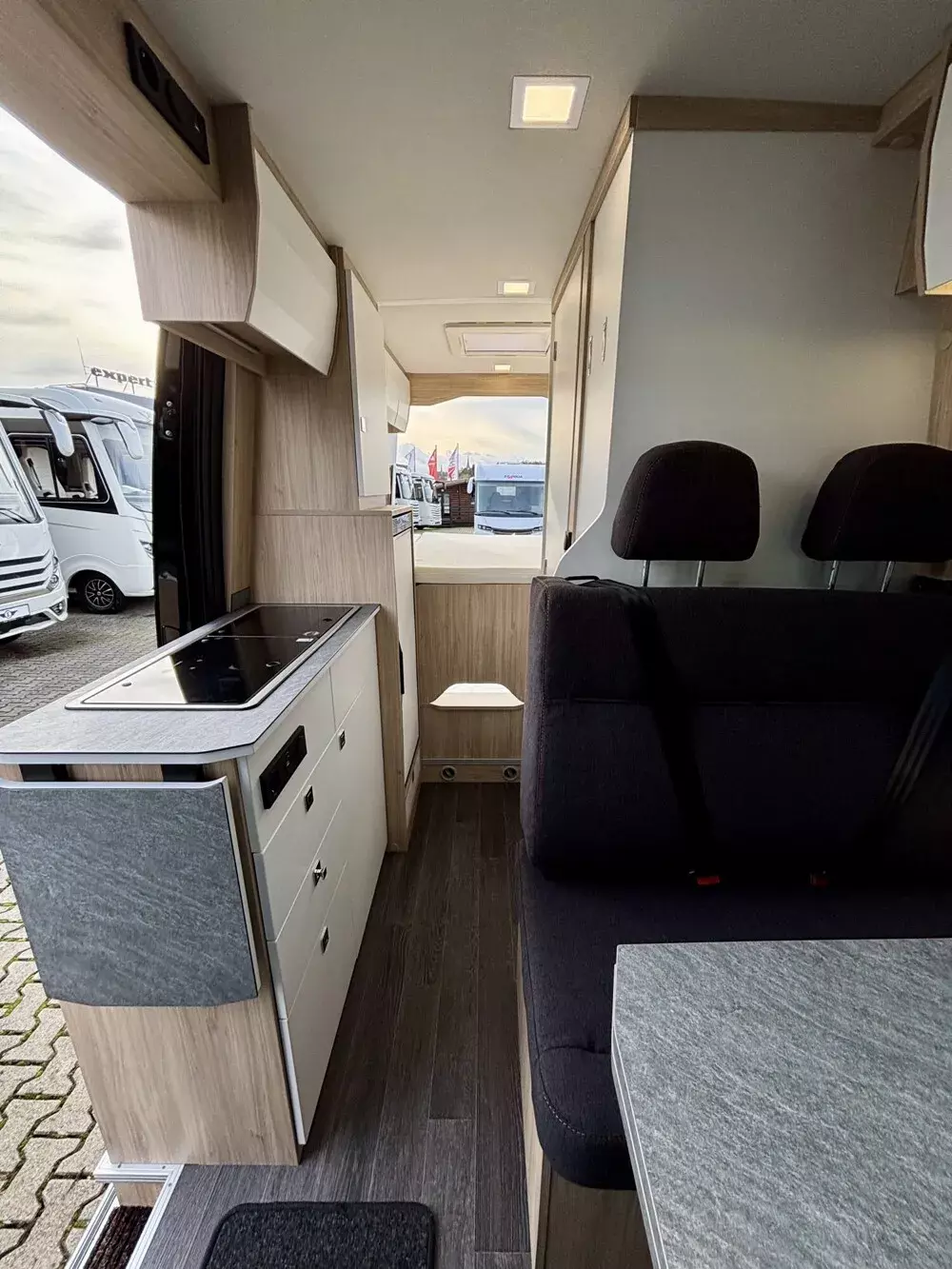 - Yucon Wohnwelt V-City (Holz: Visby/WhitePolsterstoff:- Fläche 1 / Sitzfläche: Pure Touch- Fläche 2 / Rückenpolster: Pure TouchBoden: AnthrazitKissen:keine KissenArbeitsfläche: Duropal BetonTischplatte: Duropal BetonFahrerhaussitze:- Fläche 1 / Innen: Pure Touch- Fläche 2 / Außen: Pure Touch(Flächenaufteilung siehe Detailzeichnungen)
