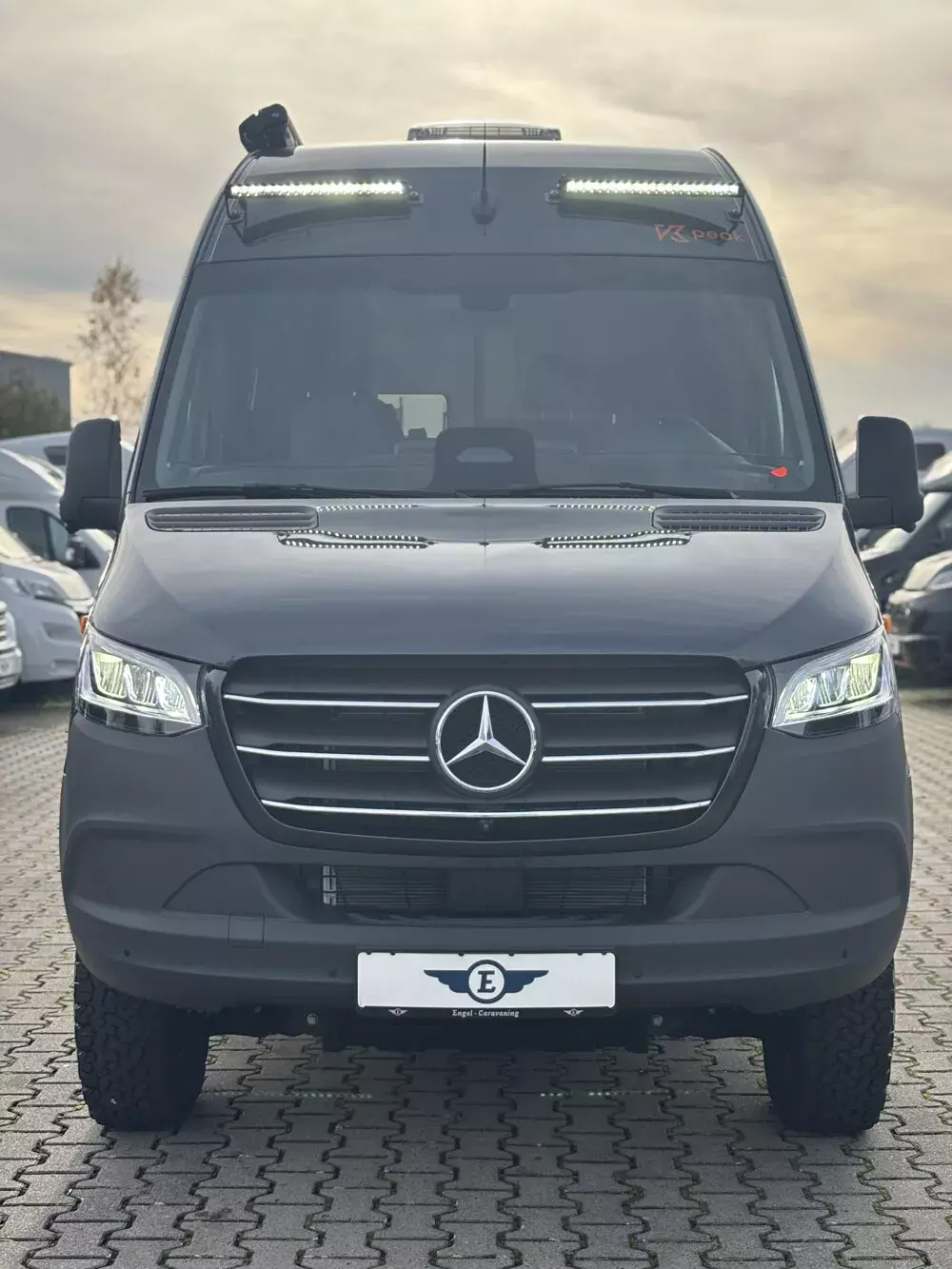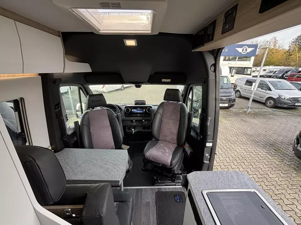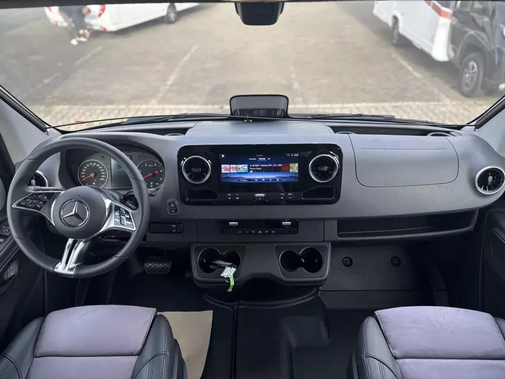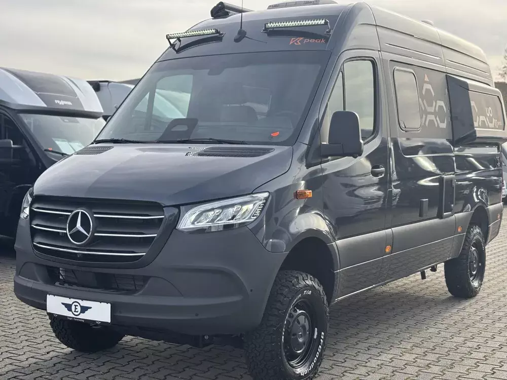 - Serien-Chassis K-Peak (Keyless Start, Klimaanlage Thermotronic, Automatikgetriebe, elektr. Parkbremse, MBUX 10,25 Zoll, 93 l Dieseltank, elektr. Schließhilfe für Schiebetür, Park-Paket mit 360 Grad Kamera, Grobstollenbereifung mit 16" Stahlfelgen Original Mercedes, Geschwindigkeitsbegrenzung 120 km/h)