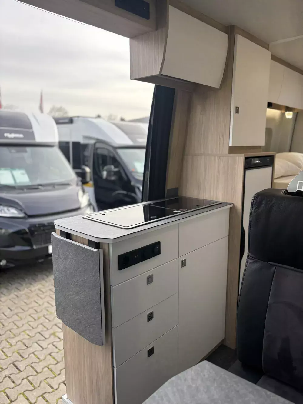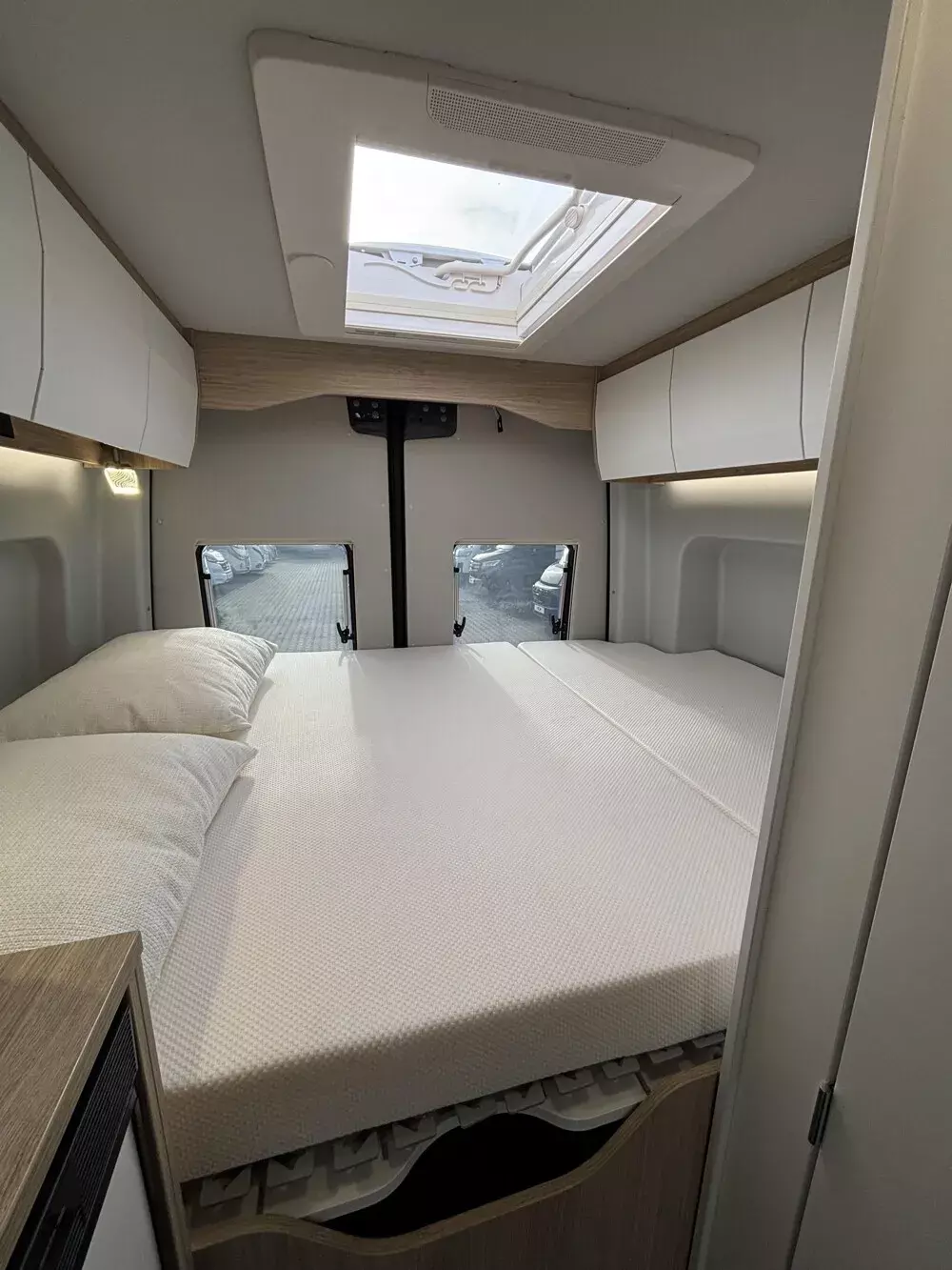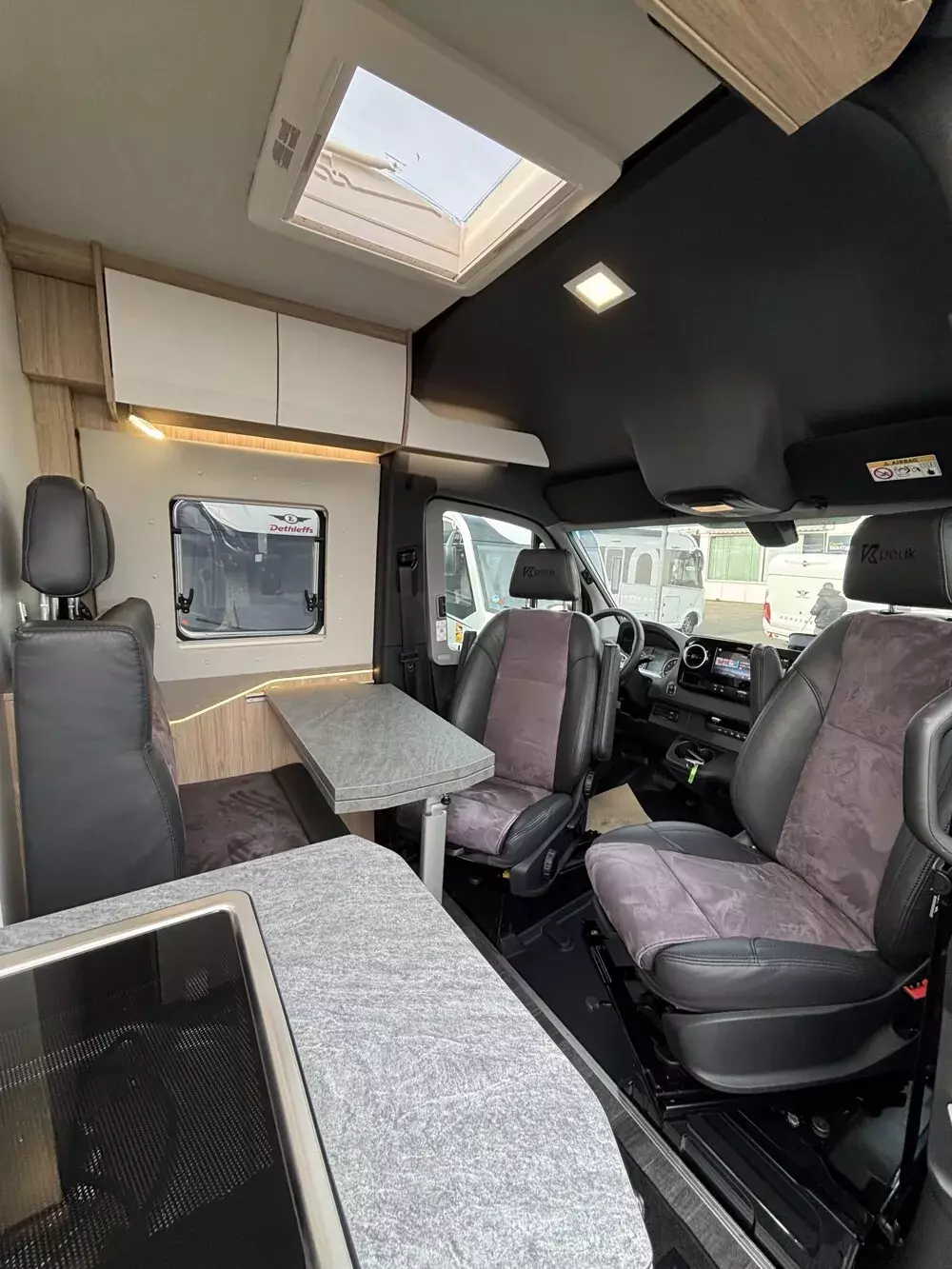 - Serien-Chassis K-Peak (Keyless Start, Klimaanlage Thermotronic, Automatikgetriebe, elektr. Parkbremse, MBUX 10,25 Zoll, 93 l Dieseltank, elektr. Schließhilfe für Schiebetür, Park-Paket mit 360 Grad Kamera, Grobstollenbereifung mit 16" Stahlfelgen Original Mercedes, Geschwindigkeitsbegrenzung 120 km/h)