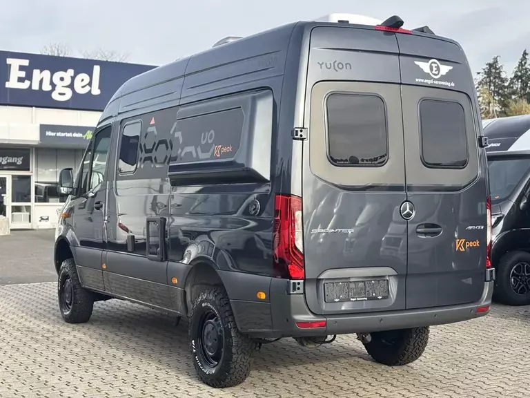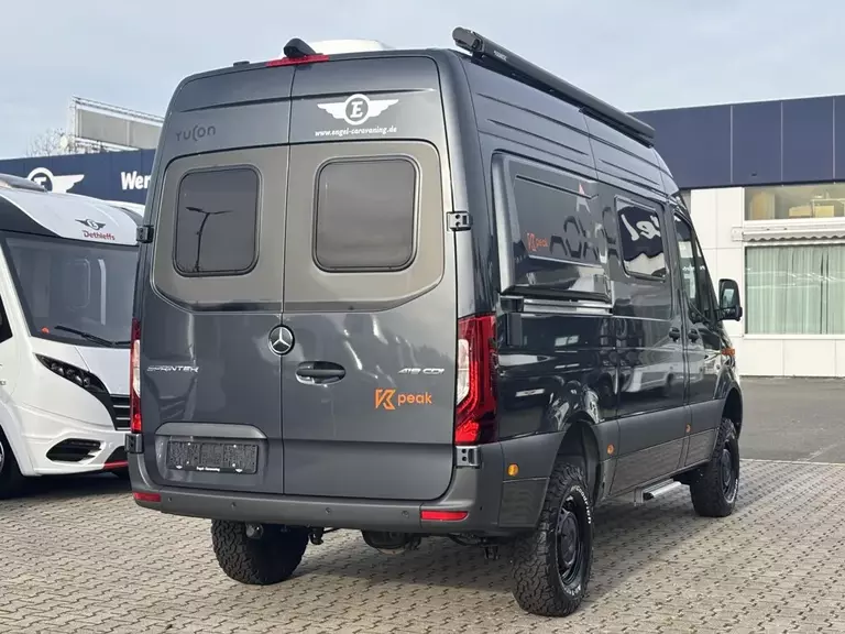 - Yucon Serienausst. K-Peak (Allrad-Edition inklusive:Spezielles Außen- und Innendesign, zusätzliche LED Leuchten an Fahrzeugfront, Batterie Booster, Zusatzladegerät für Starterbatterie, Wäscheleine, Steckdosenpaket, Heizung Abwassertank inklusive elektromagnetischem Ventil zur Entleerung, Vorzeltleuchte, Midi Heki (außer bei Aufstelldach), Fahrerhaus-Teppich, 90 W Solaranlage, Schlafkomfort deluxe, 300 Ah LiFePO Batterie, DieselheizungBei allen GD inkl. GD-Bettverlängerung Bei 6.0 GD: Inkl. Stauraumpaket)