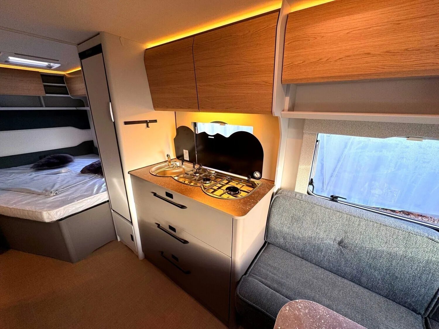 - 2026 Serienausstattung B66 Wohnwagen (Alufelgen|Antischlingerkupplung AKS 3004|Automatische Bremsnachstellung|Ersatzradhalterung im Gaskasten|Radkastenisolierung|Sicherheitsfahrwerk|Stabilformstützen|Aufbautür, einteilig ohne Fenster|Außenblech, Seitenwand Grobhammerschlag, Weiß|Dachhaube 40 x 40 cm|Doppelfenster, getönt und ausstellbar, mit Kombirollos|Fliegenschutz für Eingangstür|GFK Unterboden|GFK-Bugwand mit reduzierter Hagelempfindlichkeit|GFK-Dach mit reduzierter Hagelempfindlichkeit|GFK-Heckwand mit reduzierter Hagelempfindlichkeit|Hinterlüftete Rückenlehnen|Kaltschaummatratze|Lattenrost für alle Bettvarianten|Möbeldekor B66|Indirekte Beleuchtung Oberschränke|LED Vorzeltleuchte|My Bürstner App |Rauchmelder|Steckdosen 230 V|USB Ladesteckdosen|Umformer 350 VA|Zentraler Lichtschalter|Gasheizung 3000 W mit Zündautomatik|Umluftanlage 230 V|Vorbereitung für Klimaanlage|Rollrost (Single-Twin-Bett) bei Einzelbetten|Sitzgruppe zur Liegefläche umbaubar|Abfallsammler an Eingangstüre|Kompressorkühlschrank, 132L|Multifunktionsschiene|Soft Einzüge im Küchenbereich|3-flammiger Gaskocher mit E-Zündung und Glasabdeckung|Elektrischer Warmwasseraufbereiter mit 5 l Wasserinhalt, 300 W|Spül- WC|Wassertank 44 L|Digitale Wasserwaage|Home Light inkl. Lade- und Dockingstation (2 Stück)|Indirekte Beleuchtung Oberschränke|LED Vorzeltleuchte|My Bürstner App|Rauchmelder)