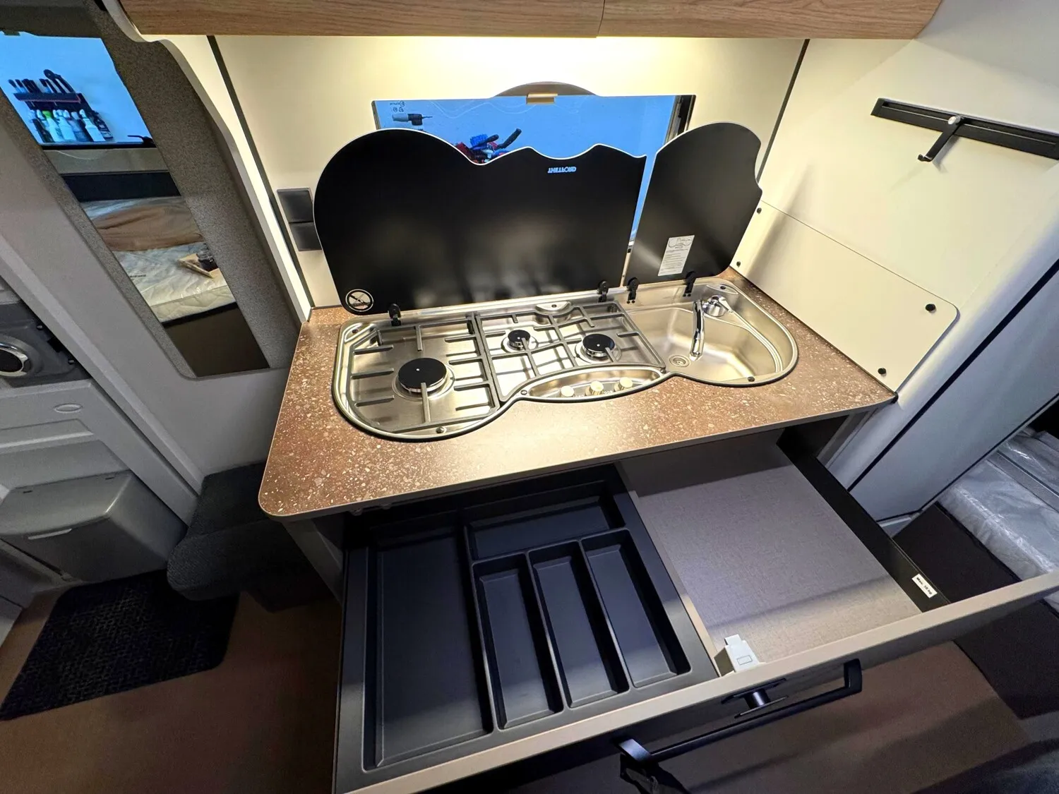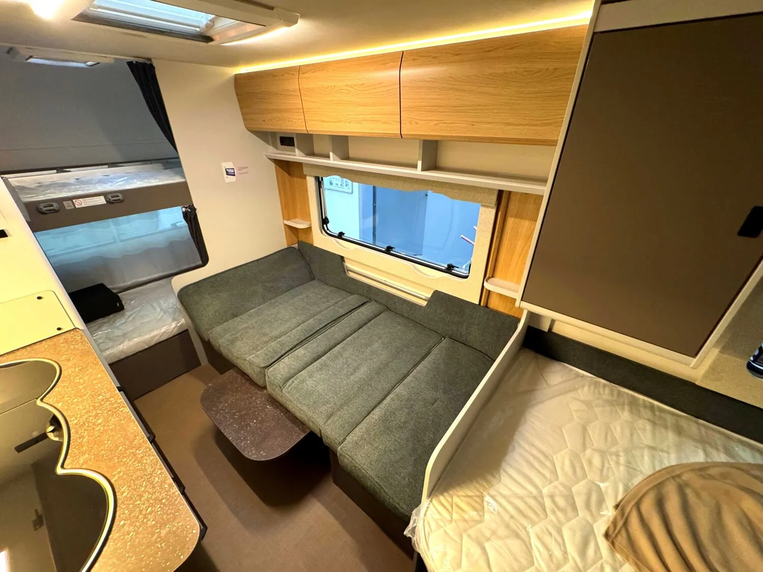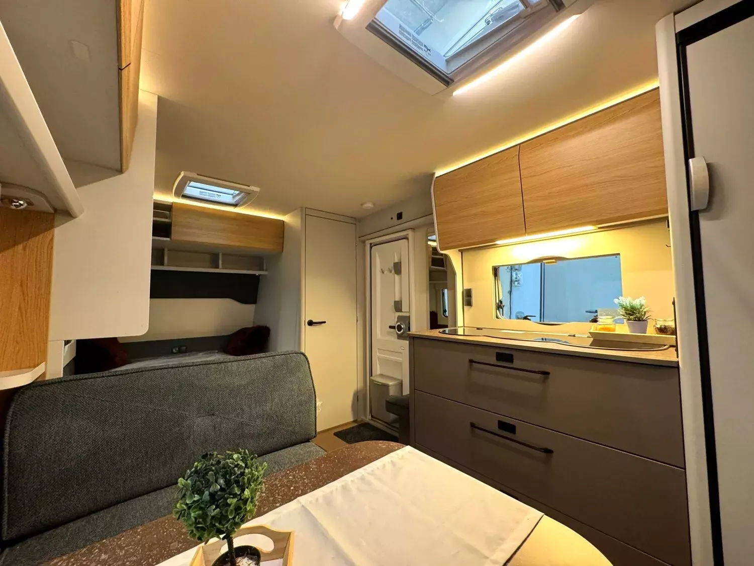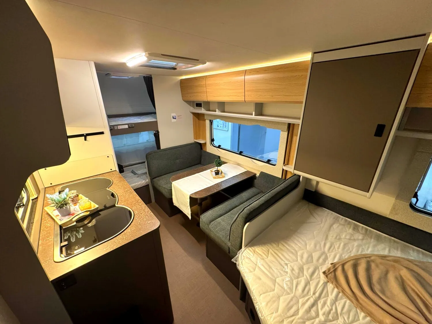 - Ausstattungshighlights B66 Wohnwagen: Antischlingerkupplung AKS 3004, Sicherheitsfahrwerk, Fliegenschutz für Eingangstür, GFK Unterboden, GFK-Bugwand und -Dach mit reduzierter Hagelempfindlichkeit, Sitzgruppe zur Liegefläche umbaubar, Kompressorkühlschrank, 131,5 L (davon 15 L Gefrierfach), Spüle, 3-flammiger Gaskocher mit E-Zündung und Glasabdeckung, Doppelfenster, getönt und ausstellbar, mit Kombirollos, Home Light inkl. Lade- und Dockingstation (2 Stück), 40 Liter Frischwassertank, Truma Therme Warmwasser u.v.m.