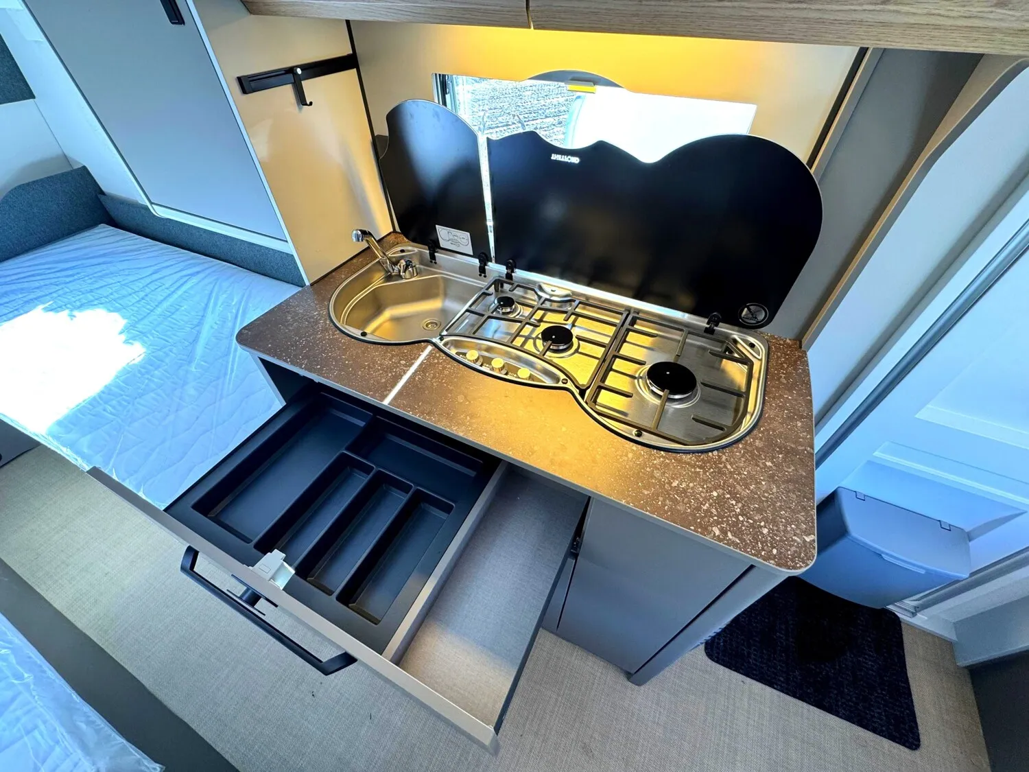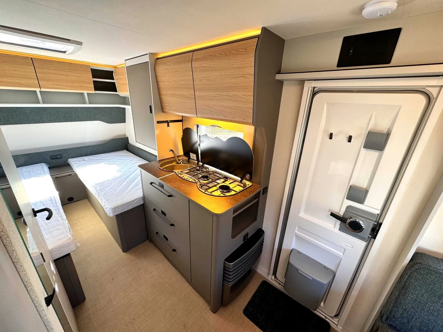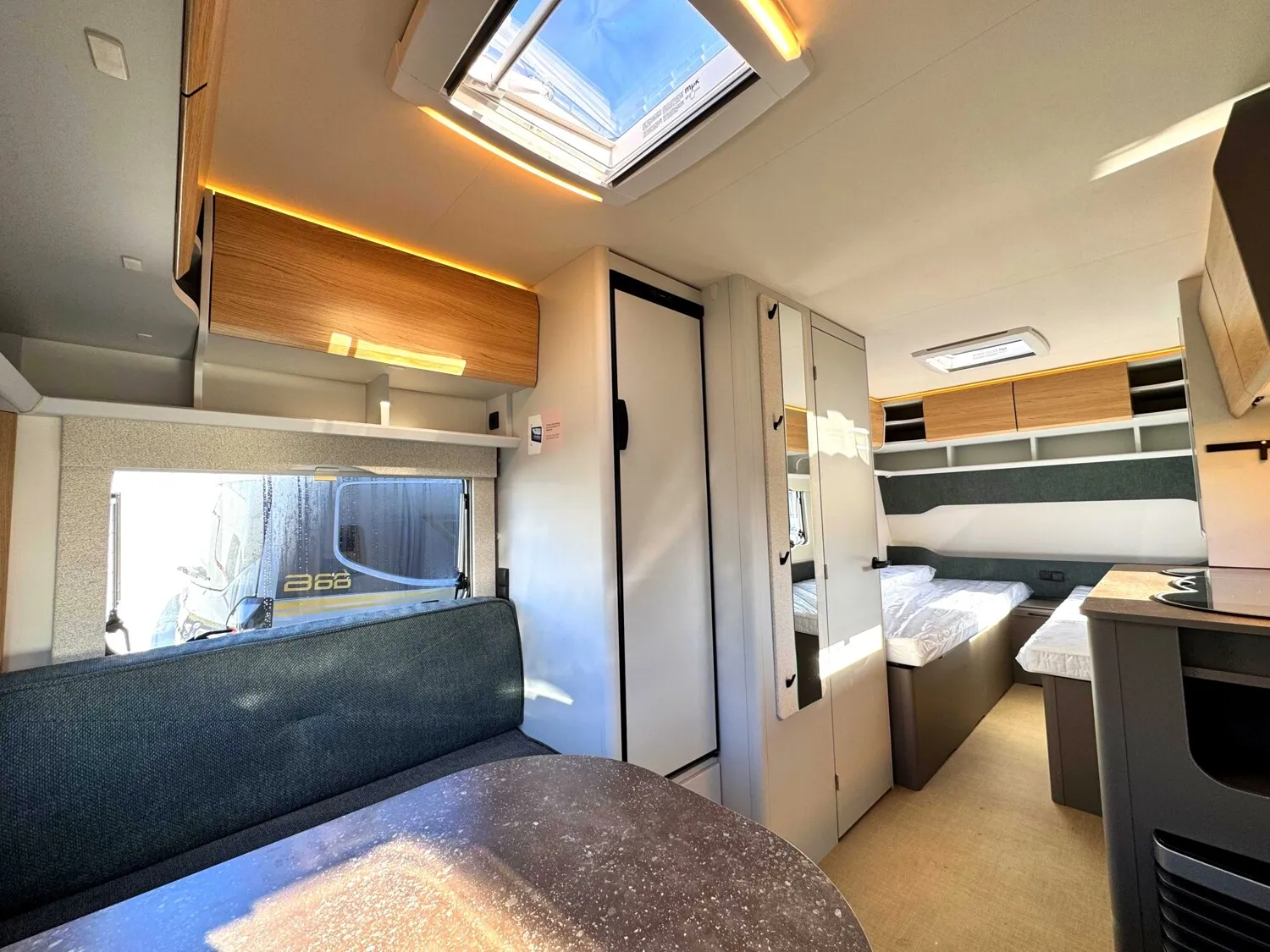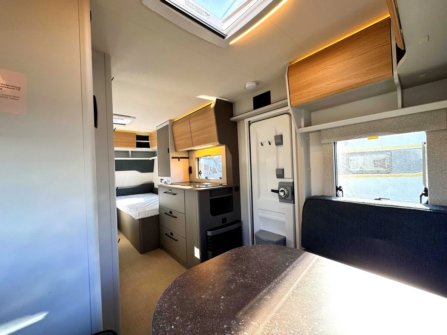 - 2026 Serienausstattung B66 Wohnwagen (Alufelgen|Antischlingerkupplung AKS 3004|Automatische Bremsnachstellung|Ersatzradhalterung im Gaskasten|Radkastenisolierung|Sicherheitsfahrwerk|Stabilformstützen|Aufbautür, einteilig ohne Fenster|Außenblech, Seitenwand Grobhammerschlag, Weiß|Dachhaube 40 x 40 cm|Doppelfenster, getönt und ausstellbar, mit Kombirollos|Fliegenschutz für Eingangstür|GFK Unterboden|GFK-Bugwand mit reduzierter Hagelempfindlichkeit|GFK-Dach mit reduzierter Hagelempfindlichkeit|GFK-Heckwand mit reduzierter Hagelempfindlichkeit|Hinterlüftete Rückenlehnen|Kaltschaummatratze|Lattenrost für alle Bettvarianten|Möbeldekor B66|Indirekte Beleuchtung Oberschränke|LED Vorzeltleuchte|My Bürstner App |Rauchmelder|Steckdosen 230 V|USB Ladesteckdosen|Umformer 350 VA|Zentraler Lichtschalter|Gasheizung 3000 W mit Zündautomatik|Umluftanlage 230 V|Vorbereitung für Klimaanlage|Rollrost (Single-Twin-Bett) bei Einzelbetten|Sitzgruppe zur Liegefläche umbaubar|Abfallsammler an Eingangstüre|Kompressorkühlschrank, 132L|Multifunktionsschiene|Soft Einzüge im Küchenbereich|3-flammiger Gaskocher mit E-Zündung und Glasabdeckung|Elektrischer Warmwasseraufbereiter mit 5 l Wasserinhalt, 300 W|Spül- WC|Wassertank 44 L|Digitale Wasserwaage|Home Light inkl. Lade- und Dockingstation (2 Stück)|Indirekte Beleuchtung Oberschränke|LED Vorzeltleuchte|My Bürstner App|Rauchmelder)