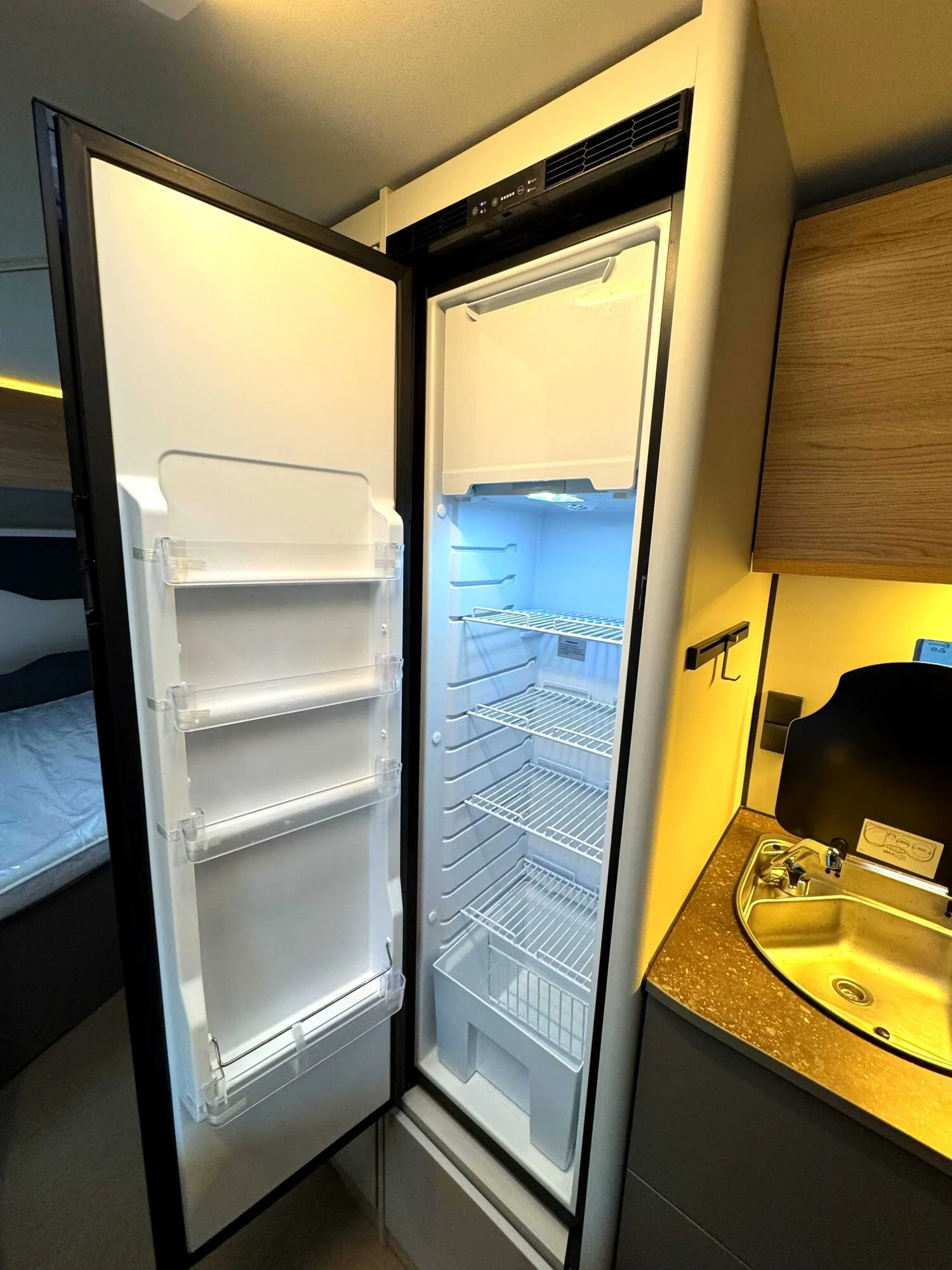 - Ausstattungshighlights B66 Wohnwagen: Antischlingerkupplung AKS 3004, Sicherheitsfahrwerk, Fliegenschutz für Eingangstür, GFK Unterboden, GFK-Bugwand und -Dach mit reduzierter Hagelempfindlichkeit, Sitzgruppe zur Liegefläche umbaubar, Kompressorkühlschrank, 131,5 L (davon 15 L Gefrierfach), Spüle, 3-flammiger Gaskocher mit E-Zündung und Glasabdeckung, Doppelfenster, getönt und ausstellbar, mit Kombirollos, Home Light inkl. Lade- und Dockingstation (2 Stück), 40 Liter Frischwassertank, Truma Therme Warmwasser u.v.m.