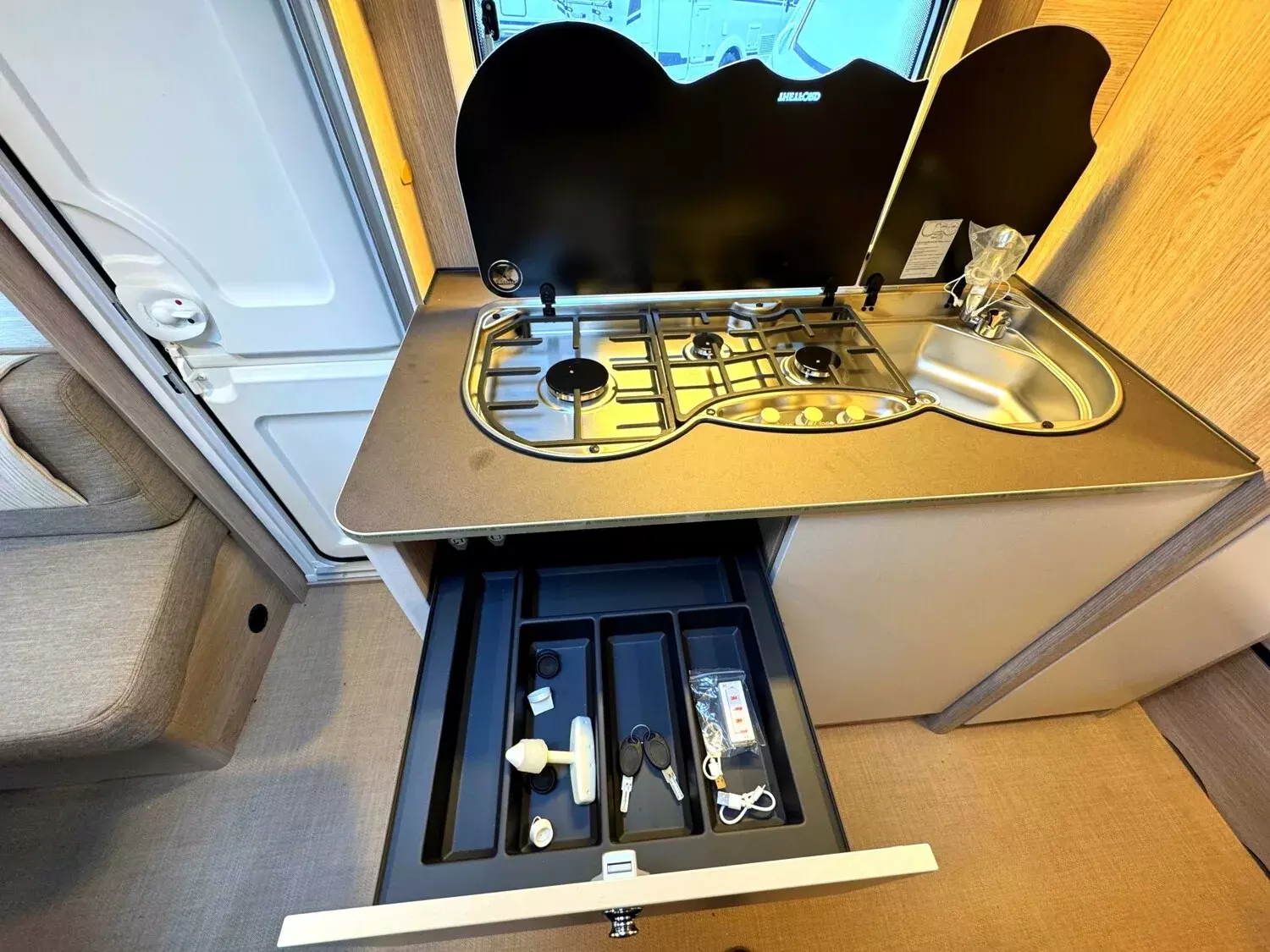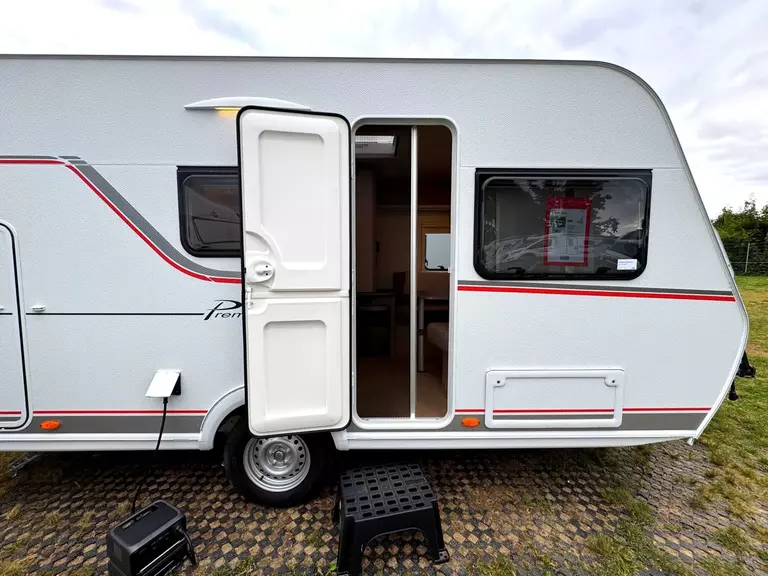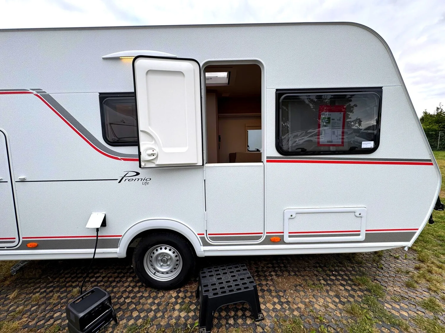 - Premio Life Paket 1 (Ersatzradhalterung im Gaskasten, Stoßdämpfer, Serviceklappe (Grundrissabhängig), Sicherheitskupplung, Frischwassertank 44 L, fest installiert (davon 15 L Fahrzustand))