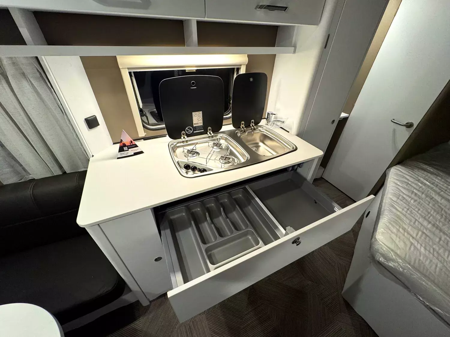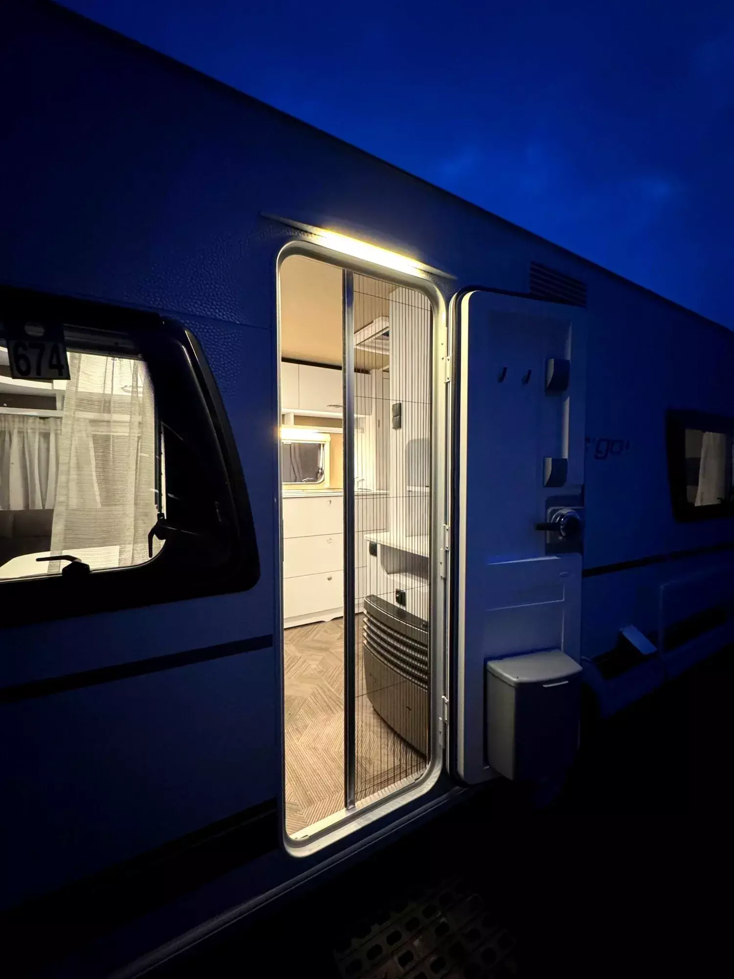 - Touring-Paket (Warmwasserversorgung, Warmluftanlage, Fliegengittertüre, Dachhaube Heki II inkl. Baldachin beleuchtet)