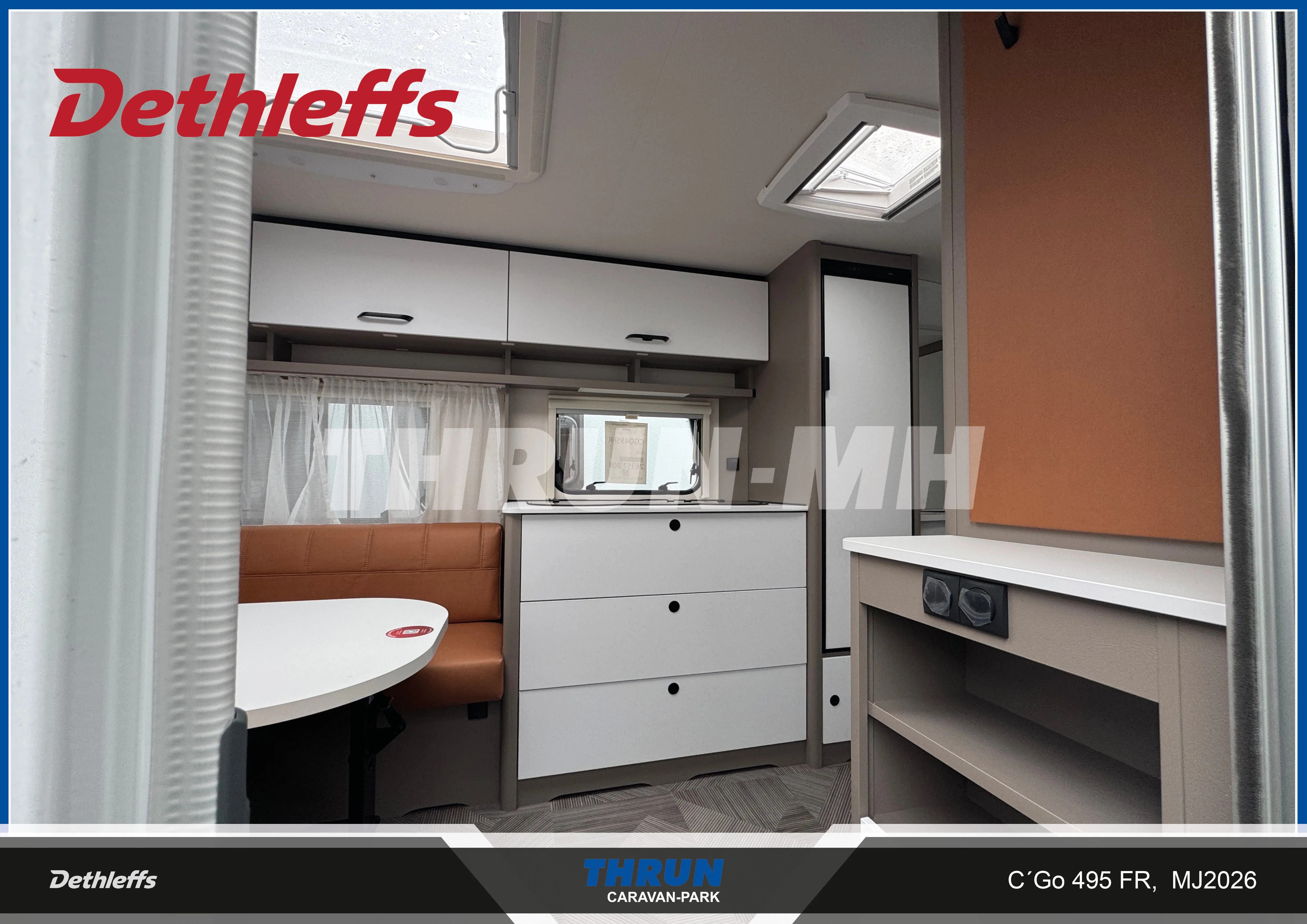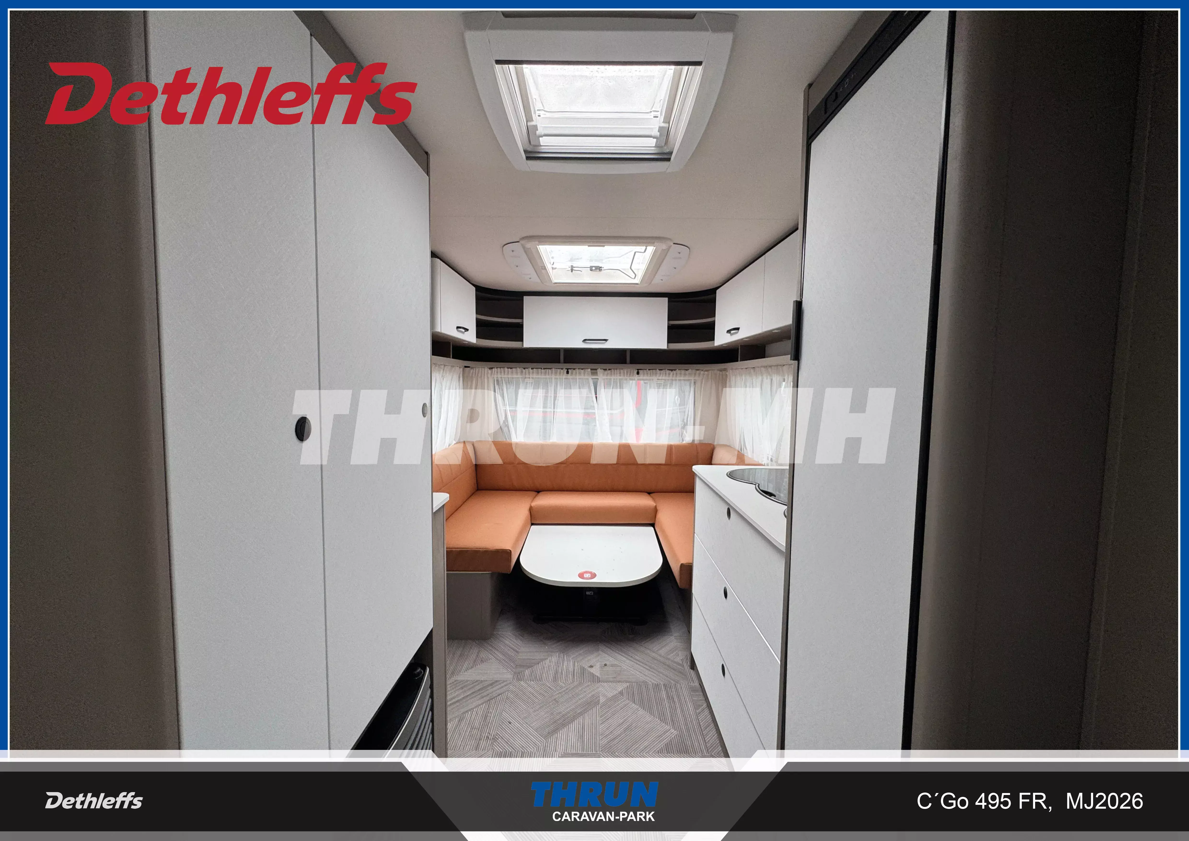 - Active-Paket 495 FR (Bereifung auf Alufelge 195 R14 C LI106, 1700 kg und 1800 kg, Auflastung 1.700 kg (inkl. Stahlrad 195 R14 C LI106), Stabilformstützen inkl. großflächige Abstützfüße, Dachhaube Heki II inkl. Baldachin beleuchtet, Fliegengittertüre, 7-Zonen-Matratze aus klimaregulierendem Material, Warmluftanlage, Indirekte Beleuchtung, USB Steckdose für Spot-Schiene, Einbau Klimaanlage vorbereitet, Warmwasserversorgung)