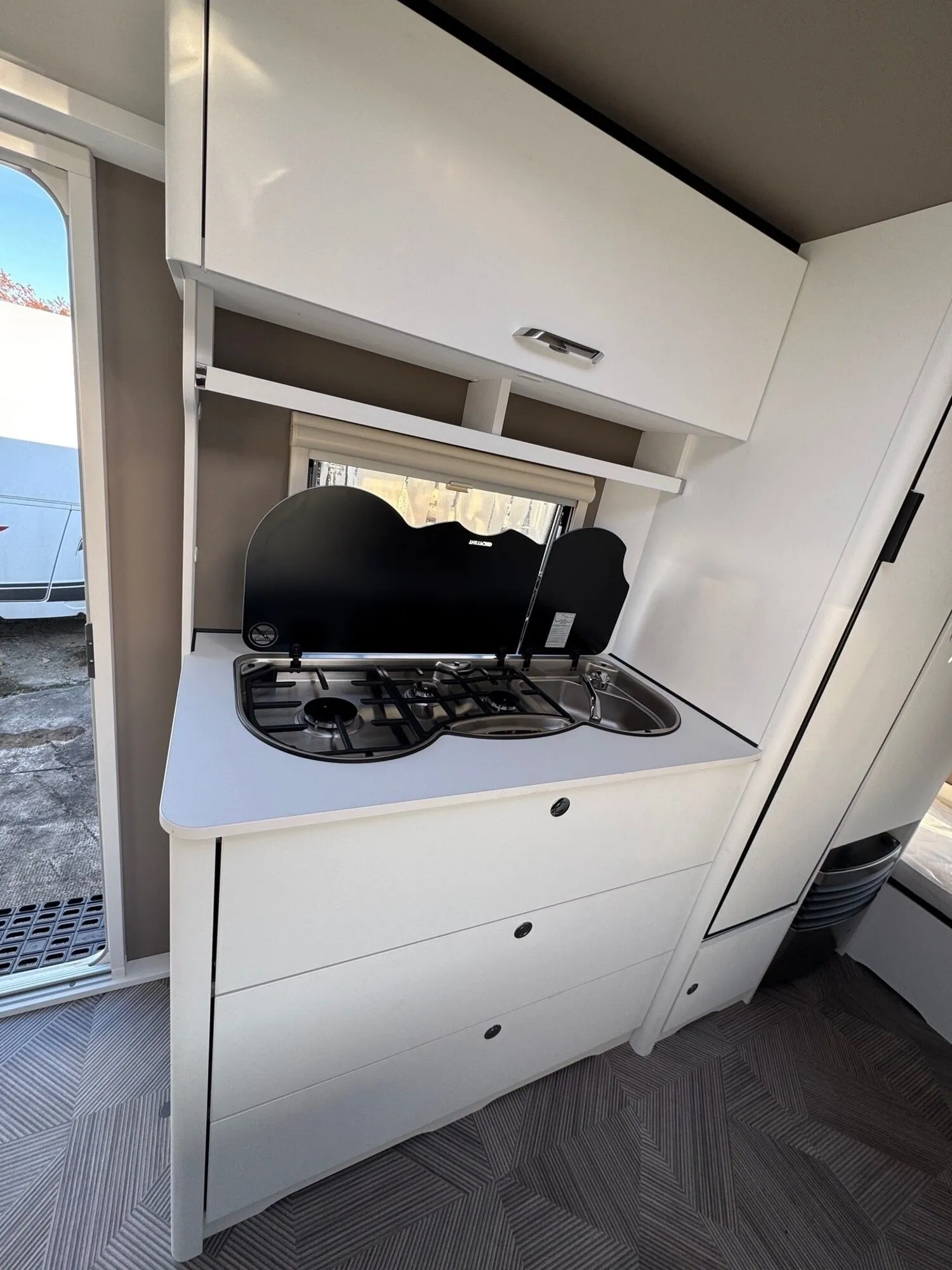 - Touring-Paket (Warmwasserversorgung, Warmluftanlage, Fliegengittertüre, Dachhaube Heki II inkl. Baldachin beleuchtet)