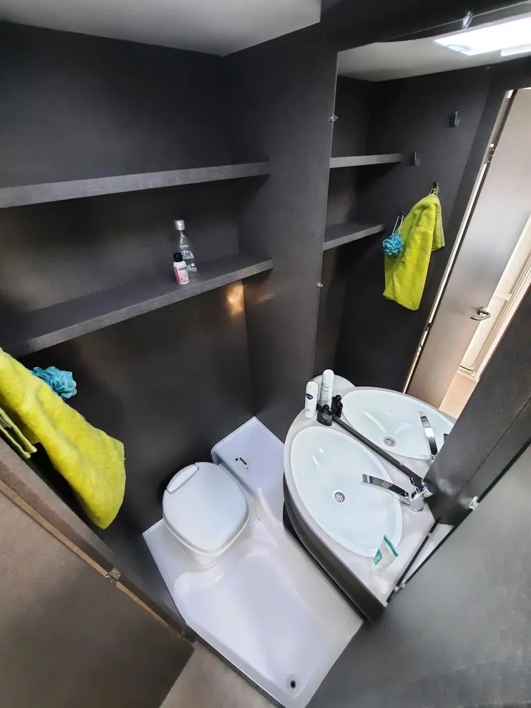 Dynamik-Paket (Sicherheitskupplung, Stoßdämpfer, großer 44l Frischwassertank, Mobiler 22l Abwassertank, Reserveradhalterung im Gasflaschenkasten, Stauraumklappe hinten rechts 100x42)