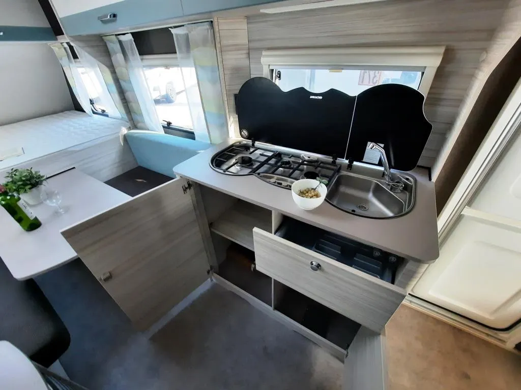 Liegefläche umbaubar, 3-Flammen-Kocher mit manueller