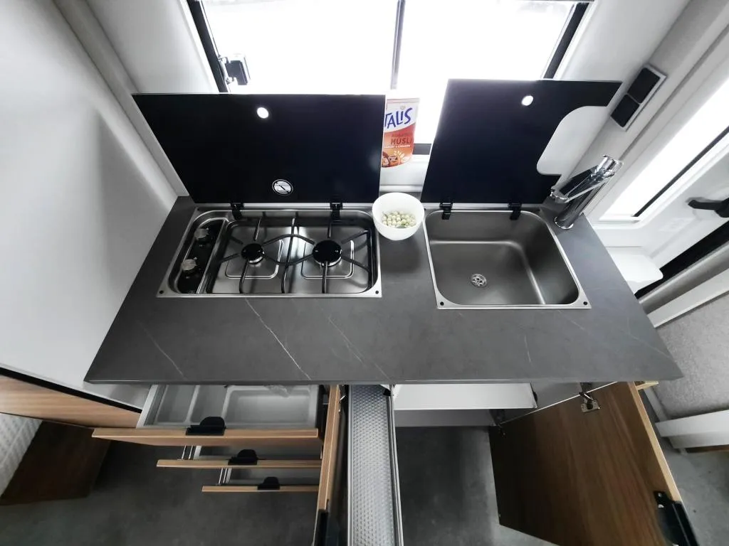 Spotschiene, indirekte Beleuchtung, Frischwassertank 38L, mobiler