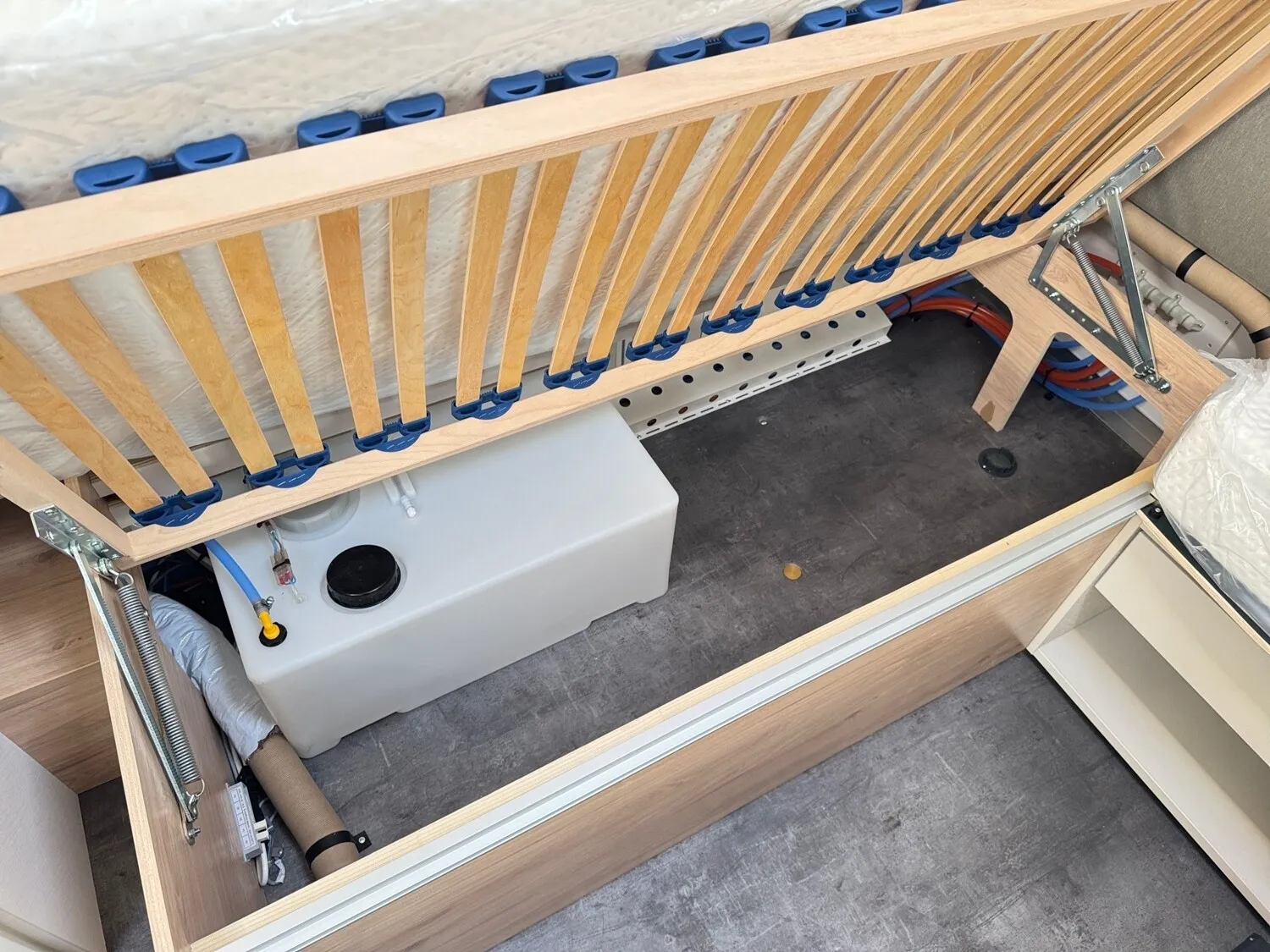 - Winterkomfort-Paket bei Combi-Heizung (Elektrische Fußbodenerwärmung, XPS-Isolierung Bug, Heck und Seiten (abhängig von Fahrzeuggröße), Abwasserleitungen isoliert und beheizt, Isoliertes Dükerrohr)