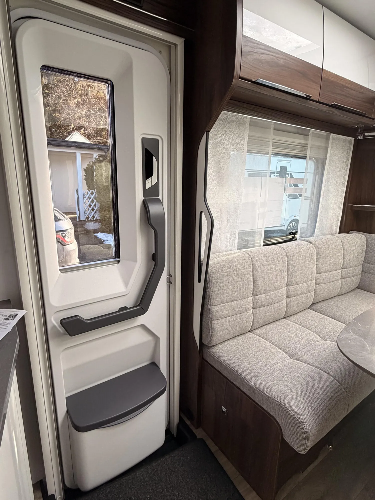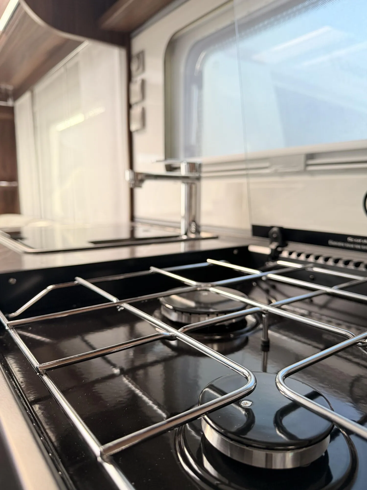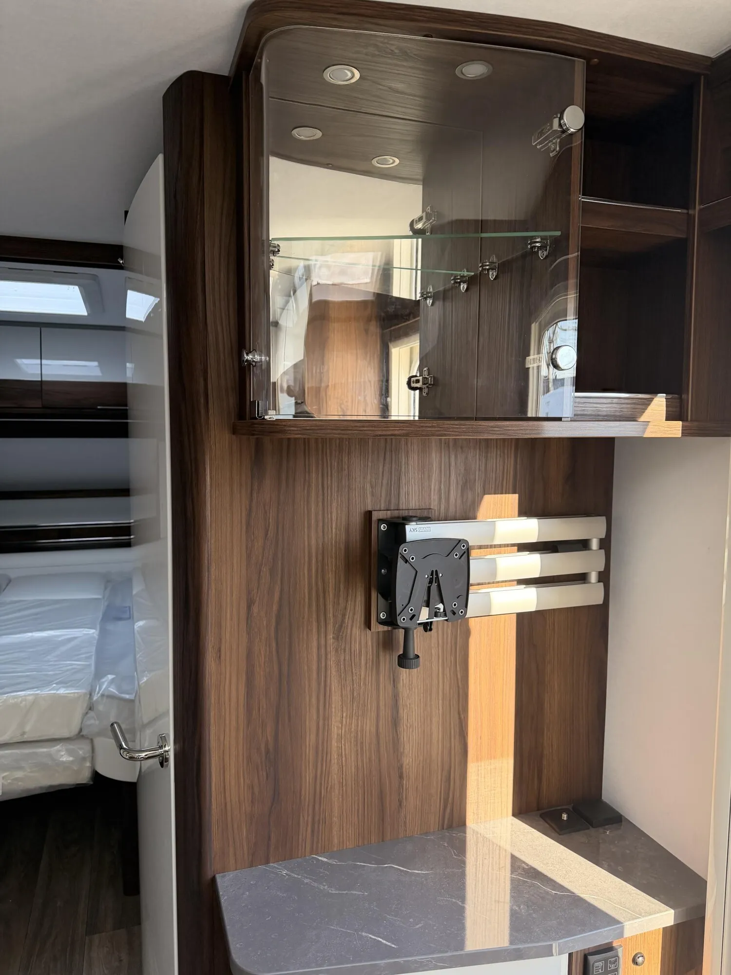 - Duscheinrichtung mit Vorhang (Duscharmatur mit herausziehbarem Brauseschlauch und Halterung, Duschvorhang. 230 V-Steckdose entfällt, dafür 12 V Steckdose (Mittelwaschraum) )