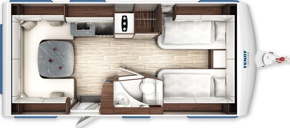 - Teppich im Türeinstieg mit Fendt-Caravan-Schriftzug
