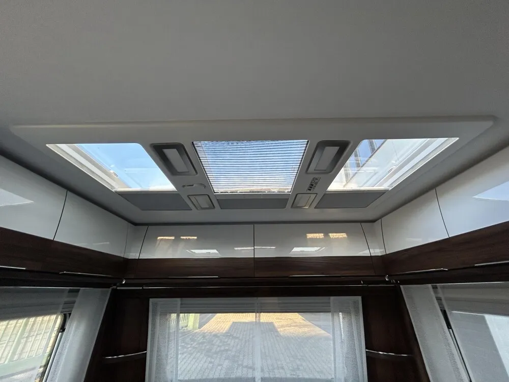 - MIDI-Dachhaube (Dometic) mit Kurbel, Zwangsentlüftung, integriertem Verdunkelungsplissee und Fliegenrollo
