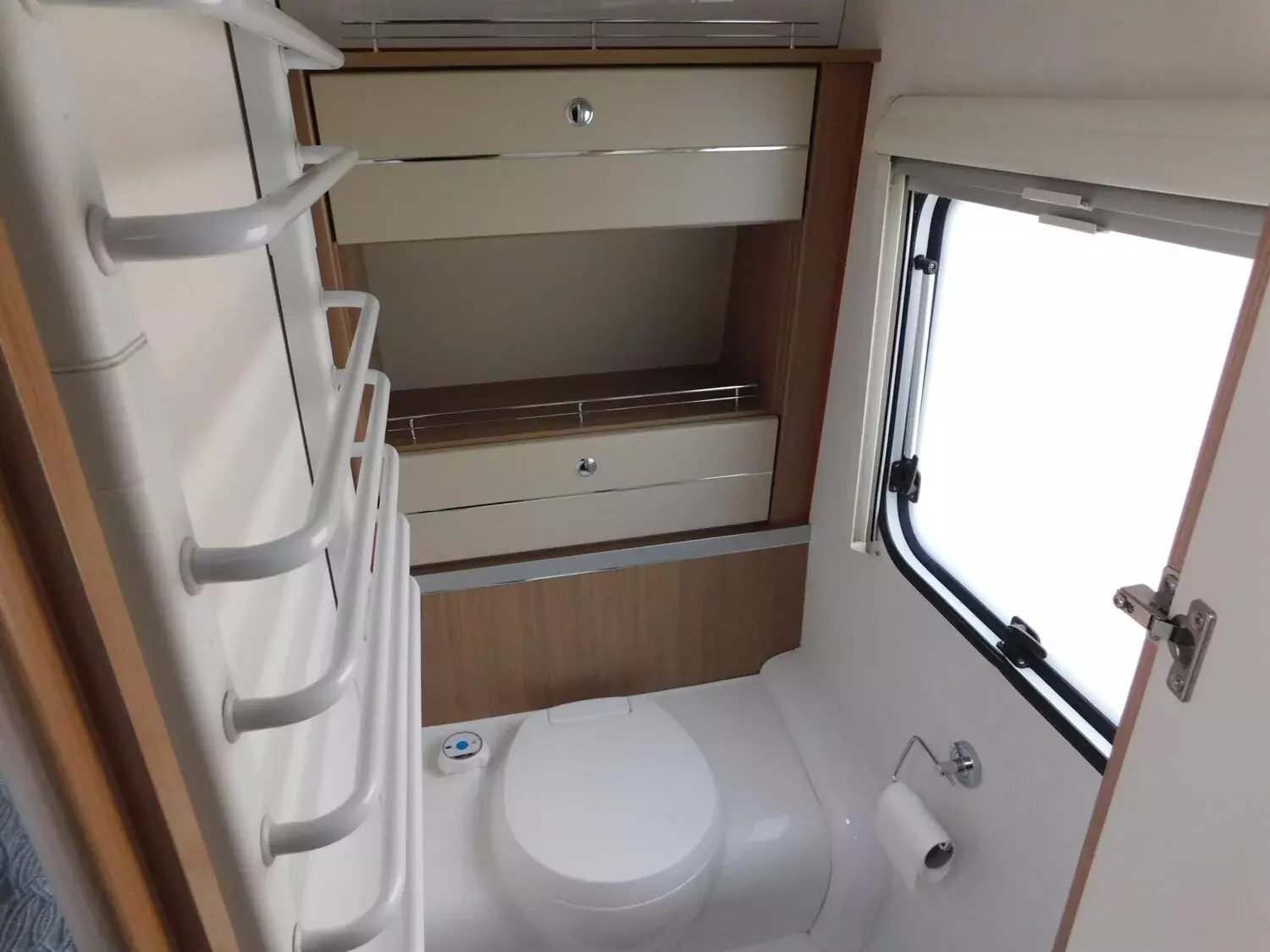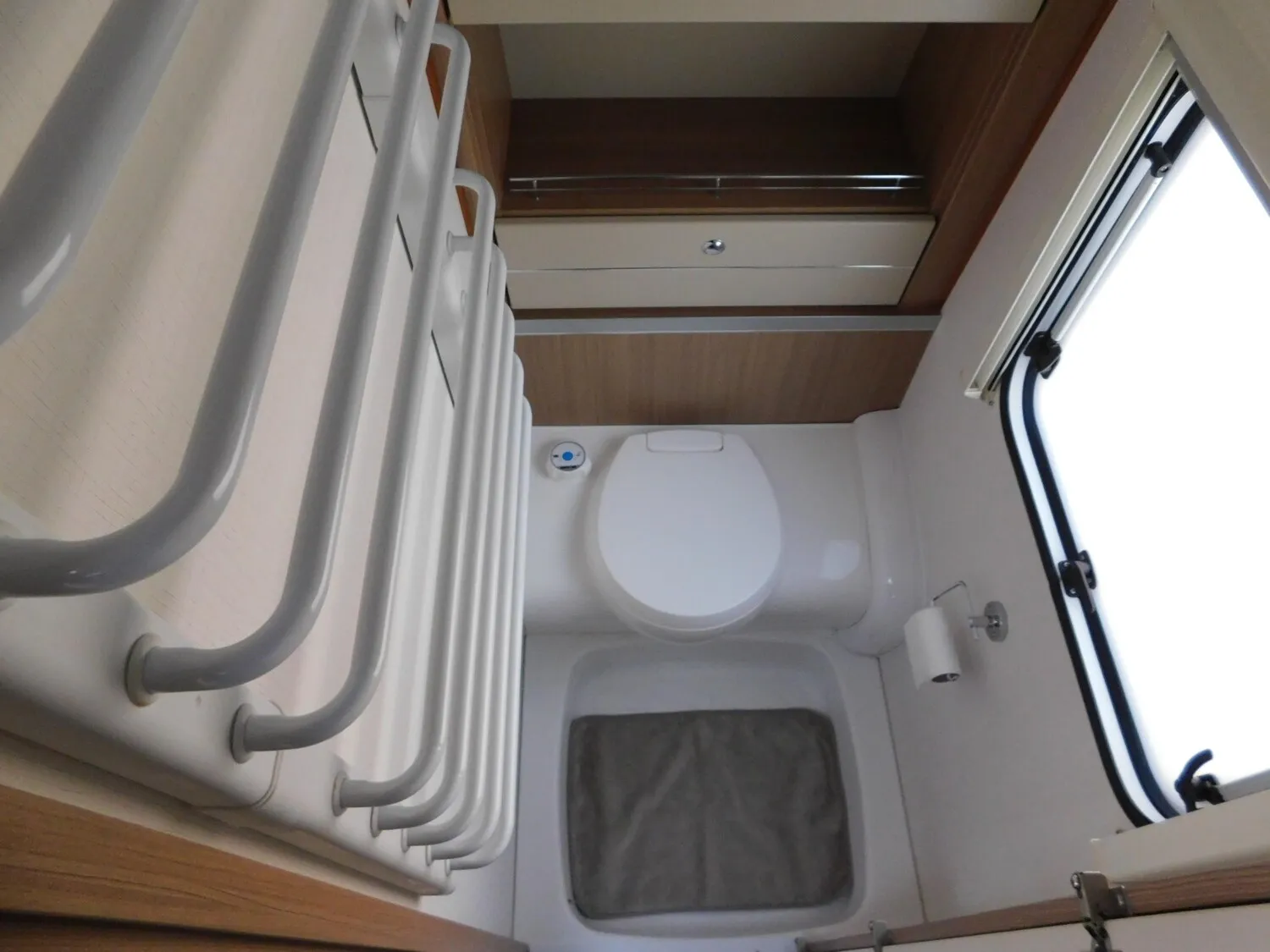 - elektrisch wärmender Handtuchheizkörper in der Toilette