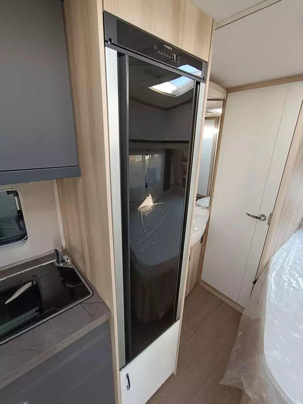 - Fenster, Abfalleimer, Staufächern und Insektenschutzplissee im Türrahmen, Ausführung modellabhängig