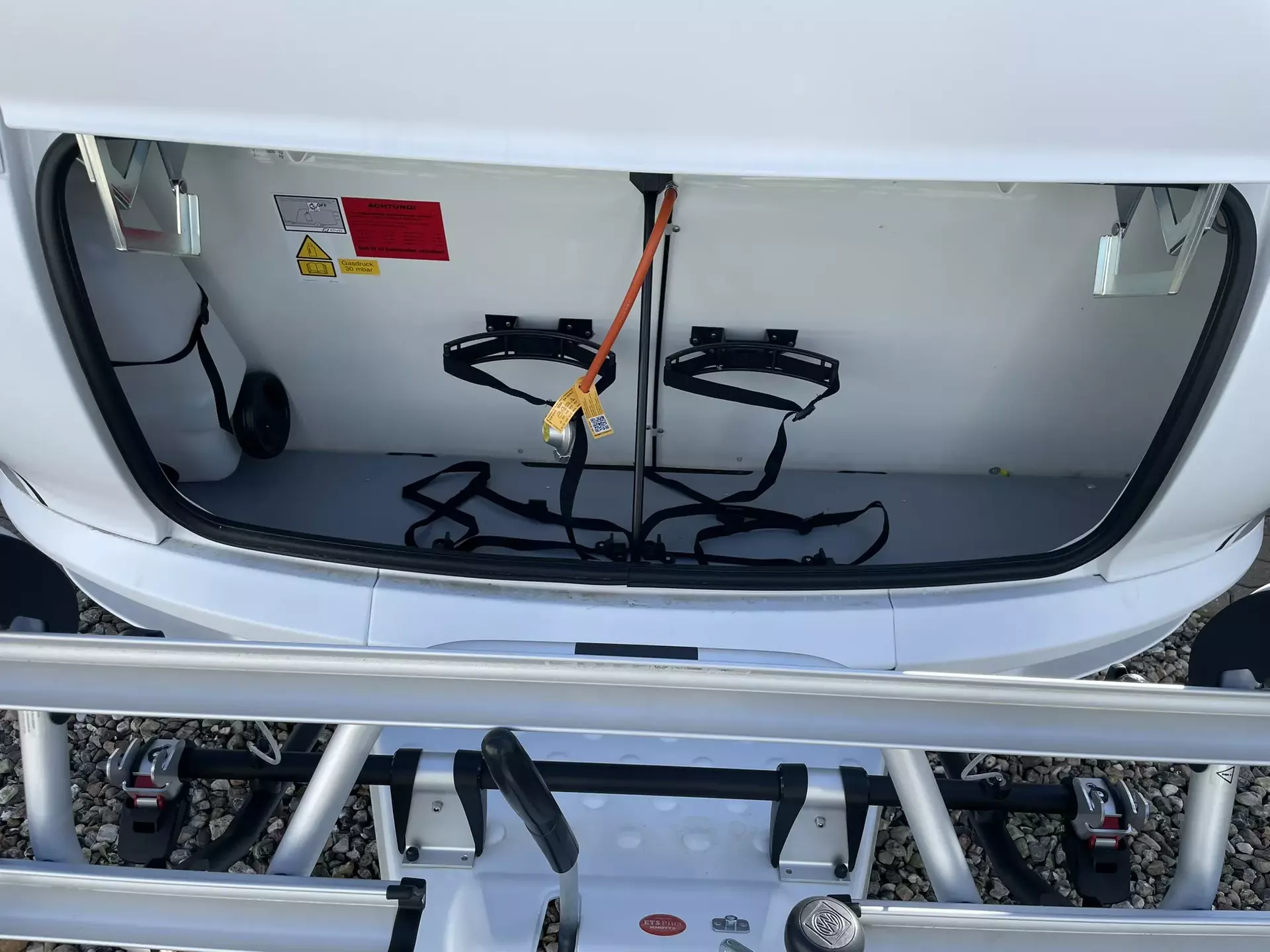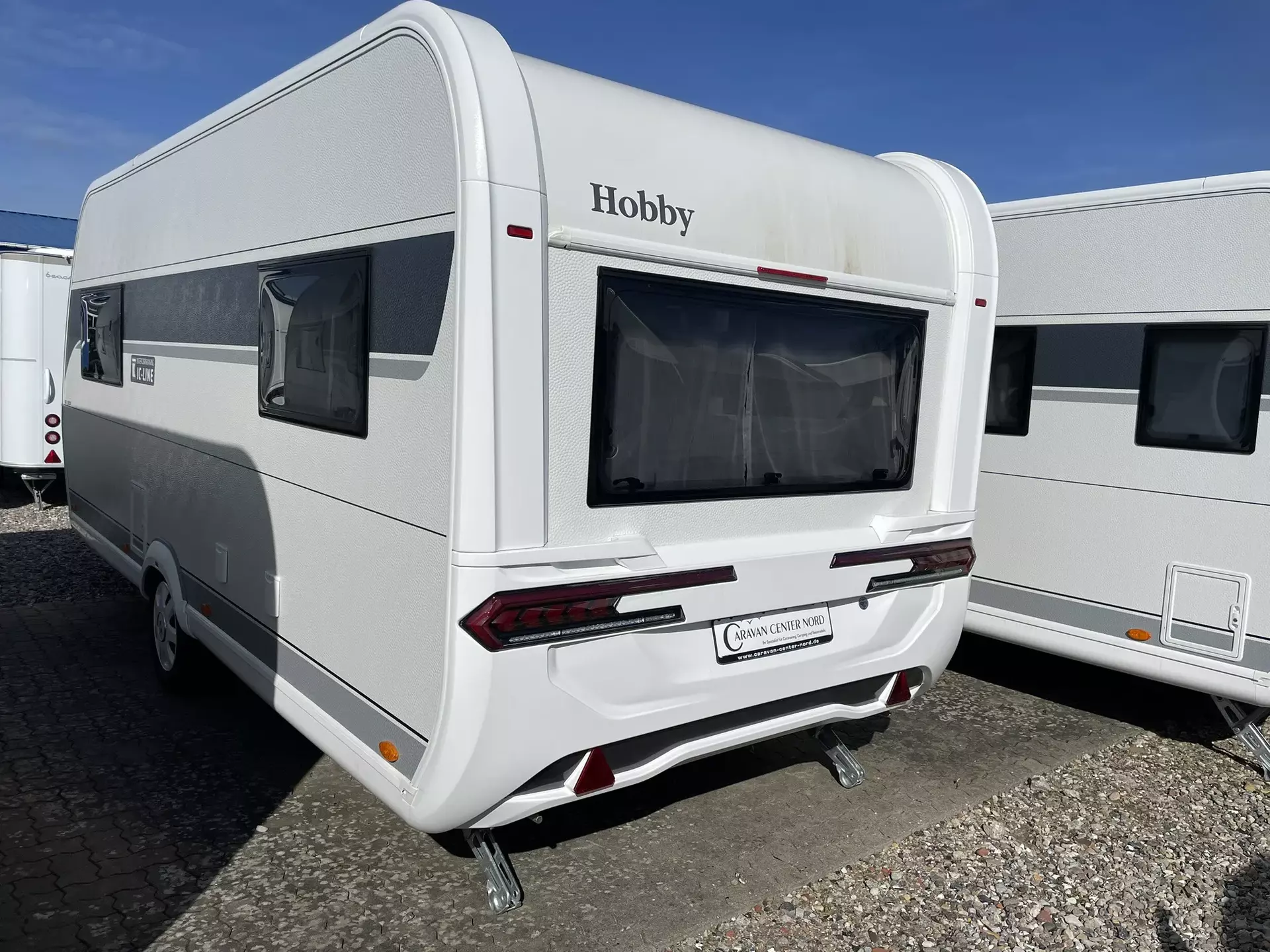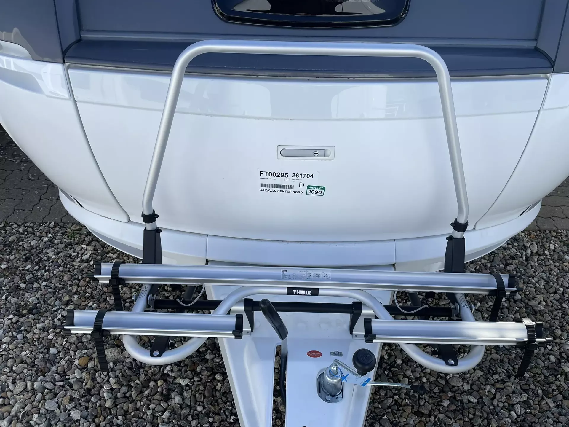 TV Gelenkhalter, USB Steckdose, 12 V Autarkpaket (AGM Batterie, 95 Ah), Thule Deichsel-Fahrradträger für 2 Räder, Vorzeltaußensteckdose, Stabilisierungssystem »Knott ETS Plus«, Hobby 7" Touchbedienpanel, Sonderbeklebung ICLINE, Truma Mover »Smart A«