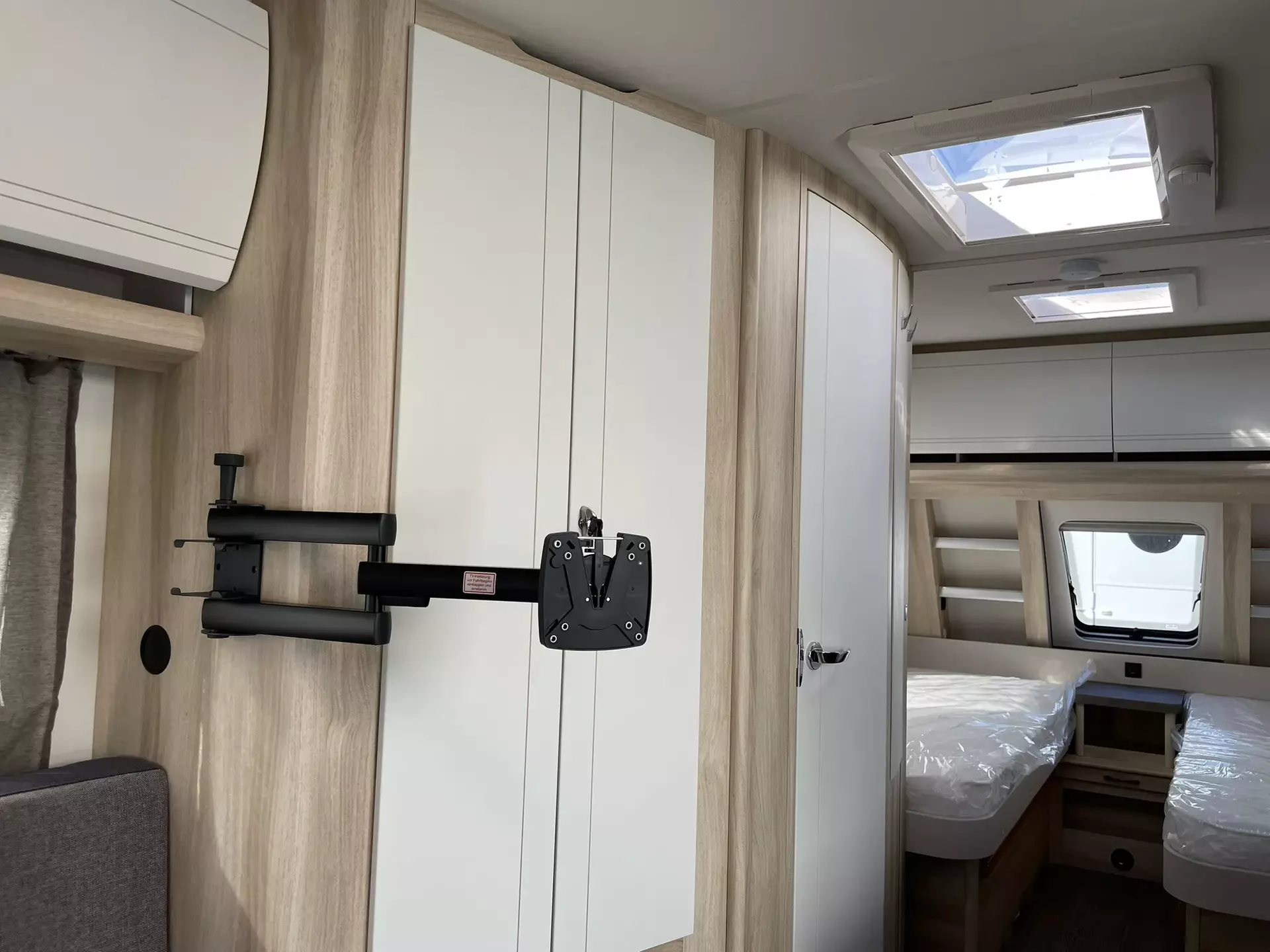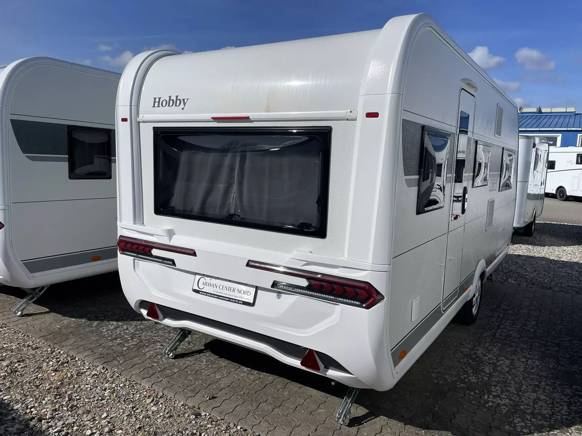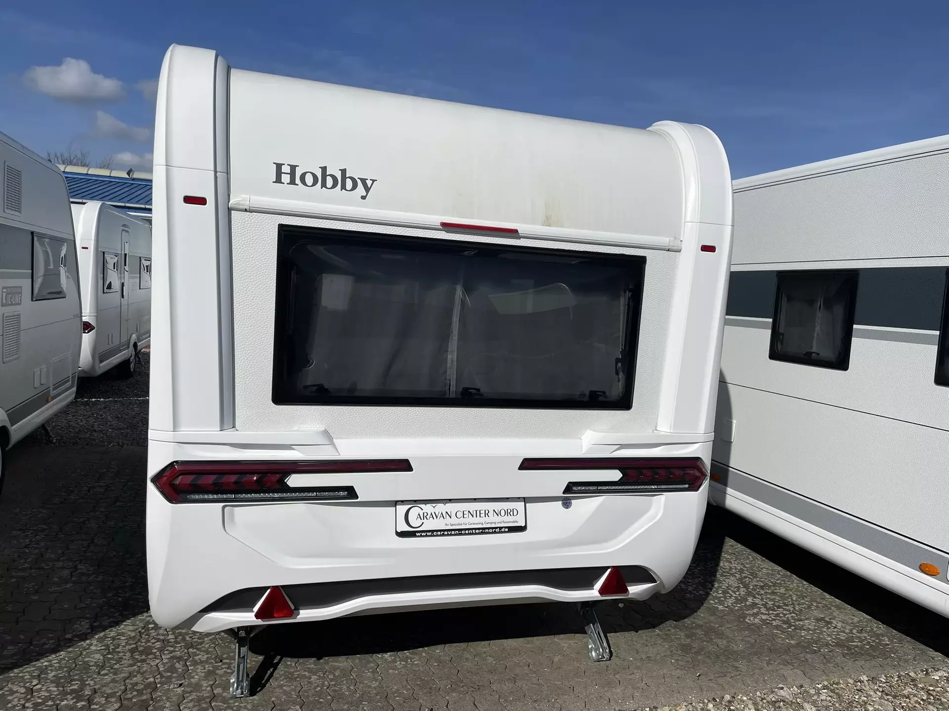 TV Gelenkhalter, USB Steckdose, 12 V Autarkpaket (AGM Batterie, 95 Ah), Thule Deichsel-Fahrradträger für 2 Räder, Vorzeltaußensteckdose, Stabilisierungssystem »Knott ETS Plus«, Hobby 7" Touchbedienpanel, Sonderbeklebung ICLINE, Truma Mover »Smart A«