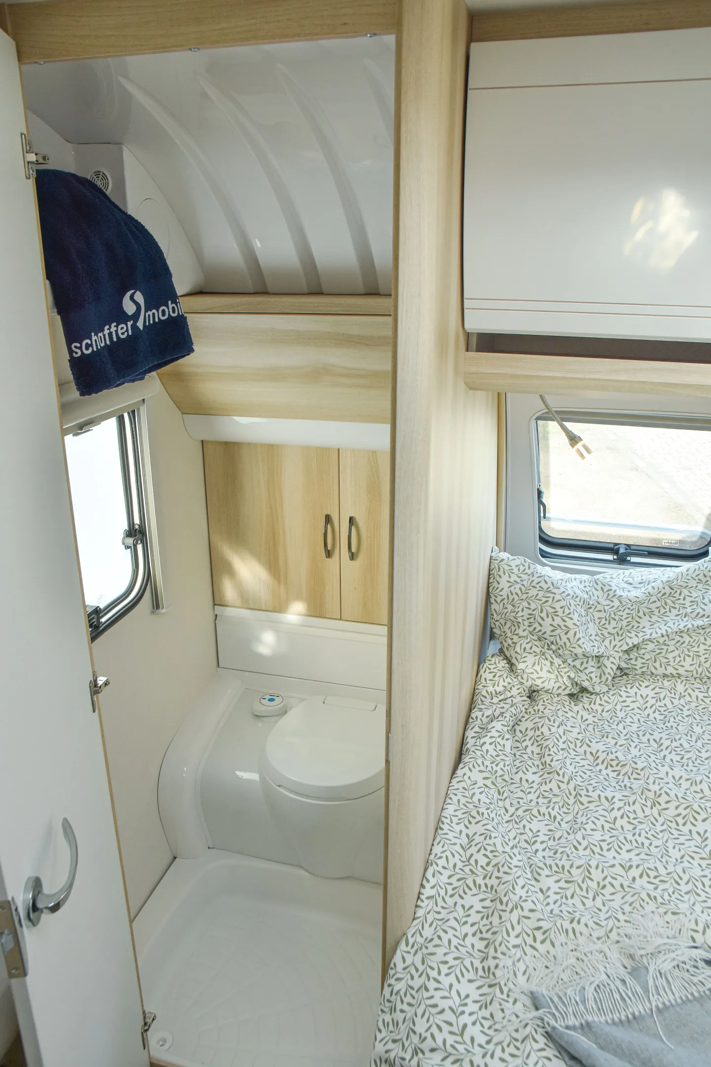 * Im Alltag zeigt der KMFe seine Stärke: viel Stauraum, eine praktische Küche, ein durchdachtes Bad und die angenehme Beleuchtung, die abends ein besonders gemütliches Ambiente schafft. Auch der Außenbereich ist durchdacht – ideal für Vorzeltbetrieb, Fahrräder oder entspanntes Familiencamping.