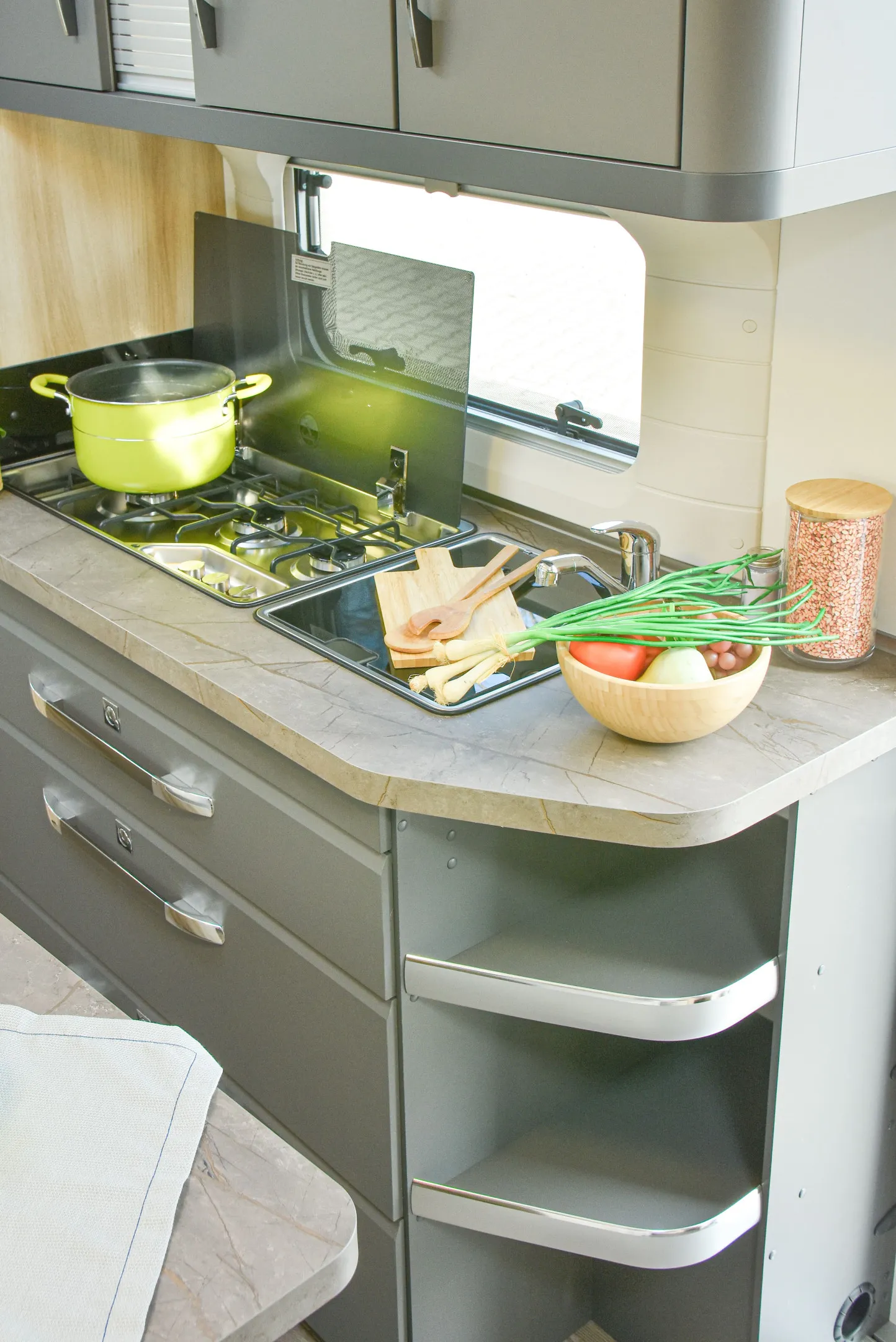 * Ein moderner, leichter und sehr familienfreundlicher Wohnwagen, der ausreichend Platz, Komfort und Flexibilität bietet – perfekt für Eltern, die Wert auf ein harmonisches Raumgefühl und alltagstaugliche Details legen.