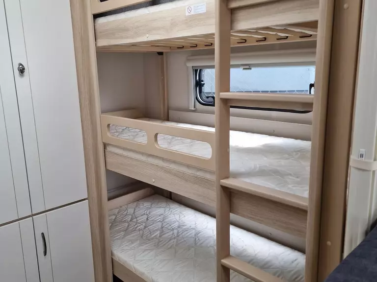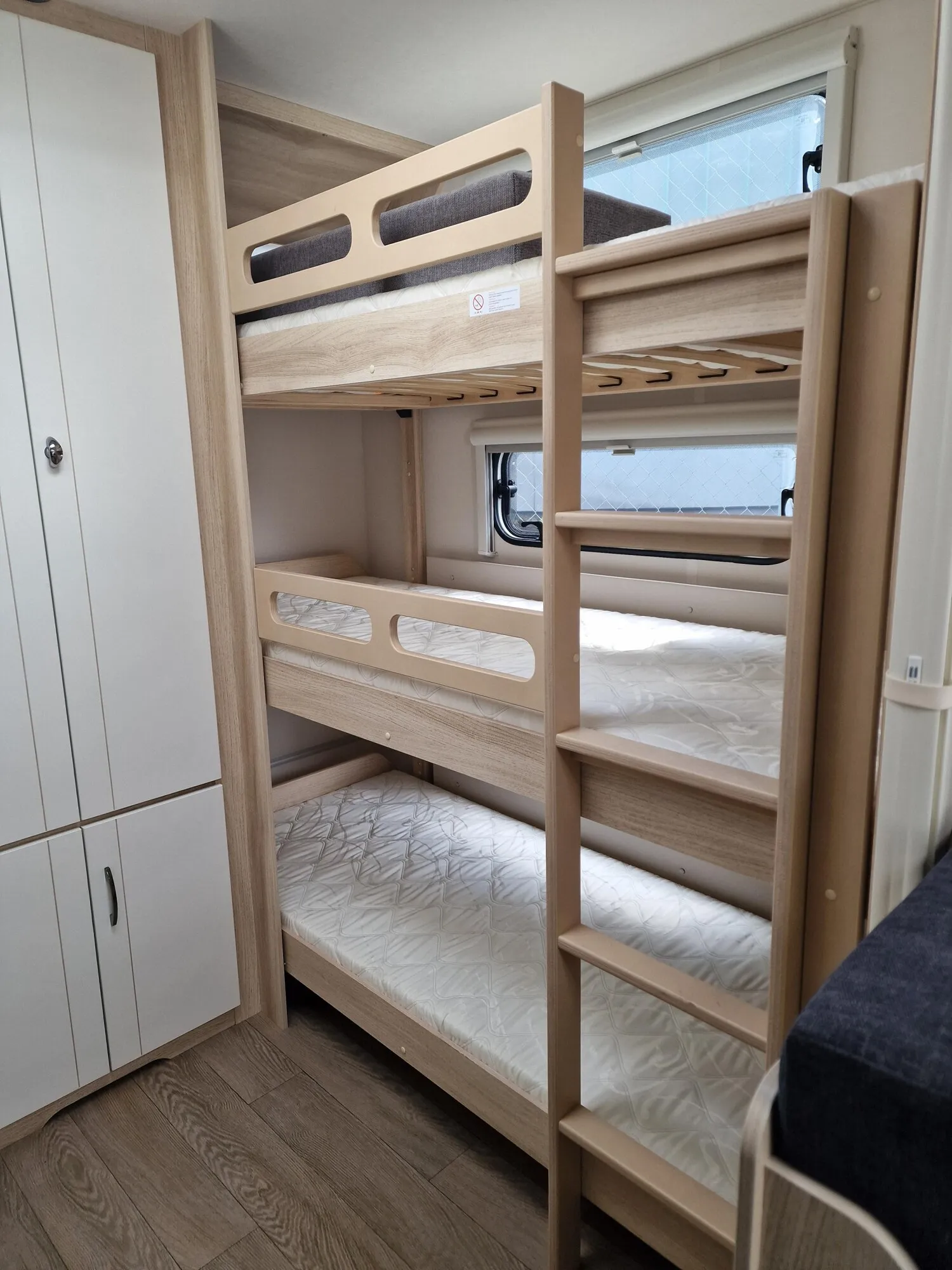 - Kinderbett, 3-stöckig inkl. 3. Fenster, mit Rausfallschutz und Leiter