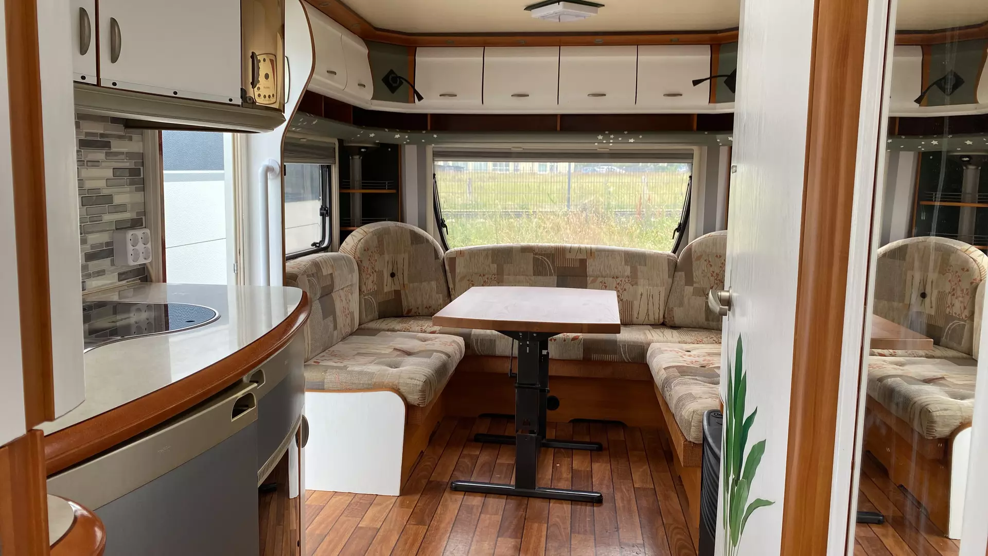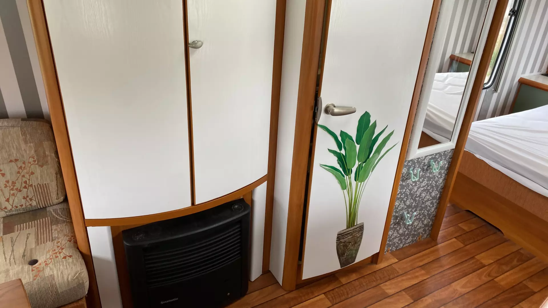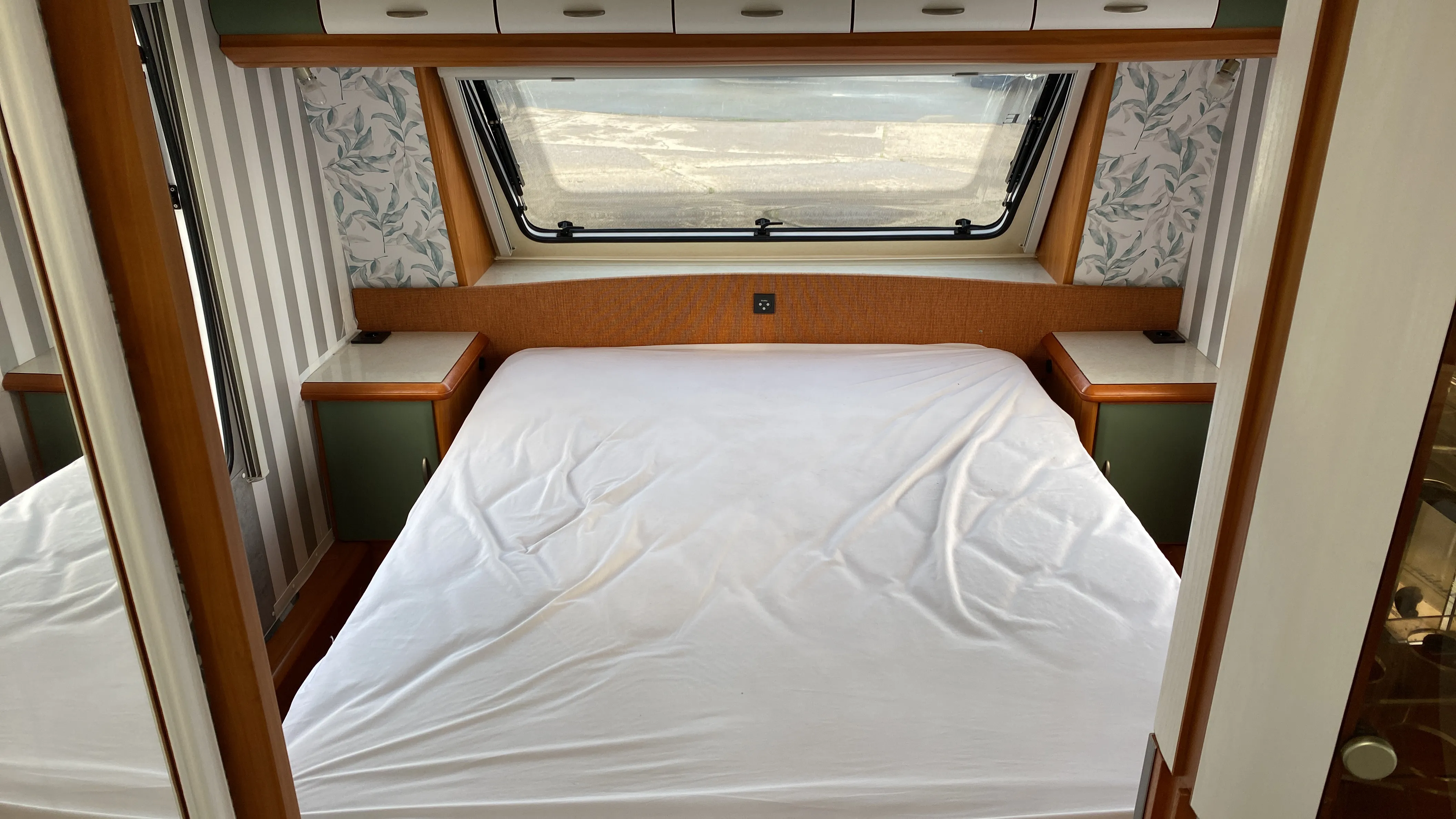 sichtbarer Feuchtigkeitsschaden unterhalb der Seitenfenster im Bettbereich