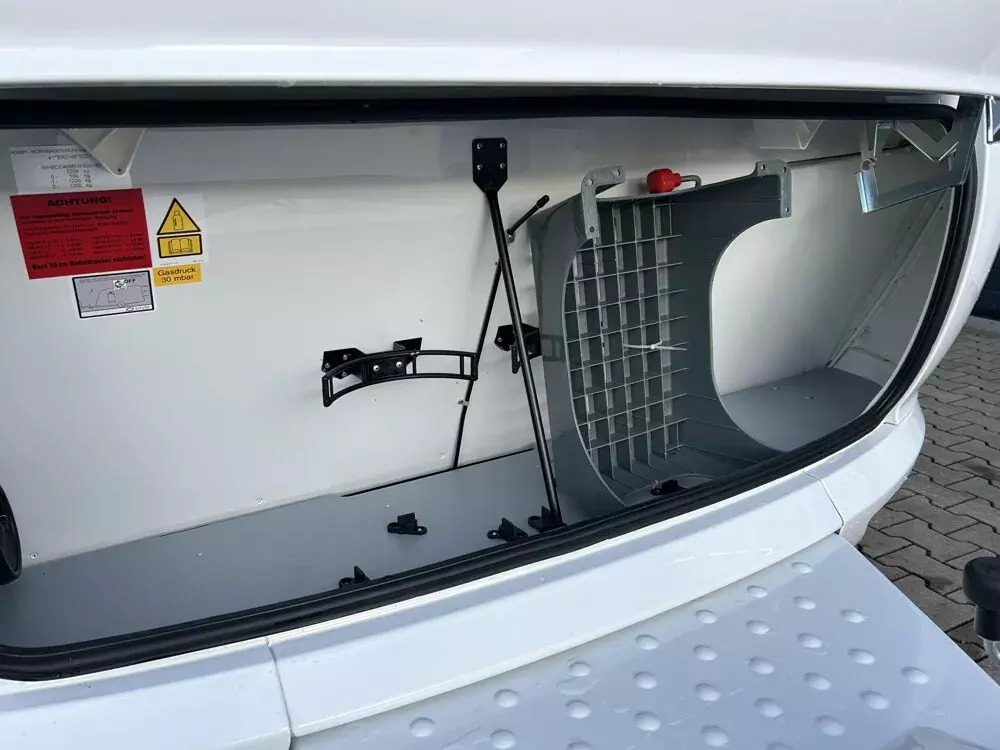 - Winterbelüftung für Sitzgruppe, Stauschränke und Betten, Eingangstür einteilig, extrabreit mit Dreifachverriegelung, Fenster
