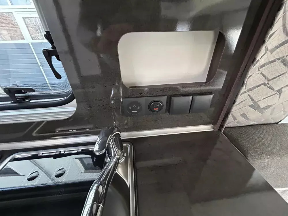 - Gasverteiler in Küchenzeile, Bedienpanel für Beleuchtungssystem und Tankanzeige